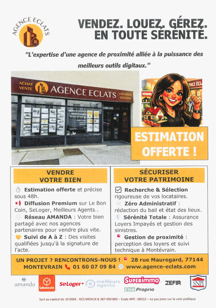 | Agence | Agence Eclats Montevrain Voir toutes les annonces |