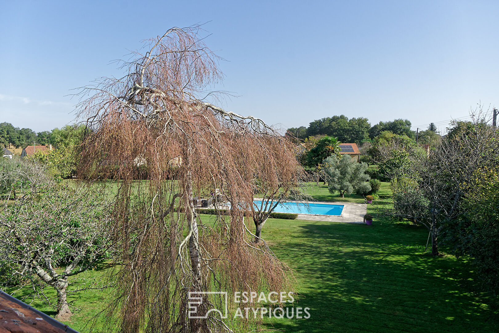 Dans un écrin de verdure, cette ancienne demeure béarnaise de charme et de caractère datant de 1609, développe une superficie de 240 m2 sur 3 étages. Sa restauration a permis de redonner vie à cette bâtisse d'antan tout en galet. Le vaste jardin de plus de 4800 m2 se compose de multiples arbres fruitiers, d'une vigne et d'un potager autour d'une belle piscine. L'accès à la propriété se fait par un portail en fer forgé qui s'ouvre sur une belle cour. Le regard se porte sur cette large façade en pierre. Protégée par une grille, l'entrée principale donne sur la partie rez-de-chaussée. La pièce de vie, agrémentée d'une cheminée bénéficie d'une cuisine ouverte offrant ainsi de la convivialité avec un accès direct sur la terrasse extérieure et la piscine. A l'arrière, adossée à une buanderie, une confortable véranda permet de recevoir famille et amis pour de grandes tablées. Une salle d'eau entièrement rénovée ainsi qu'un toilette indépendant complètent la partie du bas. L'escalier en chêne conduit au premier étage où se loge un beau salon de lecture autour d'une seconde cheminée. En prolongement, un espace séjour et un premier espace nuit composé de 2 chambres. L'étage supérieur propose un coin bureau ouvert, une suite parentale ainsi qu'une quatrième chambre, d'un grand volume, aux poutres apparentes rappelant la nef d'un bateau. Une cave à vins, un atelier et un garage viennent parfaire ce bien aux atouts indéniables. Possibilité d'acquérir, en supplément, un terrain constructible, attenant, d'une superficie de 903 m2. Situé à 10 mn du village de Garlin et de toutes commodités ainsi que de l'échangeur autoroutier. Classe énergie : D / Classe Climat : D Montant moyen estimé des dépenses annuelles d'énergie pour un usage standard, établi à partir des prix de l'énergie de l'année 2021 : entre 2420 euros et 3330 euros. Contact : Sébastien POUEY - Tel : 06 74 97 25 35 RSAC Pau 421 883 828 Sébastien Pouey (EI) Agent Commercial - Numéro RSAC : 421 883 828 - PAU.