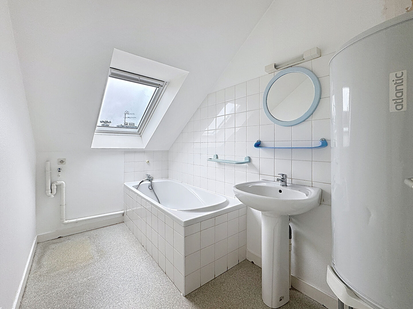 A vendre en exclusivité appartement de 3 pièces au 2e étage d'une copropriété au centre-ville de Lesneven. Il comprend un salon avec kitchenette ouverte , de 21.1 m² au sol, exposé plein sud . La partie nuit se compose de deux chambres avec salle de bain et WC séparé. L'appartement étant mansardé, il dispose d'une surface au sol de 42 m². L'appartement est vendu avec une place de parking. Atouts : - Proche centre-ville, commerces, écoles - Exposition séjour plein sud - Grande pièce de vie - Parking privatif (6.00 % honoraires TTC à la charge de l'acquéreur.) Copropriété de 13 lots - dont 6 lots habitation. (Pas de procédure en cours). Charges annuelles : 351 euros.