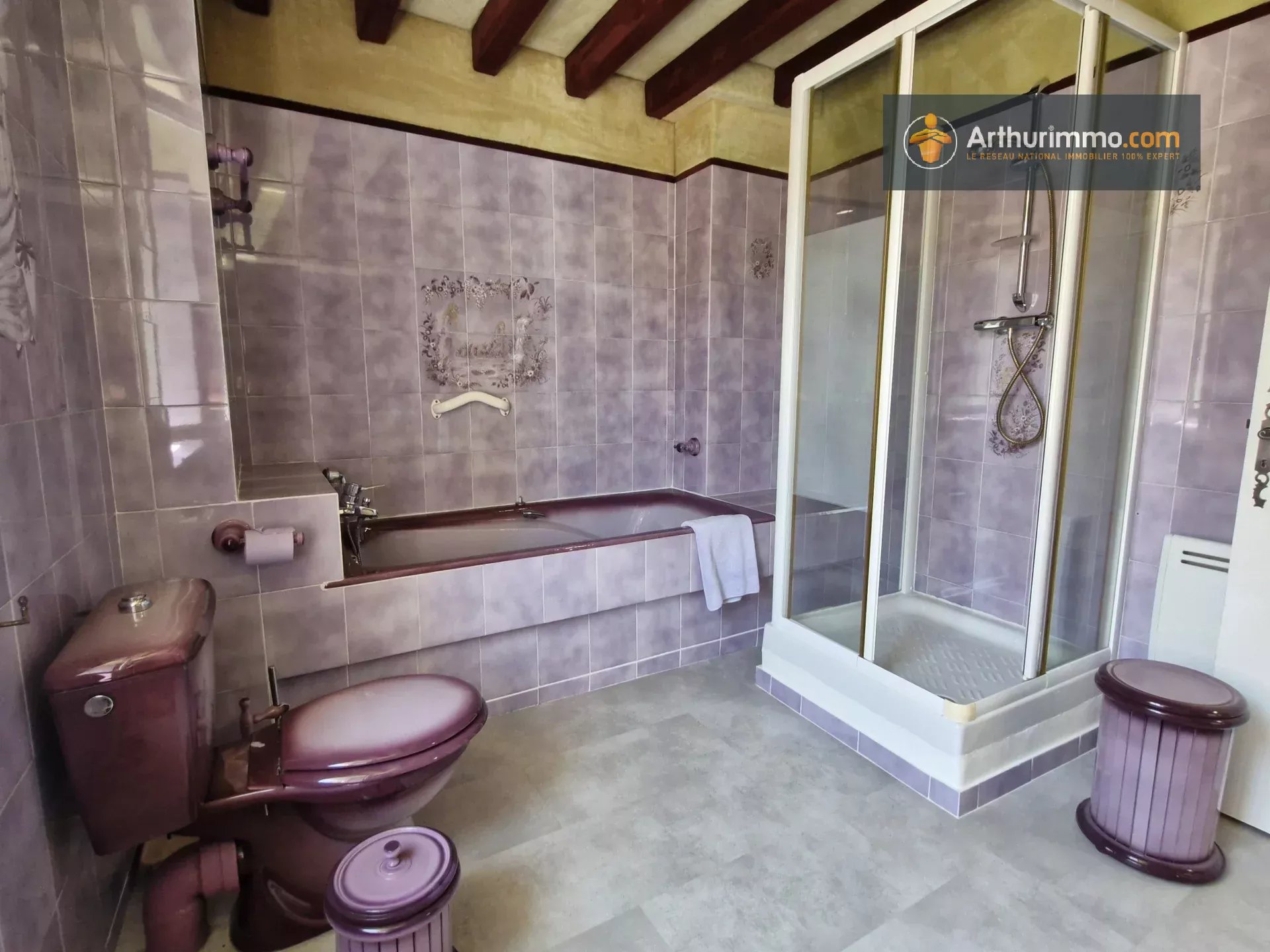 Elle comprend, en rez-de-chaussée, un séjour équipé d'une grande cheminée ouverte, donnant accès à une cuisine séparée, nous avons aussi un salon disposant également d'une cheminée ouverte ainsi qu'une salle d'eau avec toilettes.