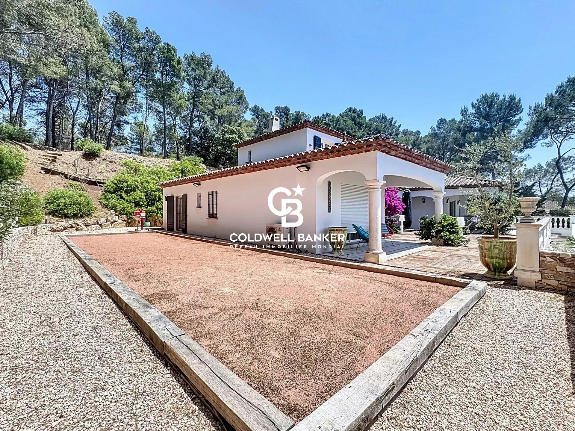 Propriété d’exception au cœur d’un domaine sécurisé et verdoyant, à seulement 20 minutes des plages et 10 minutes des commodités. Située dans un secteur très prisé, cette villa de 2008, en position dominante, offre une alliance parfaite entre élégance architecturale, volumes généreux et cadre de vie serein. Édifiée sur un parc paysager de plus de 5 000 m², elle développe environ 245 m² habitables et propose un confort haut de gamme. Un cadre raffiné au sein d’une nature préservée : Dès l’entrée, un portail massif et élégant dévoile une allée majestueuse bordée de végétation soignée, menant à une demeure à l’esthétique contemporaine et intemporelle. À l’intérieur, de vastes espaces lumineux et spacieux : • Salon principal de 63 m² : volume généreux, finitions soignées, grande luminosité, sols grand format •. Cuisine dinatoire de 24 m² : moderne, entièrement équipée, propice à la convivialité, sols grand format. • Hauteurs de plafond & perspective dans l’aménagement intérieur Espace nuit, paré d’un luxe élégant : • Rez-de-chaussée : - Suite parentale avec chambre spacieuse, grand dressing, salle d’eau avec WC. - Bureau indépendant de belle taille. - Sols marbre contemporain – espaces spacieux •. À l’étage : - Trois chambres avec dressing et SDB : - Une avec salle de bain et WC. - Deux avec salle d’eau privative. - Sols marbre contemporain – espaces spacieux - WC indépendant. L’ensemble des pièces de vie s’ouvrent sur une terrasse panoramique partiellement couverte, dominant le jardin, au calme, sans vis-à-vis. Les espaces extérieurs orientés plein sud assurent une continuité fluide entre intérieur et nature. Prestations extérieures haut de gamme : • Piscine style Bali, élégante, avec espace détente, solarium et cuisine d’été. • Boulodrome pour jeux de boule lyonnaise, pétanque ou longue. • Studio indépendant de 24 m², idéal pour invités ou personnel. • Abri de jardin et double garage de 50 m² offrant une grande fonctionnalité. Cette propriété d’exception allie luxe, intimité et nature dans un environnement sécurisé, et bénéficie d’un réaménagement contemporain haut de gamme. Une véritable proposition d’art de vivre serein pour une clientèle exigeante en quête de calme, de confort et de prestations exclusives. Plaquette de présentation + distances et temps de trajet sur demandes : Williams Aureille - Prestige Real Estate consultant williams.aureille@coldwellbanker.fr +33 (0) 682 822 539