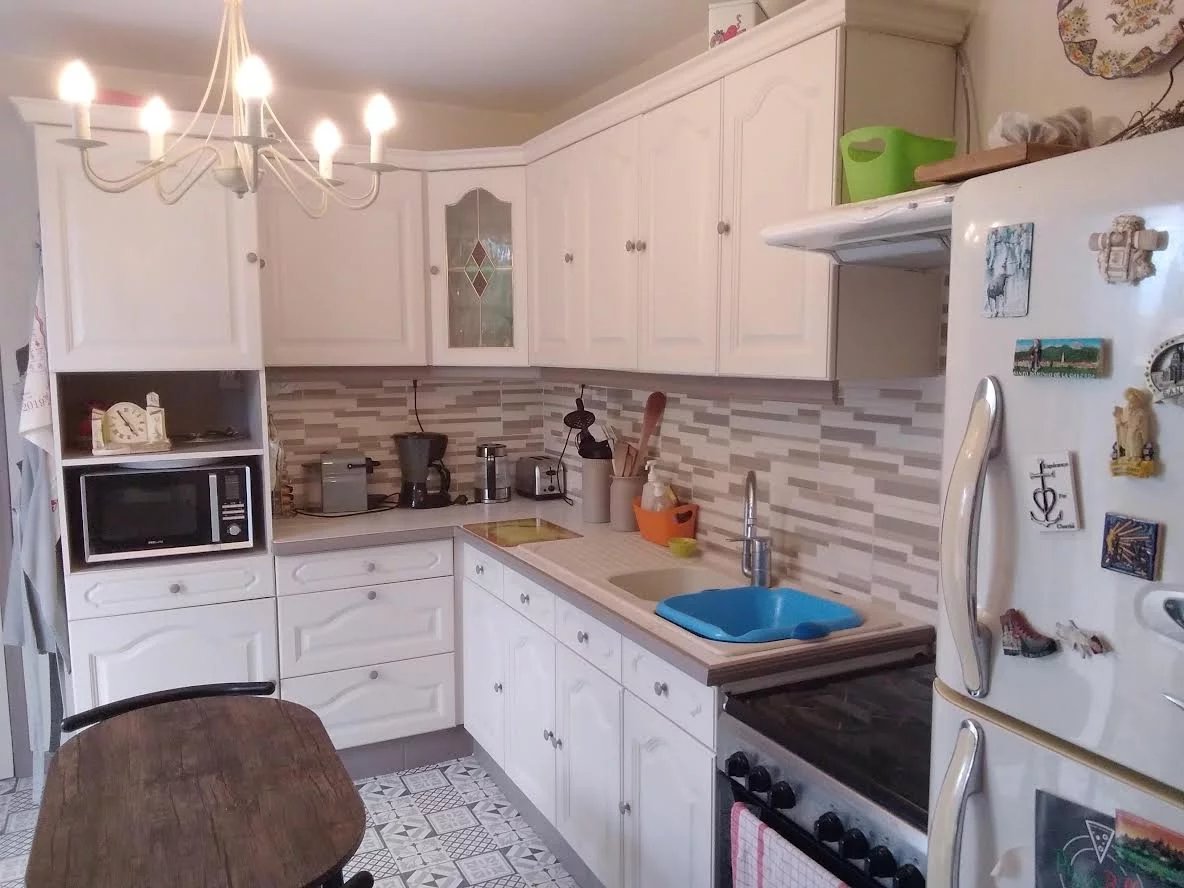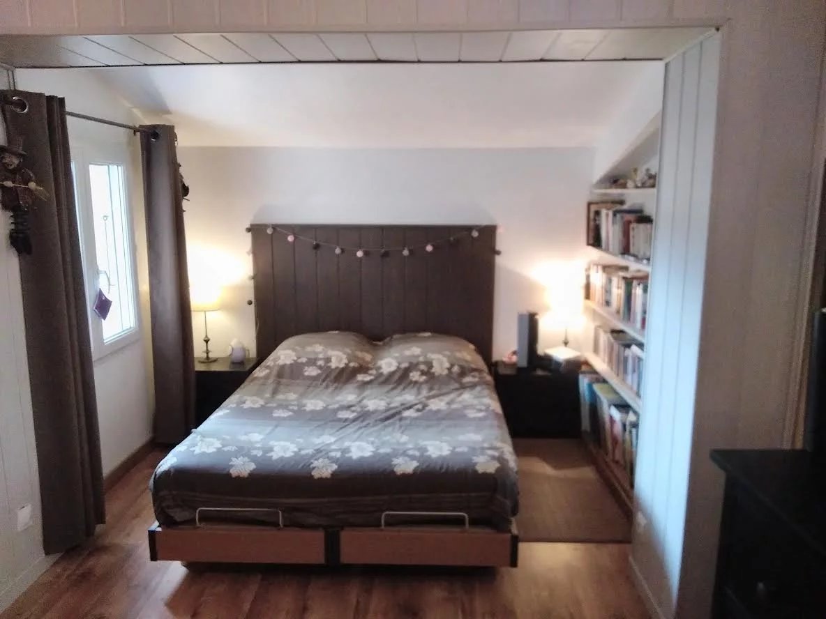 Elle est composée au rez de chaussée d'un grand séjour donnant sur la terrasse, d'une cuisine aménagée, de trois chambres dont une de 18 m2 et une salle d'eau.