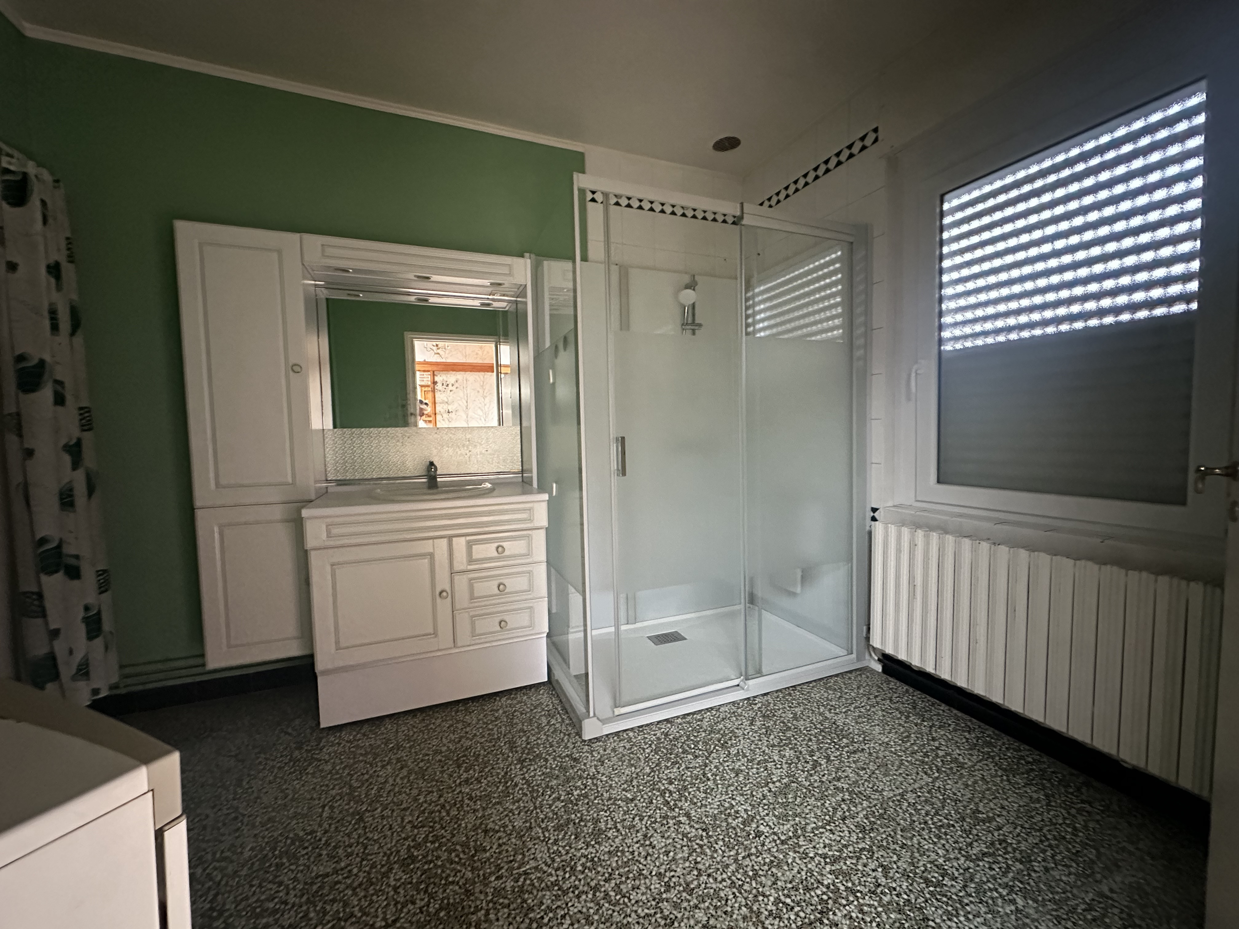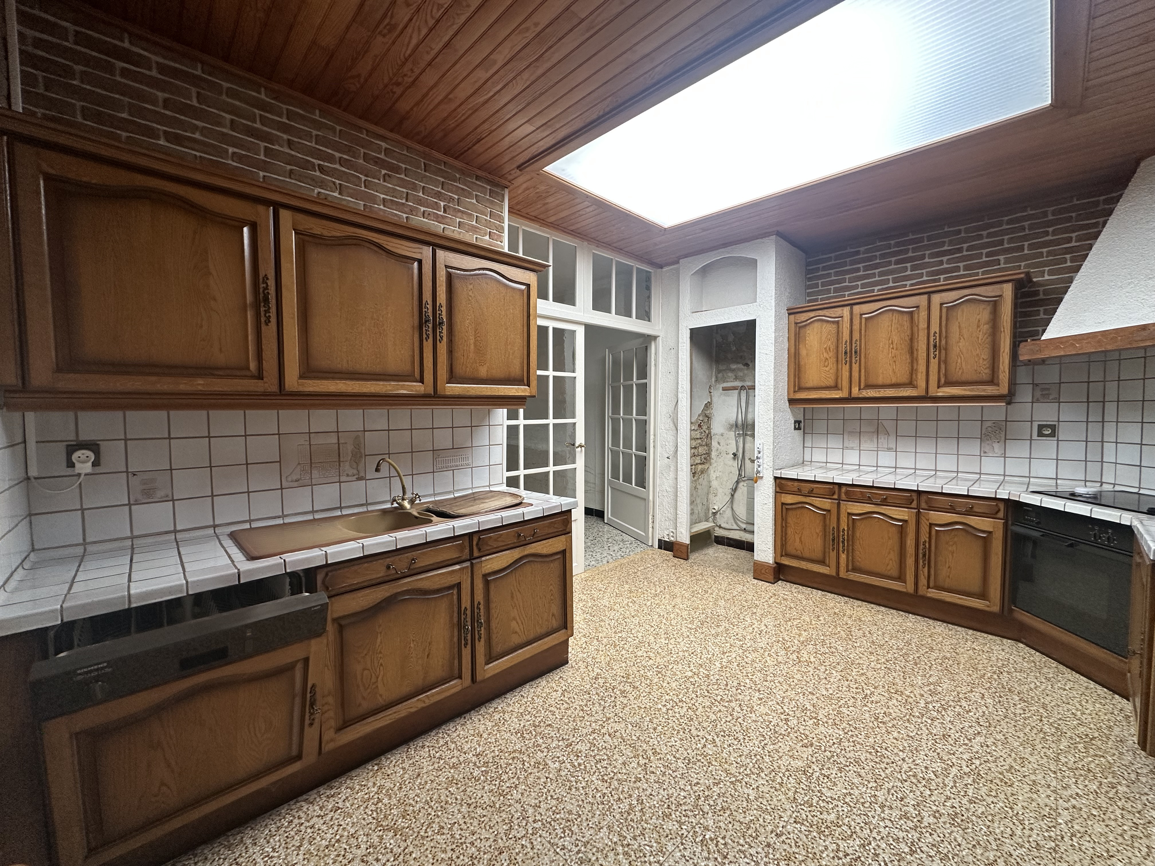 A Sin le Noble, à 5 minutes de Douai, maison semi individuelle de type longère offrant 103 m² habitables avec séjour de 36 m² environ, cuisine équipée de 14 m², salle de douche, wc séparé, bureau, à l'étage 2 chambres et un très grand grenier aménageable.
