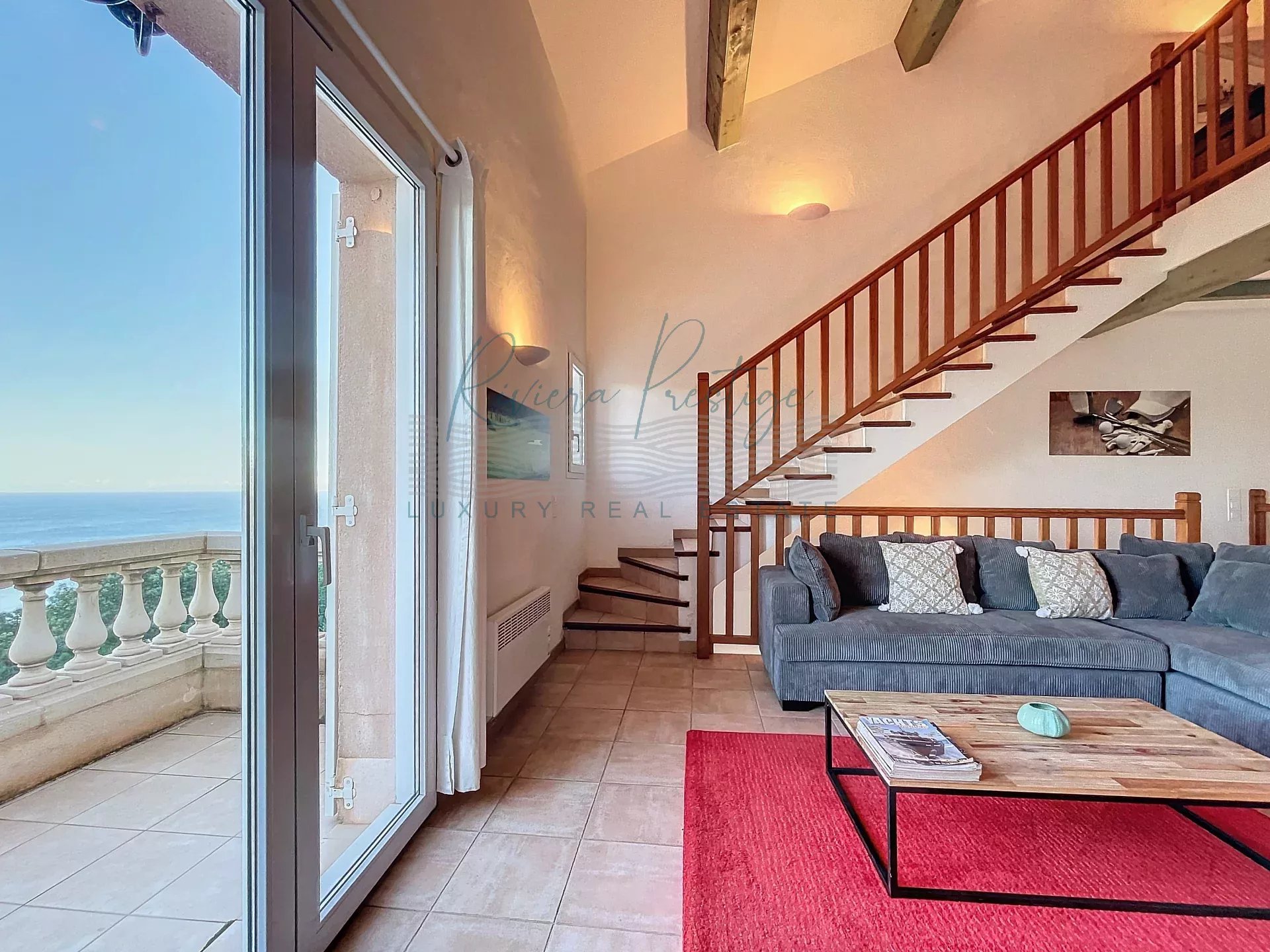 Dans un domaine privé, découvrez cette villa formant une copropriété de deux lots. offrant un cadre de vie paisible avec une magnifique vue panoramique sur le Massif de l’Estérel et la mer.