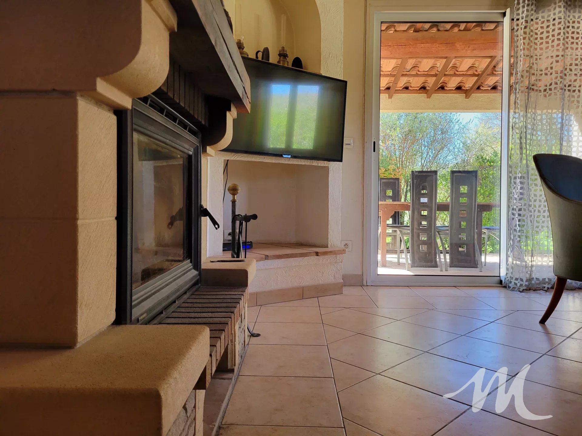 Son salon accueillant est sublimé par une cheminée chaleureuse. La cuisine ouverte est équipée et donne sur le séjour, facilitant ainsi les échanges et les moments partagés.