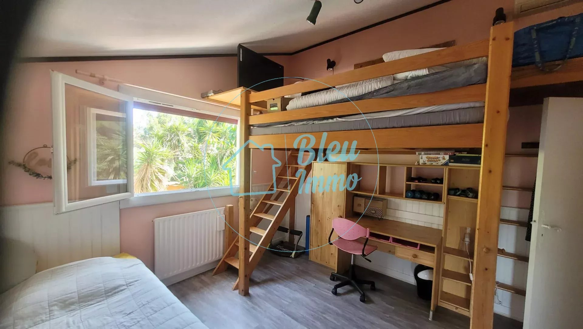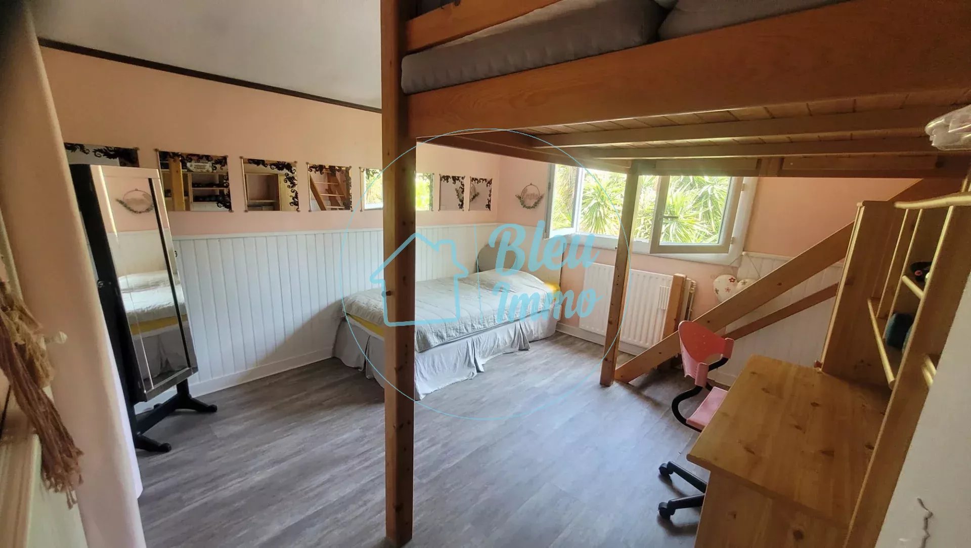 - À l’étage : trois chambres, dont deux avec mezzanines, et une avec terrasse privative de 13m2, nombreux rangements