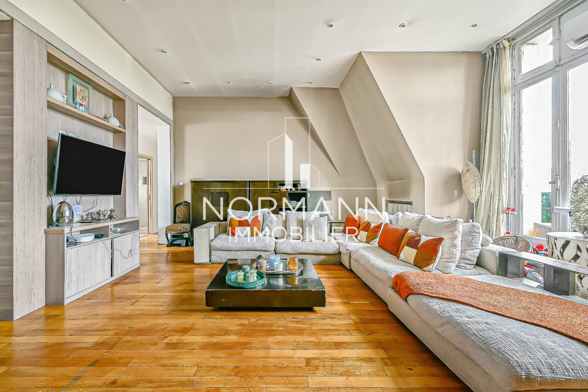 PONT DE NEUILLY / LONGCHAMP. Appartement familial traversant d'une superficie de 143 m2 carrez situé dans un bel immeuble ancien datant de 1930, au 7eme et dernier étage avec ascenseur. Il se compose: d'une entrée, d'un double séjour / salle à manger, d'une cuisine semi ouverte équipée et aménagée, d'une suite parentale avec salle de bains et dressing, de trois autres chambres, de deux salles de bains, d'un wc indépendant et de nombreux rangements. VRAI DERNIER ETAGE - PLAN PARFAIT - SANS VIS A VIS LUMINEUX. Annexes: Deux caves complètent ce bien. Possibilité d'acquérir une chambre de service de 11 m2 en sus du prix. Normann spécialiste de l'immobilier résidentiel est à votre disposition 7j/7. Kevin BENSOUSSAN +33699110505