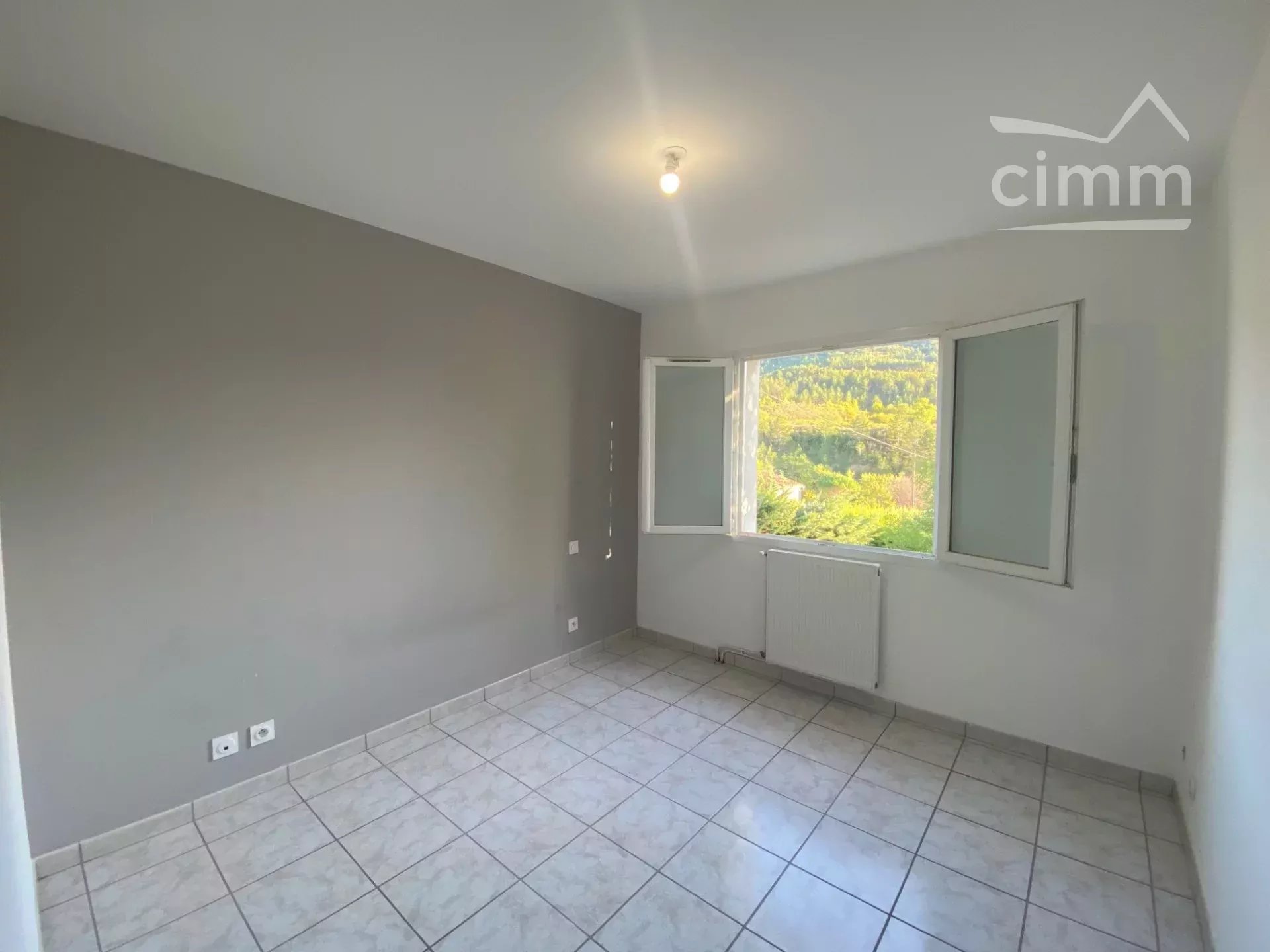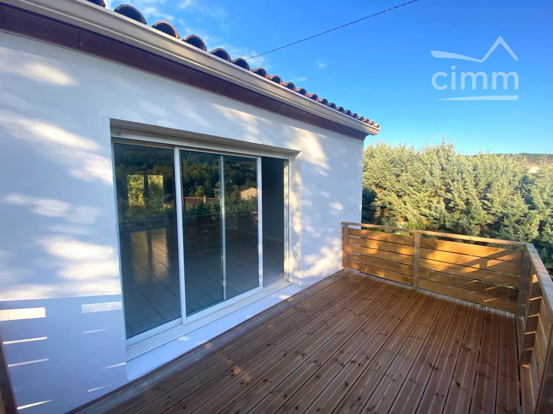 Ce bien se compose d'une lumineuse pièce de vie/cuisine de 40m² environ avec accès à la terrasse d'une vingtaine de m² offrant une très belle vue sur les collines. La maison possède trois chambres une de 10m² et deux de 9m² environ. Une spacieuse salle d'eau ainsi qu'un toilette séparé sont également présents.