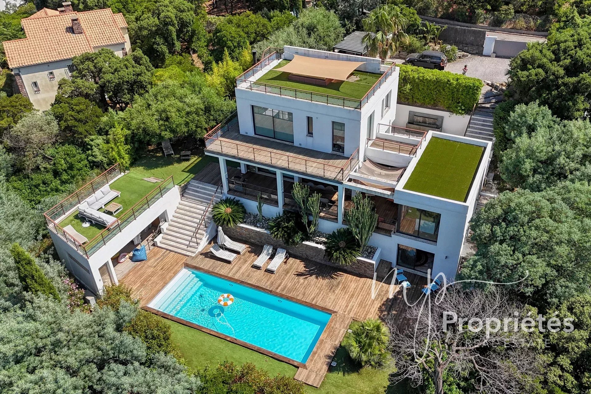 À l’extérieur, profitez de belles terrasses, d’une grande piscine chauffée avec pool-house de plus de 20 m², ainsi que d’un abri deux roues et d’une pièce de rangement.