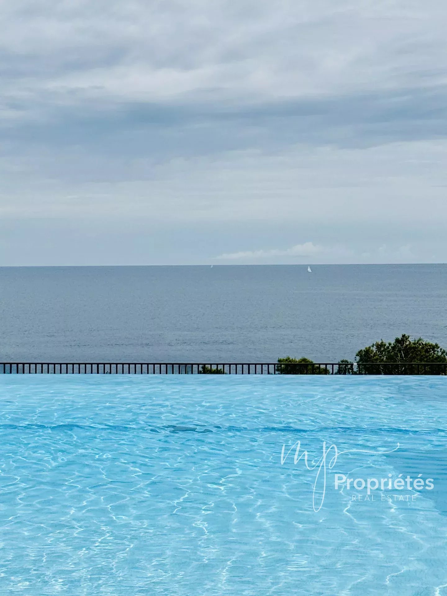 Le vaste séjour de 86 m², baigné de lumière, s’ouvre sur la terrasse et la vue mer. Une cuisine aménagée et équipée complète cet espace de vie.