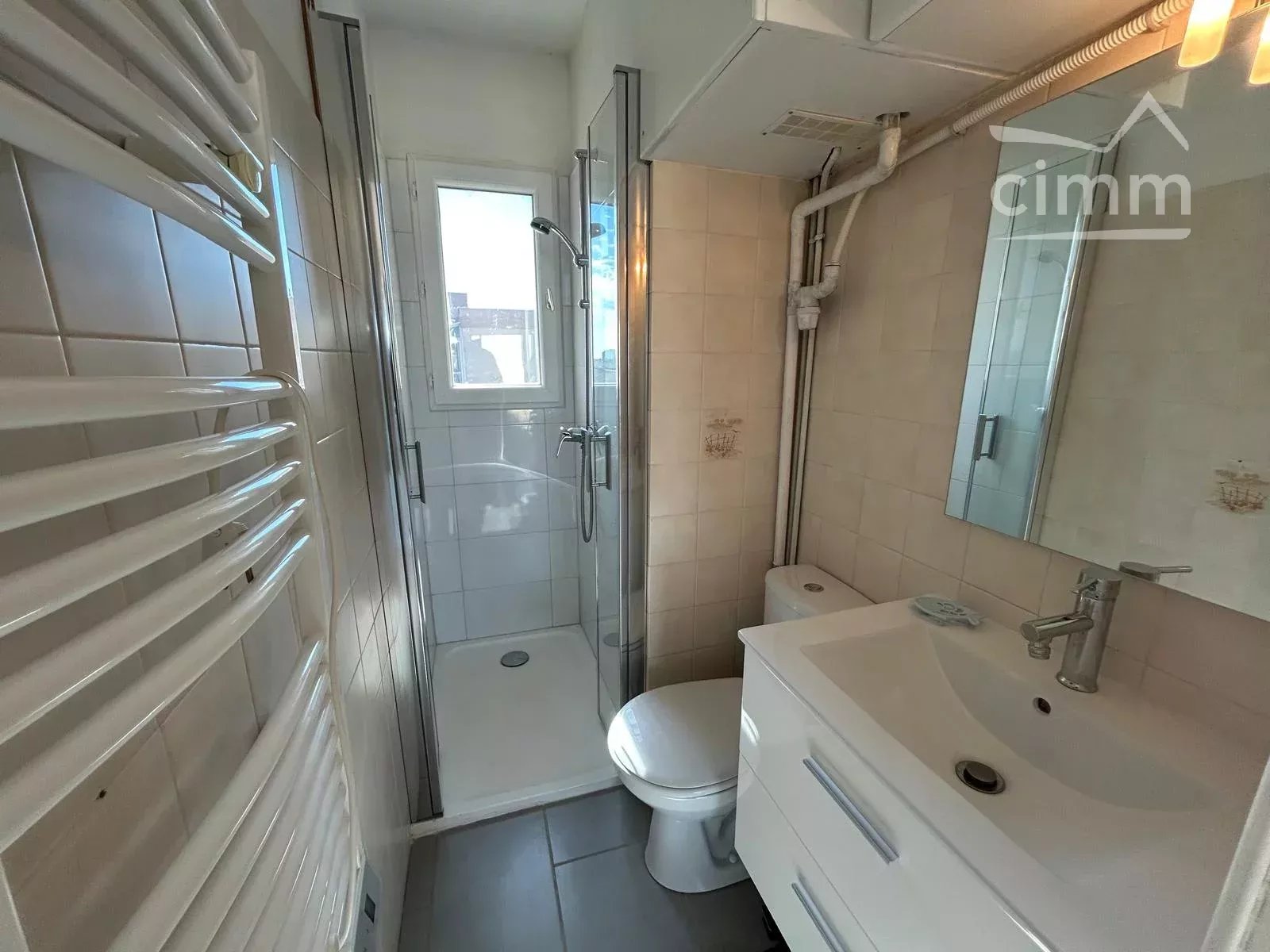 Le logement est composé comme suit : un séjour/cuisine équipée avec un lit armoire (140) + coin loggia avec un canapé convertible (140) ainsi qu'une salle d'eau avec WC.