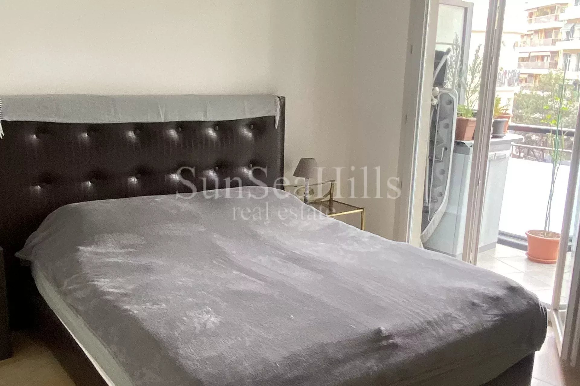A proximité du Négresco, à 100 mètres de la Promenade des Anglais et des plages, en étage élevé d'une résidence récente avec ascenseur, agréable 3 pièces avec une terrasse sud de 18m². Entrée, séjour lumineux avec cuisine équipée, 2 chambres, salle de bains et WC séparé. Possibilité d'acheter un garage dans la résidence. Les informations sur les risques auxquels ce bien est exposé sont disponibles sur le site Géorisques : georisques.gouv.fr