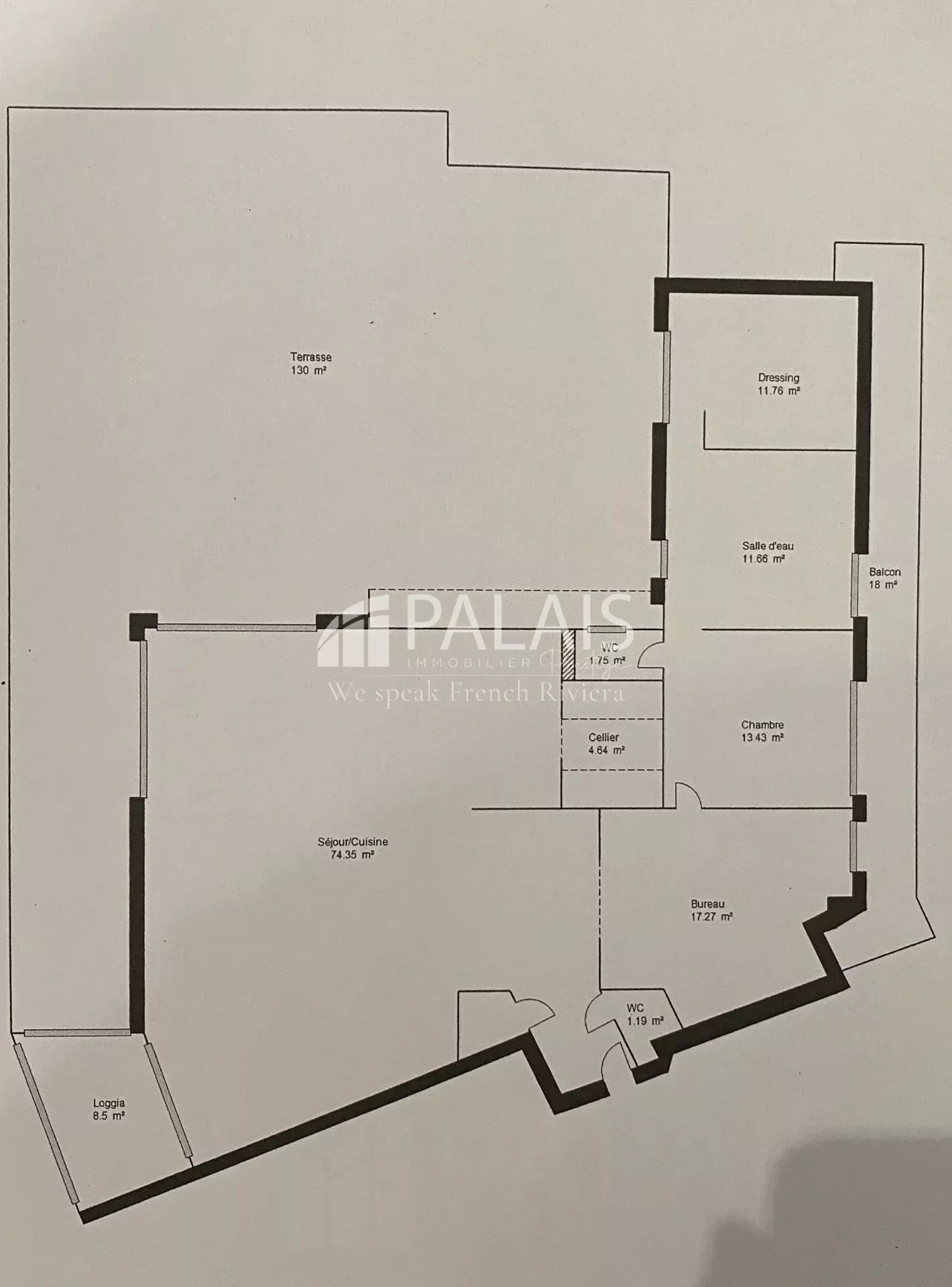 - Séjour/cuisine de 74 m2 exposition Sud/Est