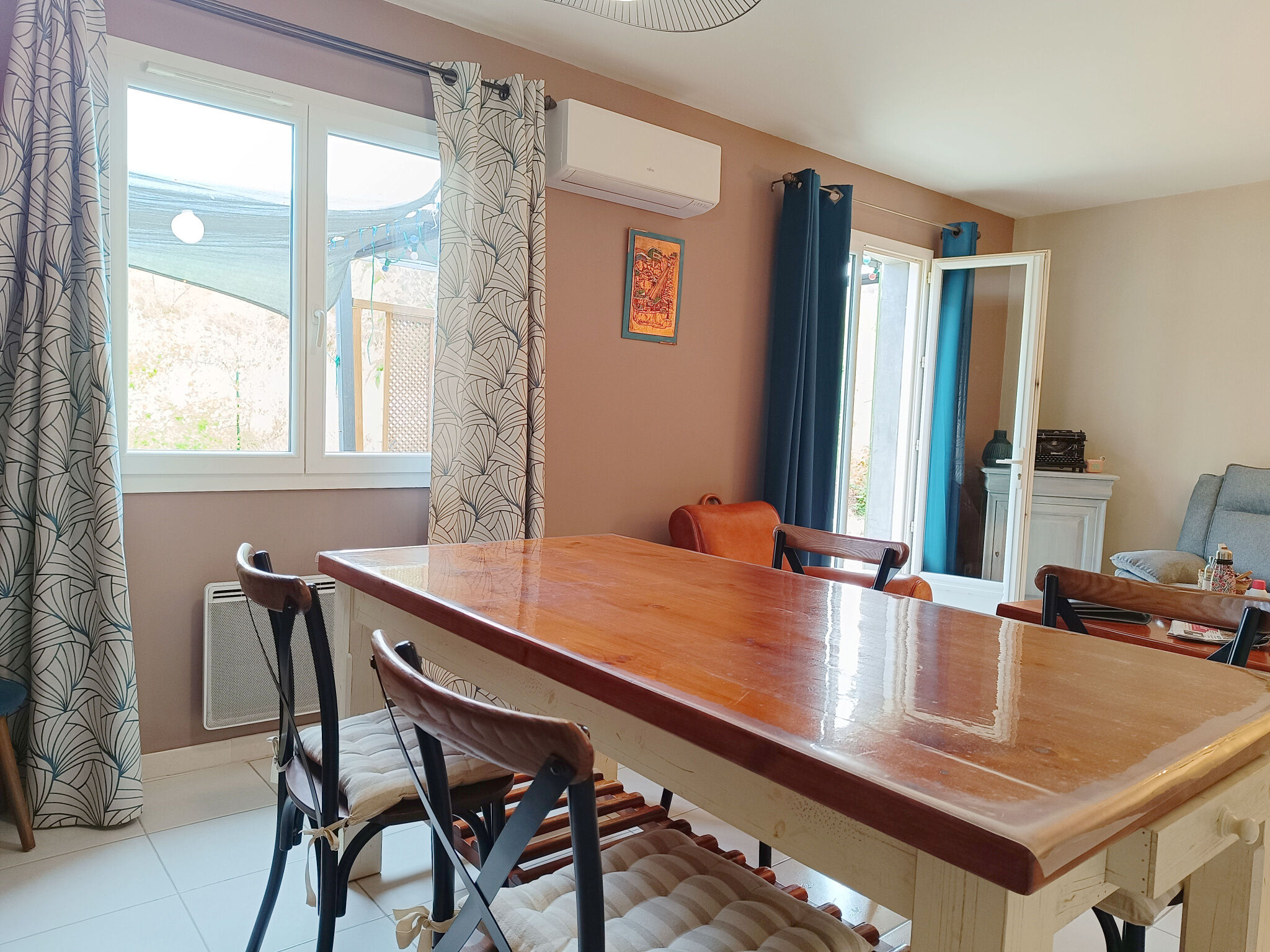 Nichée en bordure d'un village convivial et recherché à proximité de Carcassonne, cette villa de plain-pied de 90 m² habitables saura vous séduire par son parfait état d'entretien, son environnement paisible et sa fonctionnalité.Édifiée sur une parcelle de 421 m², elle se compose d'un agréable séjour lumineux de plus de 26 m² ouvrant sur une terrasse, d'une cuisine indépendante (pouvant être facilement ouverte sur le séjour), de trois chambres confortables, d'une salle deau avec douche contemporaine et de WC séparés.Un garage de 16 m² complète l'habitation principale.Les plus :Environnement naturel agréable, à deux pas de sentiers de promenade et de la campagne audoiseVillage dynamique avec commerces et vie locale activeProximité de Carcassonne (moins de 15 minutes), ses écoles, ses commodités et son aéroportMaison impeccablement entretenue, aucun travaux à prévoirCabanon de 9 m² en fond de jardin, idéal pour du stockage, un atelier ou un espace détenteUne opportunité rare pour les amoureux de la nature et du calme, tout en restant proche de la ville. À visiter sans tarder !Les informations sur les risques auxquels ce bien est exposé sont disponibles sur le site Géorisques : www.georisques.gouv.fr. (gedeon_27387_31661805)