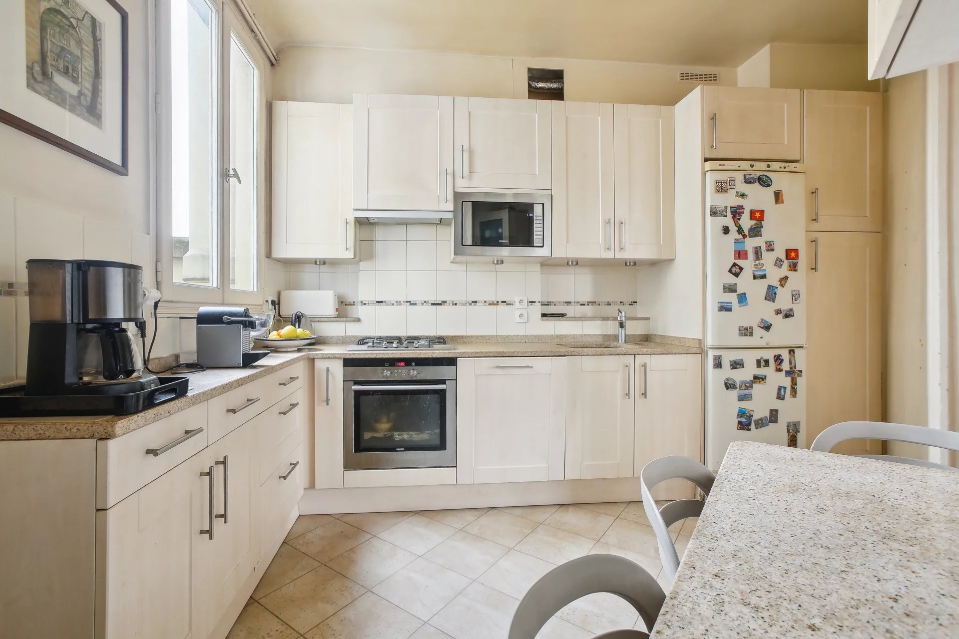 La partie nuit comprend quatre chambres lumineuses, une salle de bains, un WC indépendant et une buanderie. Cet appartement traversant, en excellent état, séduit par ses volumes généreux, sa hauteur sous plafond, et son agencement optimisé sans perte d’espace. Il allie charme et authenticité grâce à son parquet, ses moulures et ses cheminées. Une cave complète ce bien.