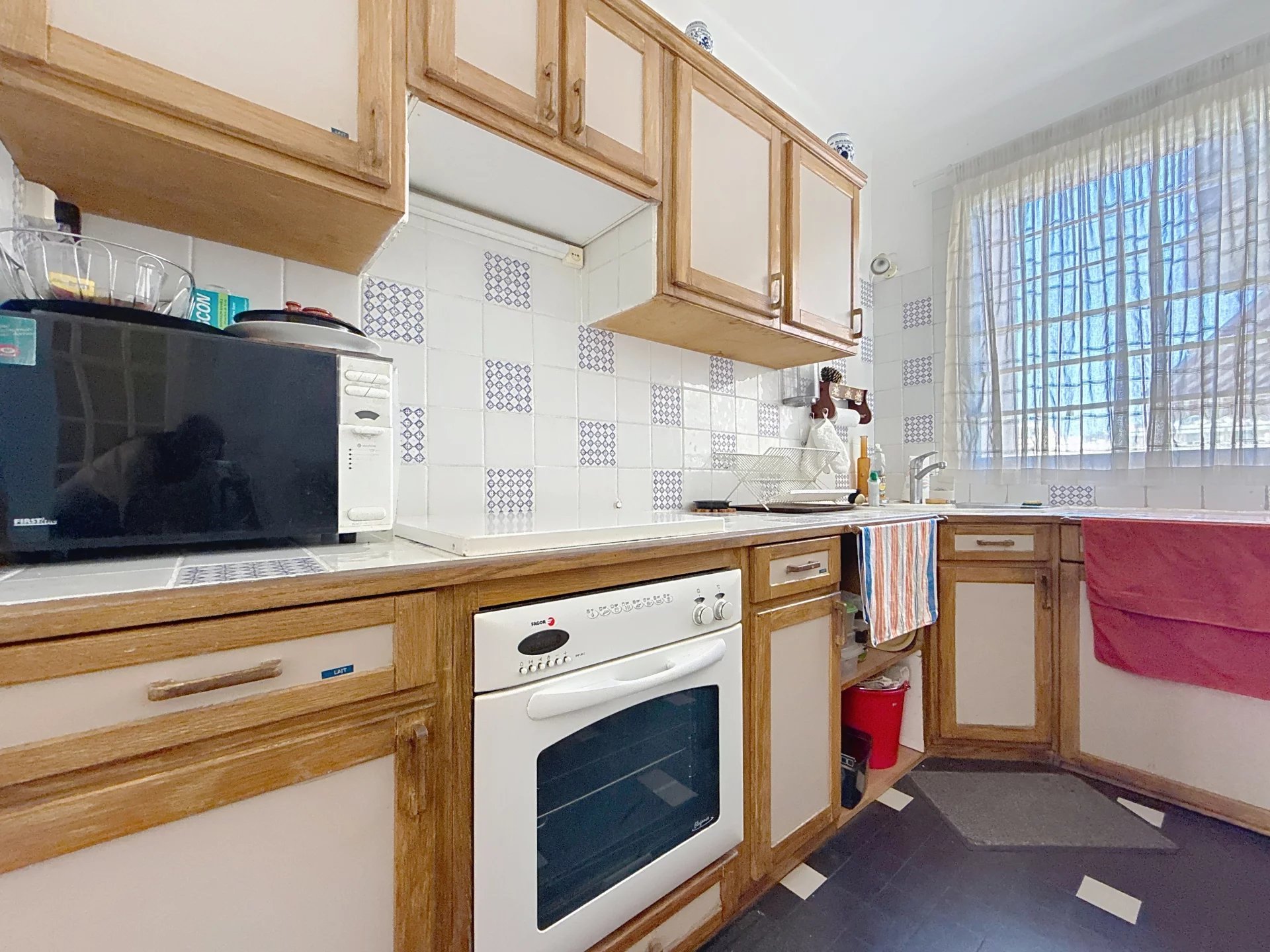 -SOUS COMPROMIS- Appartement traversant a rénover proche de tout les commerces dans une résidence sécurisée. Séjour spacieux et lumineux, 2 grandes chambres, cuisine séparée et de nombreux rangements. Toutes les chambres et le séjour ont un accès à la terrasse. Garage et cave en annexes complètent ce bien.