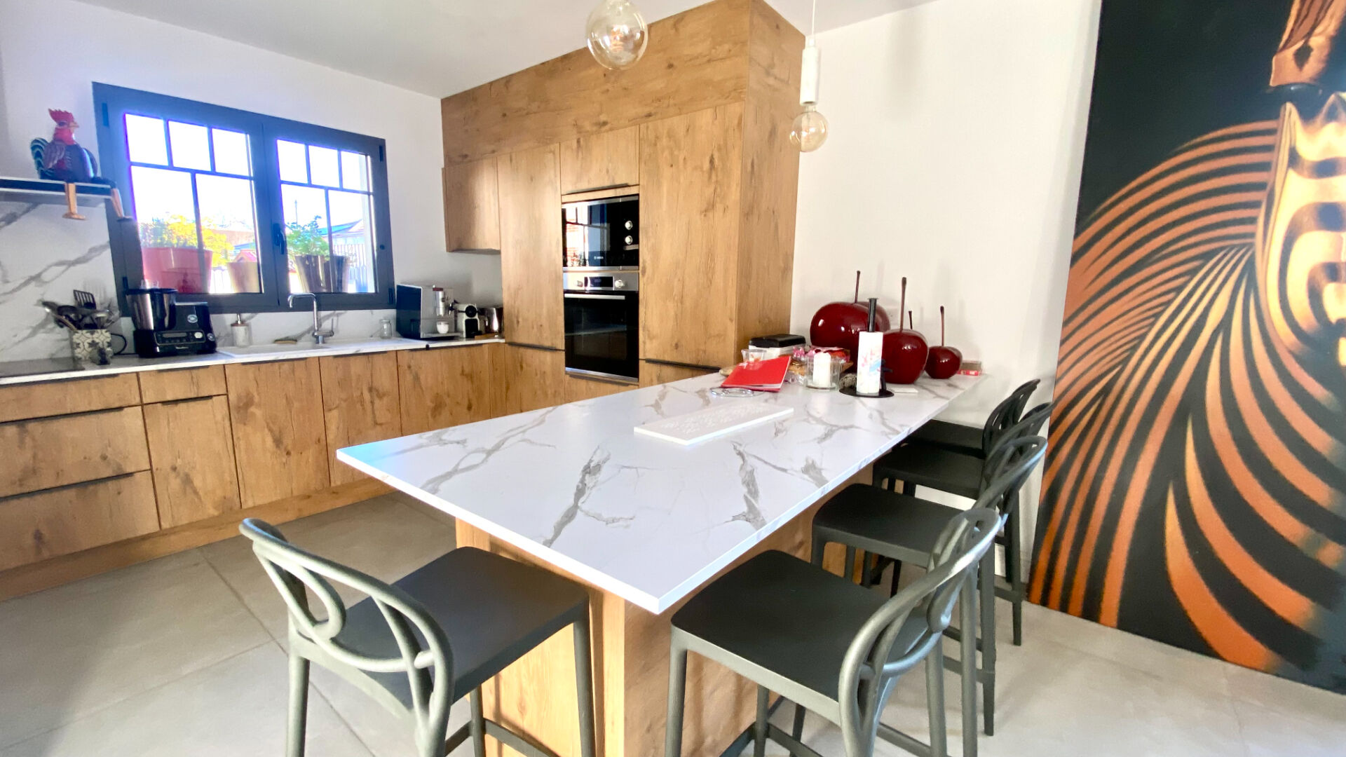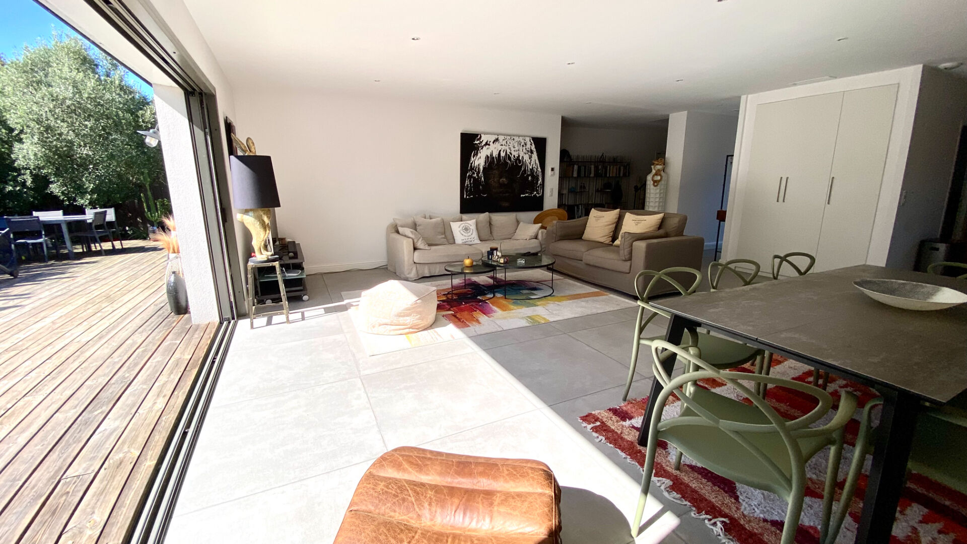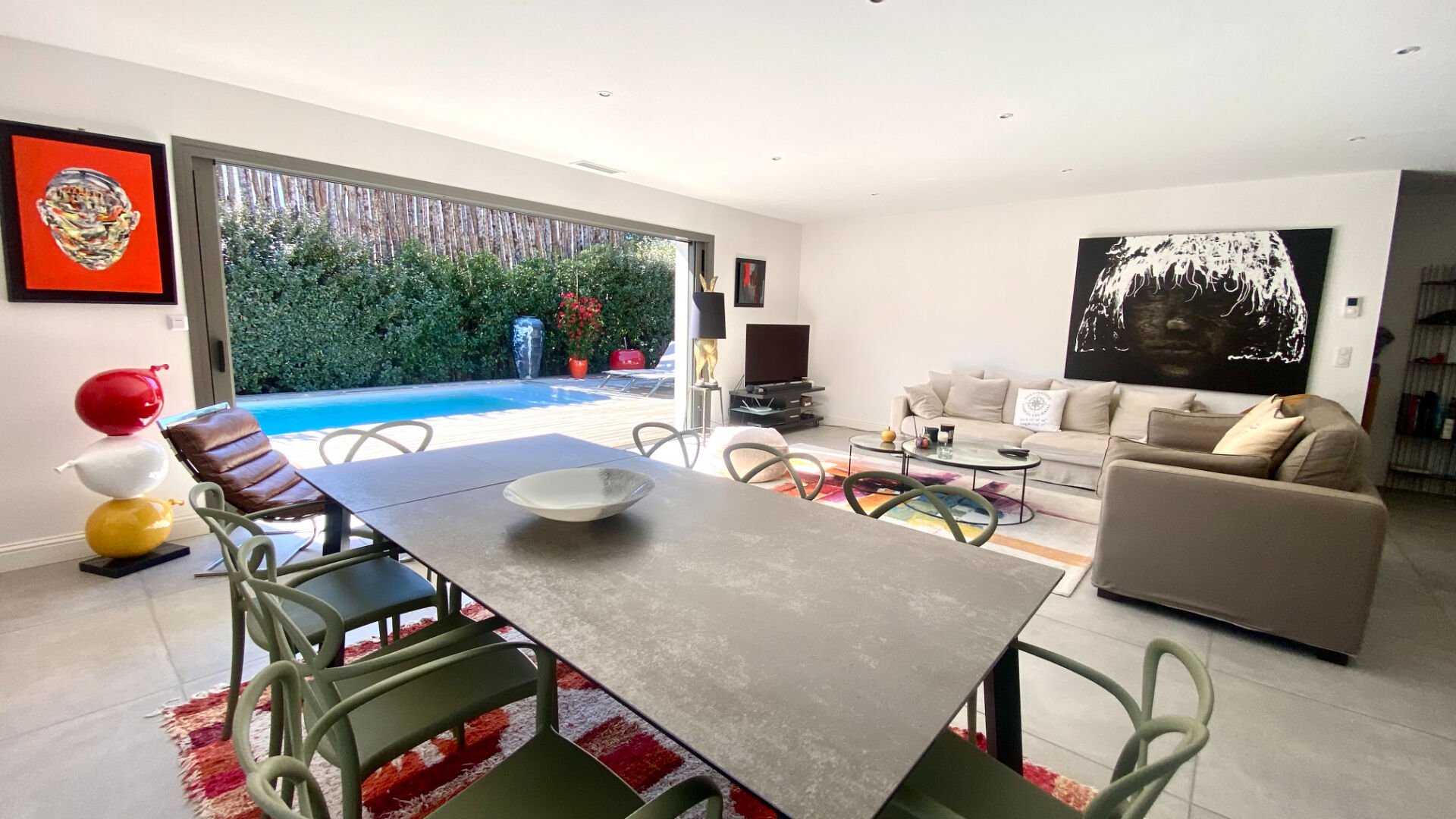 GUJAN La Hume A VENDRE - Découvrez cette magnifique villa contemporaine de style arcachonnais, construite en 2021 et encore sous garantie décennale, située dans un secteur calme et très recherché. Édifiée sur une parcelle de près de 600 m², cette propriété vous séduira par ses prestations modernes et son agencement optimisé. Au Rez-de-chaussée : Une belle entrée ouvrant sur une vaste pièce de vie lumineuse d'environ 62 m² avec baies vitrées à galandage, comprenant une cuisine ouverte, aménagée et entièrement équipée. -Un cellier/buanderie attenant à la cuisine. -Une suite parentale de plain-pied avec dressing et salle d'eau privative. -Une deuxième chambre avec salle d'eau. -Un dégagement et un WC indépendant. Étage : -Deux chambres supplémentaires, chacune disposant de sa propre salle d'eau. -Un WC indépendant. Extérieurs et équipements -Une piscine chauffée pour des moments de détente tout au long de l'année. -Un garage d'environ 19m2 et un carport. -Chauffage performant par pompe à chaleur air/eau, climatisation réversible gainable, chauffe-eau thermodynamique... -portail électrique et visiophone. -Construction RT 2012 Pour plus de renseignements contacter l'agence immobilière ERA à Teste de Buch et demandez Caroline BODEREAU au 05 57 63 34 98 ! La présente annonce immobilière a été rédigée sous la responsabilité éditoriale de Mme Caroline BODEREAU - agent commercial immatriculé au RSAC de Bordeaux sous le numéro 837 855 915 00018. (4.17 % honoraires TTC à la charge de l'acquéreur.)