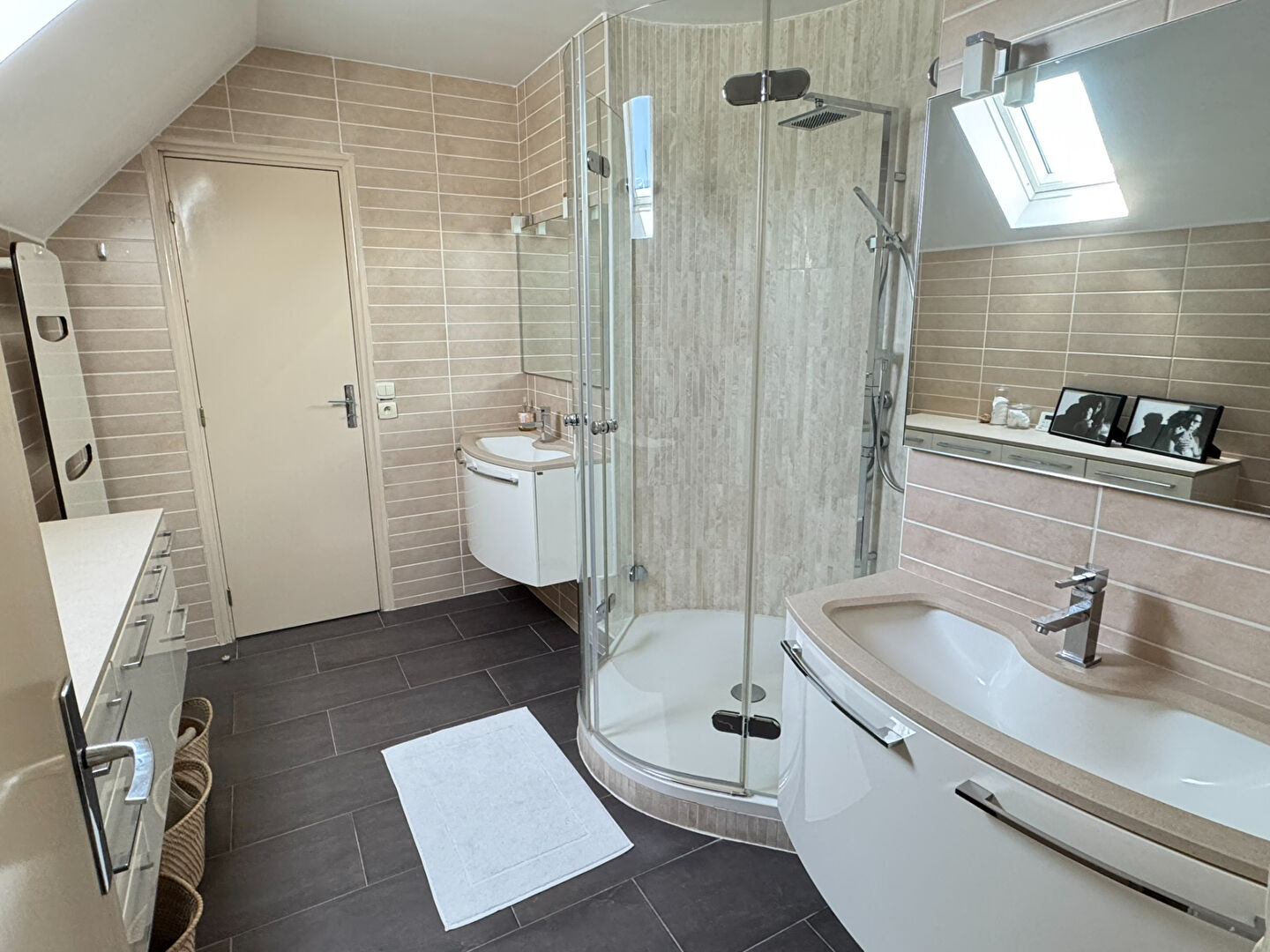 Située dans un environnement paisible, cette belle maison de 221 m² vous séduira par ses volumes généreux et son cadre verdoyant. Dès l'entrée, vous découvrirez un vaste séjour avec cheminée, une salle à manger lumineuse, une cuisine entièrement équipée, ainsi qu'un cellier et une buanderie. A l'étage, l'espace nuit offre quatre grandes chambres et une salle de bains, le tout complété par de nombreux rangements. Pour vos moments de détente, profitez d'une véranda aménagée en espace bien-être avec sauna, bain à remous et douche. A l'extérieur, une pergola abrite un agréable coin repas proche d'une fontaine aux effets reposants. Un garage vient parfaire ce bien aux prestations complètes. (2.58 % honoraires TTC à la charge de l'acquéreur.) Copropriété de 14 lots - dont 14 lots habitation. (Pas de procédure en cours). Charges annuelles : 100 euros.