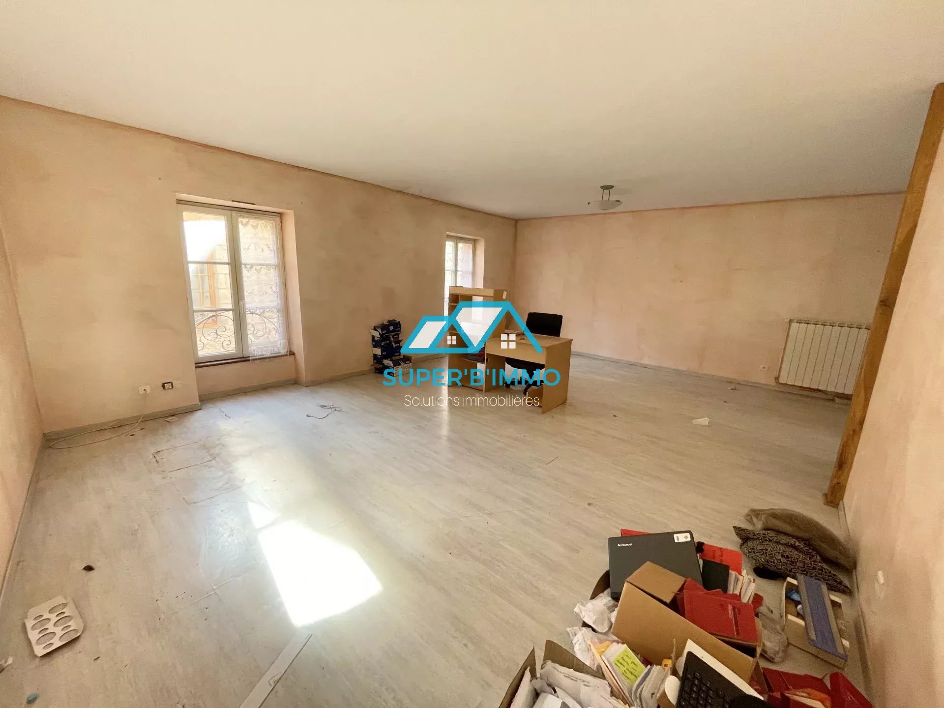 Sur la commune de Blesle, village classé "Les plus beaux villages de France", bâtiment à usage mixte composé : - au rez-de-chaussée : une ancienne boucherie avec le magasin, un bureau, une cuisine et une chambre froide Au l'étage, un appartement de type 4, en duplex composé d'une pièce de vie ouverte avec une cuisine et un séjour de 35 m2, trois grandes chambres, un dégagement une buanderie avec WC et une salle de bains. Le bien dispose d'une cour d'environ 20 m2. Double vitrage.