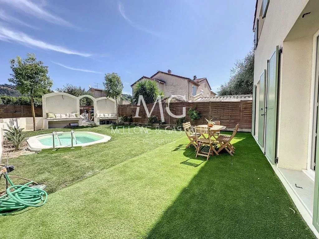 La Roquette-sur-Siagne, à proximité des commodités à pied, belle maison de ville entièrement rénovée en 2022 d'une superficie de 111m2 avec jardin de 150m2 et piscine, clé en main La maison se compose comme suit : Au RDC : Hall d’entrée, toilettes indépendantes, buanderie, cuisine ouverte avec îlot central et salon ouvrant sur le jardin avec piscine. Un petit studio avec salle de douche pouvant faire office de chambre d’amis ou atelier se trouve également au RDC À l’étage : master bedroom avec salle de bains privée. Deux chambres confortable et une salle de douche avec toilettes. Deux places de parking privées complètent ce bien. Isolation extérieur / toiture, climatisation gainable, belles prestations À visiter sans tarder,