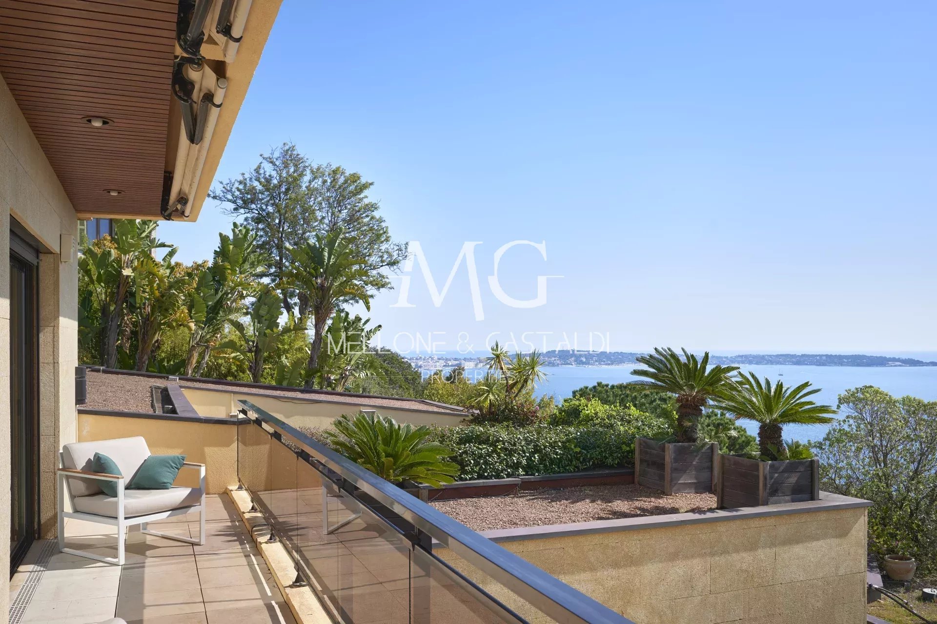 Cannes | Californie, au sein d'une résidence prestigieuse et sécurisée, magnifique Penthouse de 220m2 bénéficiant d'un extérieur avec jardin, terrasse privative de 260m2, patio, bassin et vue mer panoramique. Ce sublime penthouse est composé d'un salon avec cuisine ouverte, 4 chambres, 4 salles de douches dont une chambre bénéficiant d'un Hammam. 2 piscines | 2 terrains de Tennis 3 garages complètent ce bien d’exception. 3 garages et 1 cave complètent ce bien exceptionnel,