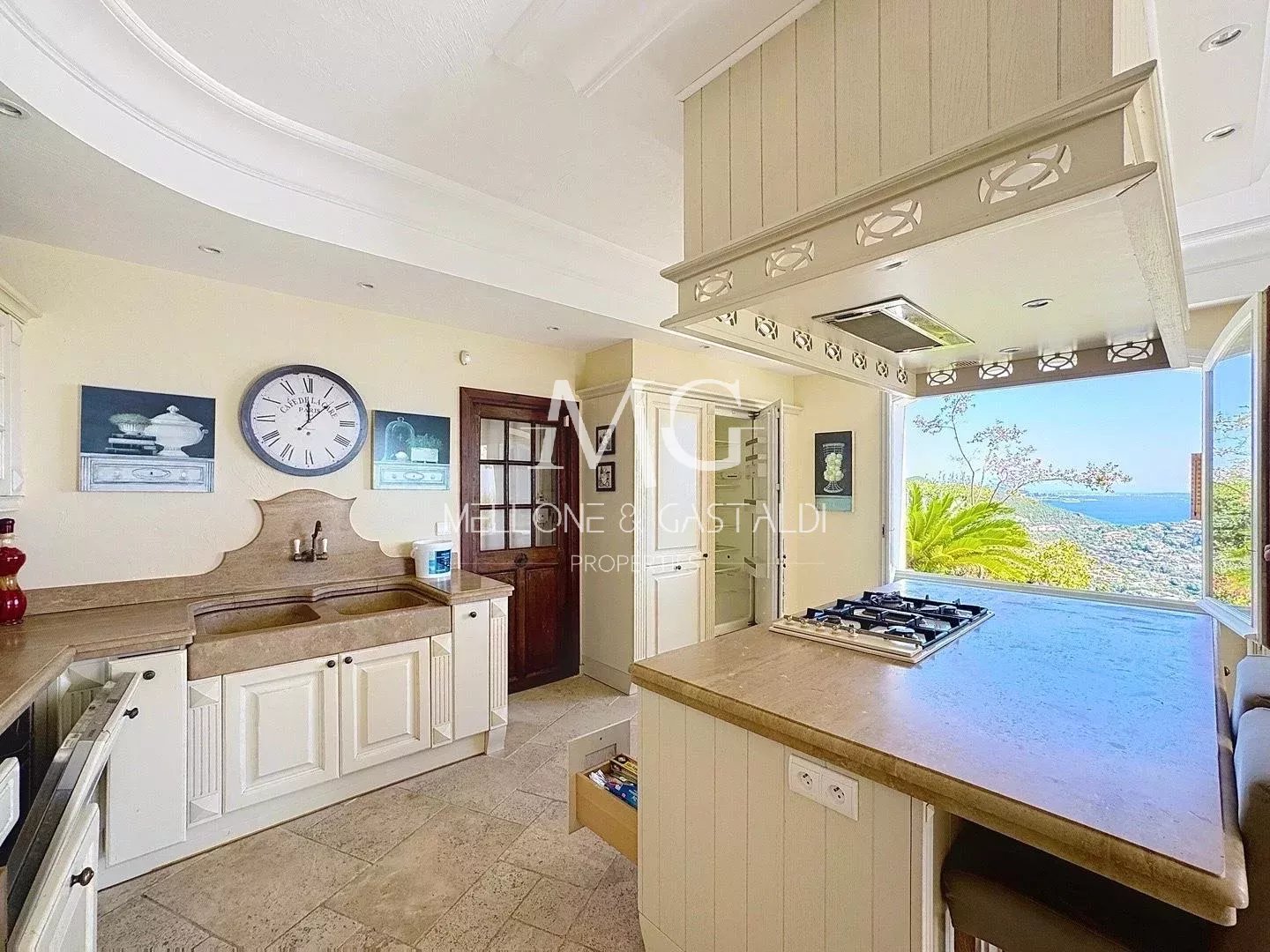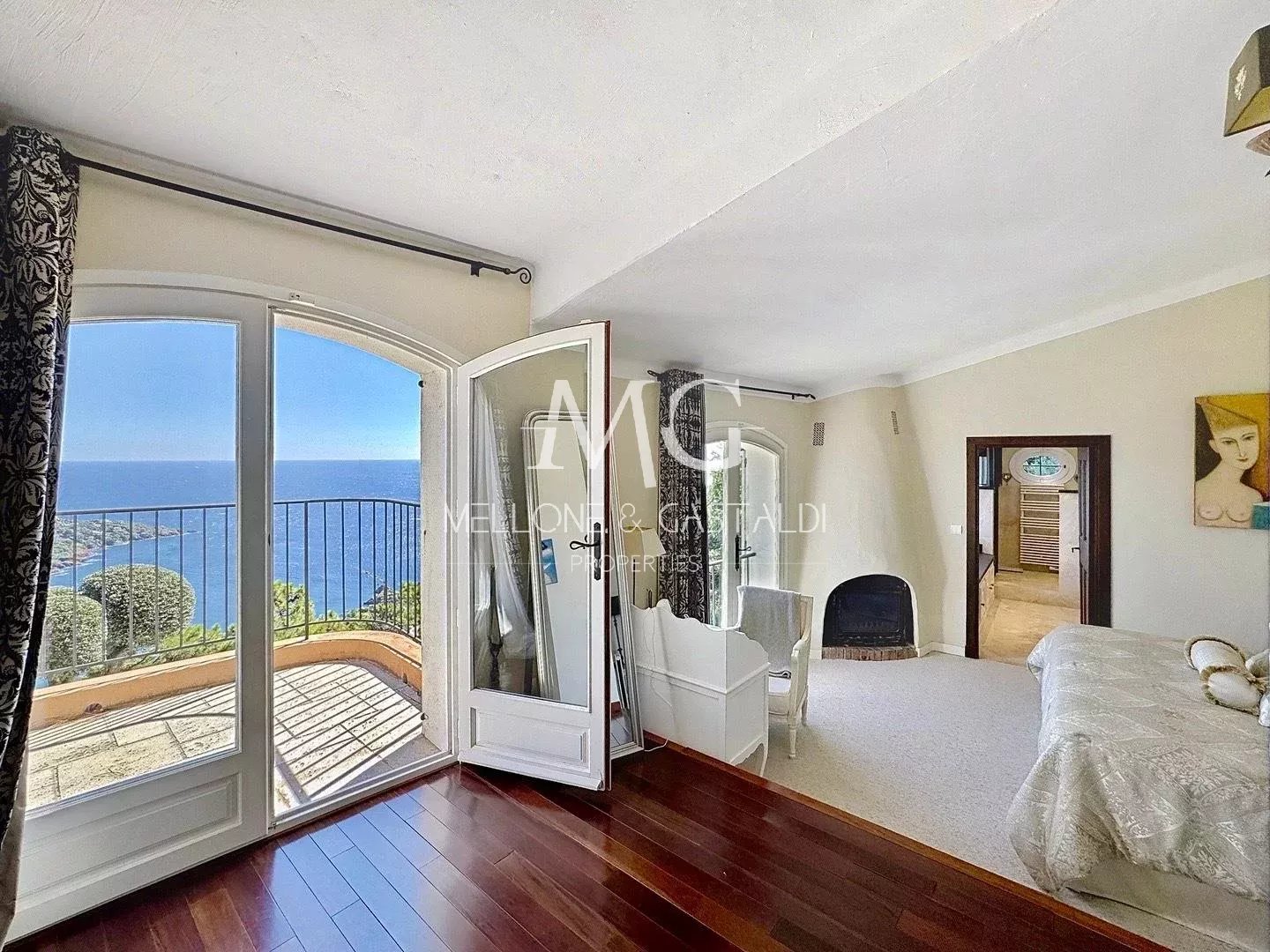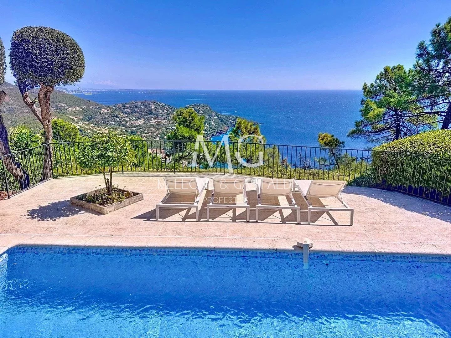 Nichée au cœur d’un prestigieux domaine sécurisé de Théoule-sur-Mer, cette magnifique villa provençale aux couleurs chaleureuses des roches rouges de l’Estérel séduit par son authenticité et son élégance Offrant une surface habitable de 197 m², elle bénéficie d’une exposition idéale qui inonde les pièces de lumière et d’une vue mer panoramique à couper le souffle Agencement : - 3 grandes chambres, chacune avec son espace généreux - Un vaste séjour lumineux avec cuisine américaine ouverte, coin salle à manger et un salon avec cheminée, le tout ouvert sur la mer - Des terrasses ensoleillées et une jolie piscine avec vue imprenable sur la Méditerranée Extérieurs : - Superbes jardins arborés et paysagers - Espaces de détente au calme absolu, sans aucun vis-à-vis - Un grand garage complète ce bien rare Cette villa conjugue charme provençal, confort moderne et situation d’exception dans l’une des adresses les plus recherchées de la Côte d’Azur Une opportunité unique à saisir à Théoule-sur-Mer