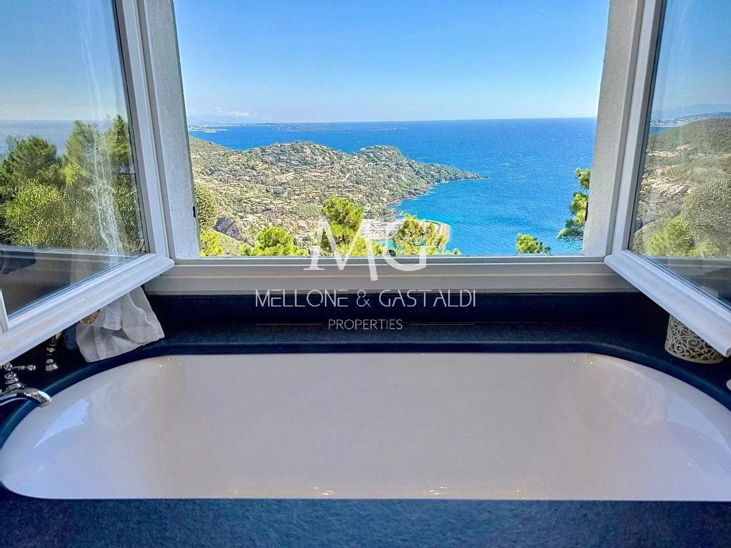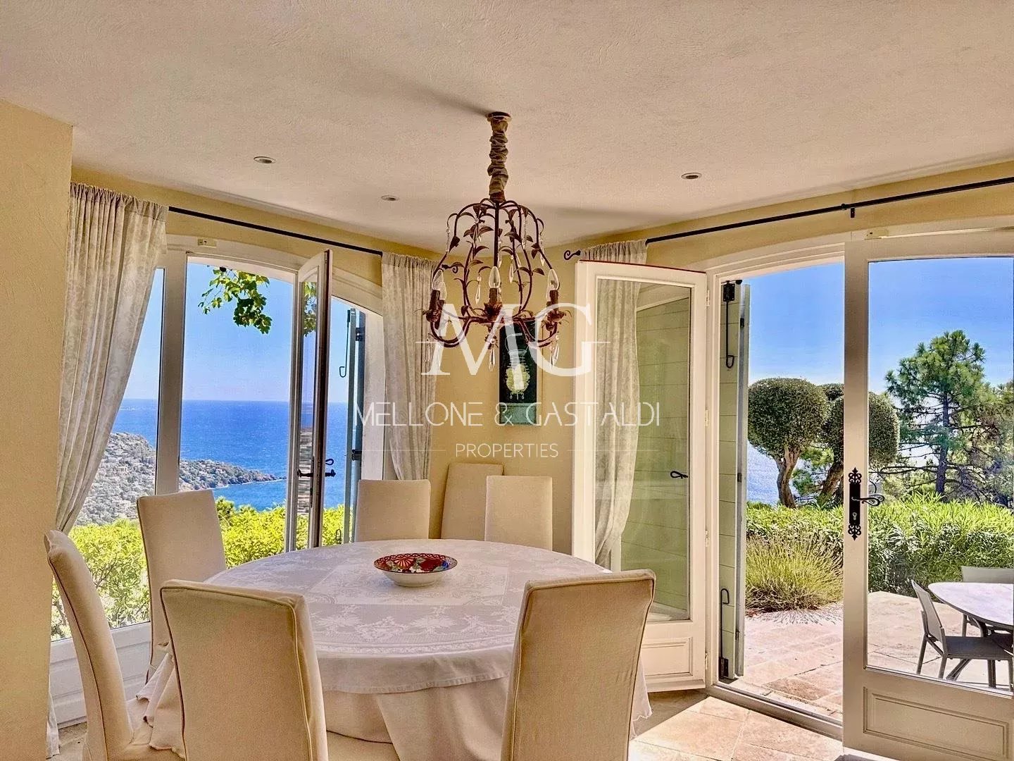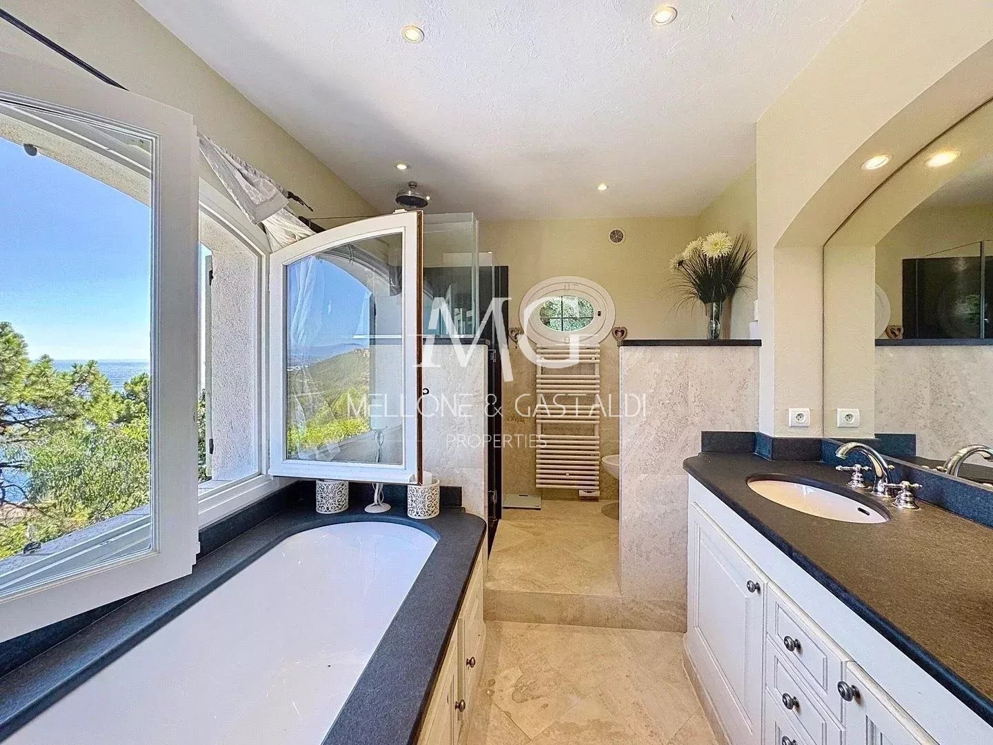 Nichée au cœur d’un prestigieux domaine sécurisé de Théoule-sur-Mer, cette magnifique villa provençale aux couleurs chaleureuses des roches rouges de l’Estérel séduit par son authenticité et son élégance Offrant une surface habitable de 197 m², elle bénéficie d’une exposition idéale qui inonde les pièces de lumière et d’une vue mer panoramique à couper le souffle Agencement : - 3 grandes chambres, chacune avec son espace généreux - Un vaste séjour lumineux avec cuisine américaine ouverte, coin salle à manger et un salon avec cheminée, le tout ouvert sur la mer - Des terrasses ensoleillées et une jolie piscine avec vue imprenable sur la Méditerranée Extérieurs : - Superbes jardins arborés et paysagers - Espaces de détente au calme absolu, sans aucun vis-à-vis - Un grand garage complète ce bien rare Cette villa conjugue charme provençal, confort moderne et situation d’exception dans l’une des adresses les plus recherchées de la Côte d’Azur Une opportunité unique à saisir à Théoule-sur-Mer