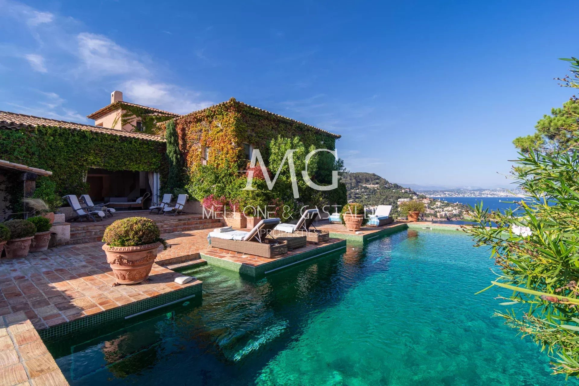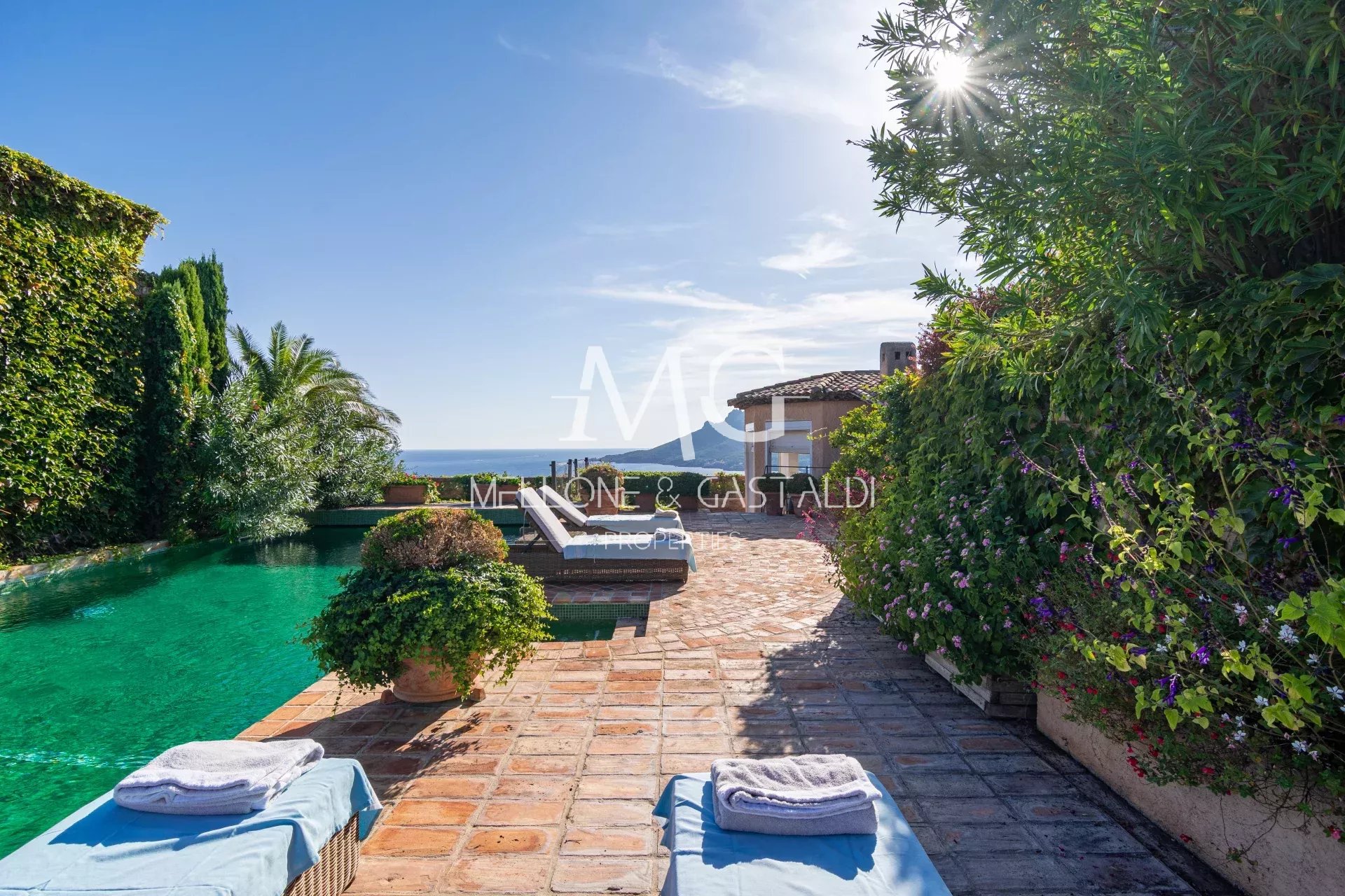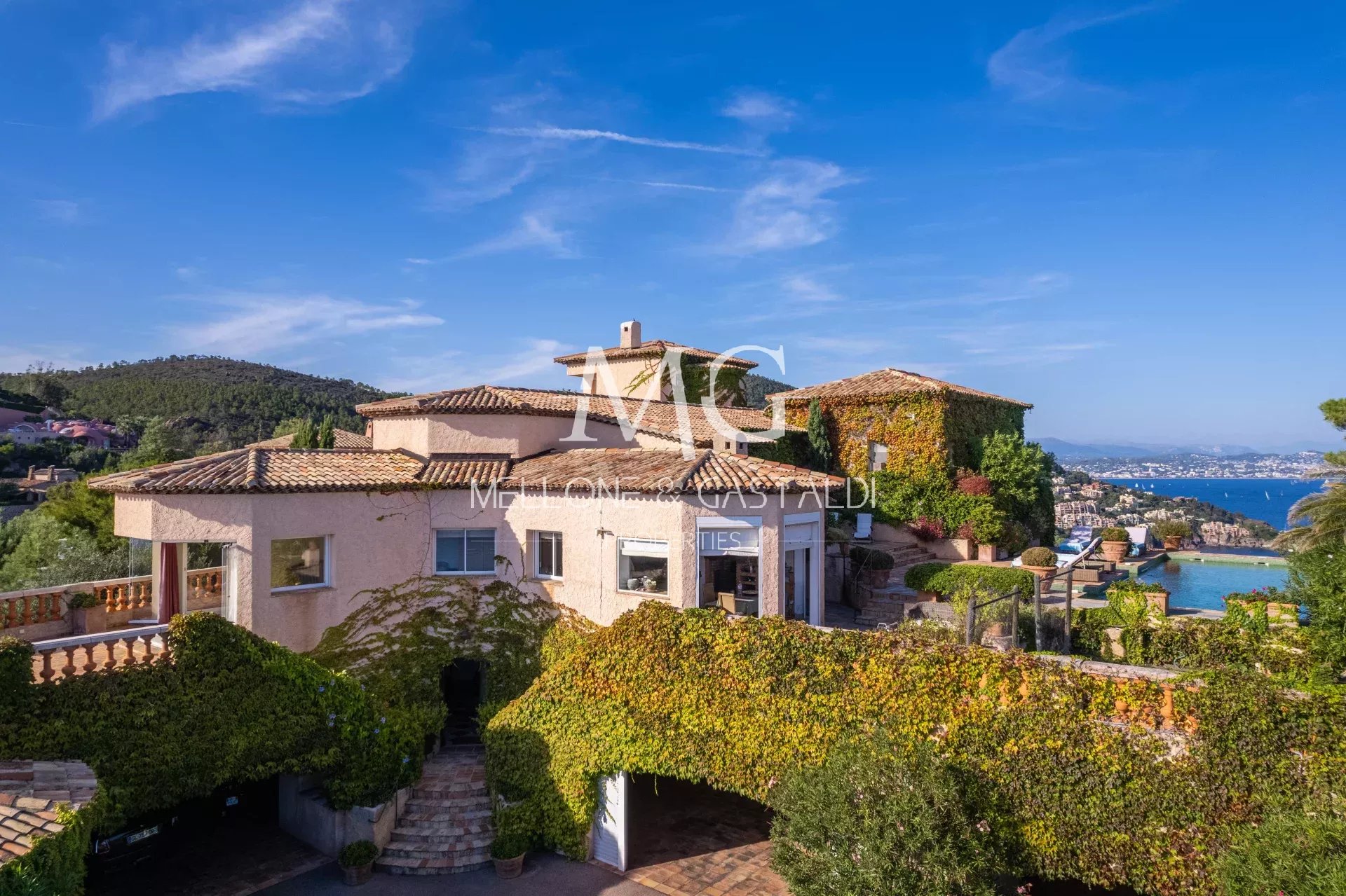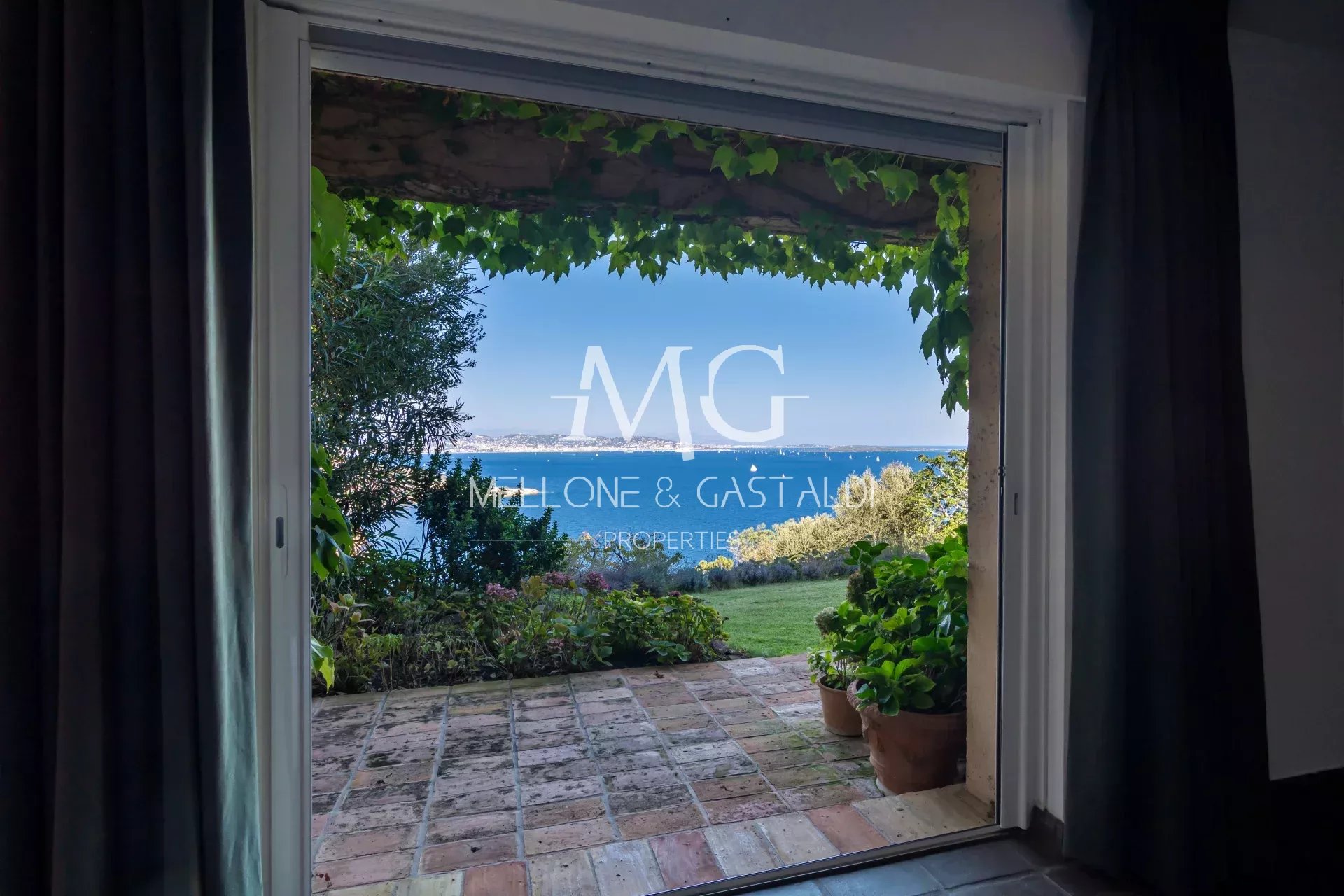 Propriété rare et exceptionnelle à 20 mins de Cannes et quelques mins de la mer, dans un cadre idyllique, magnifique villa de 430m2 édifiée sur un terrain de 3400 m² bénéficiant d'une vue imprenable et panoramique sur la Mer. La villa se compose d'un double séjour avec cheminée donnant sur une terrasse et la piscine chauffée, un espace bureau, un bar, une cuisine aménagée et équipée ainsi qu'une salle à manger ouvrant sur une grande terrasse à l'Ouest. La villa comprend 5 chambres en suite et toutes les pièces bénéficient d'une vue sur la mer. La maison de gardien comprend 2 chambres. Parking couvert pour 4 véhicules, Très rare à la vente, à visiter au plus vite,