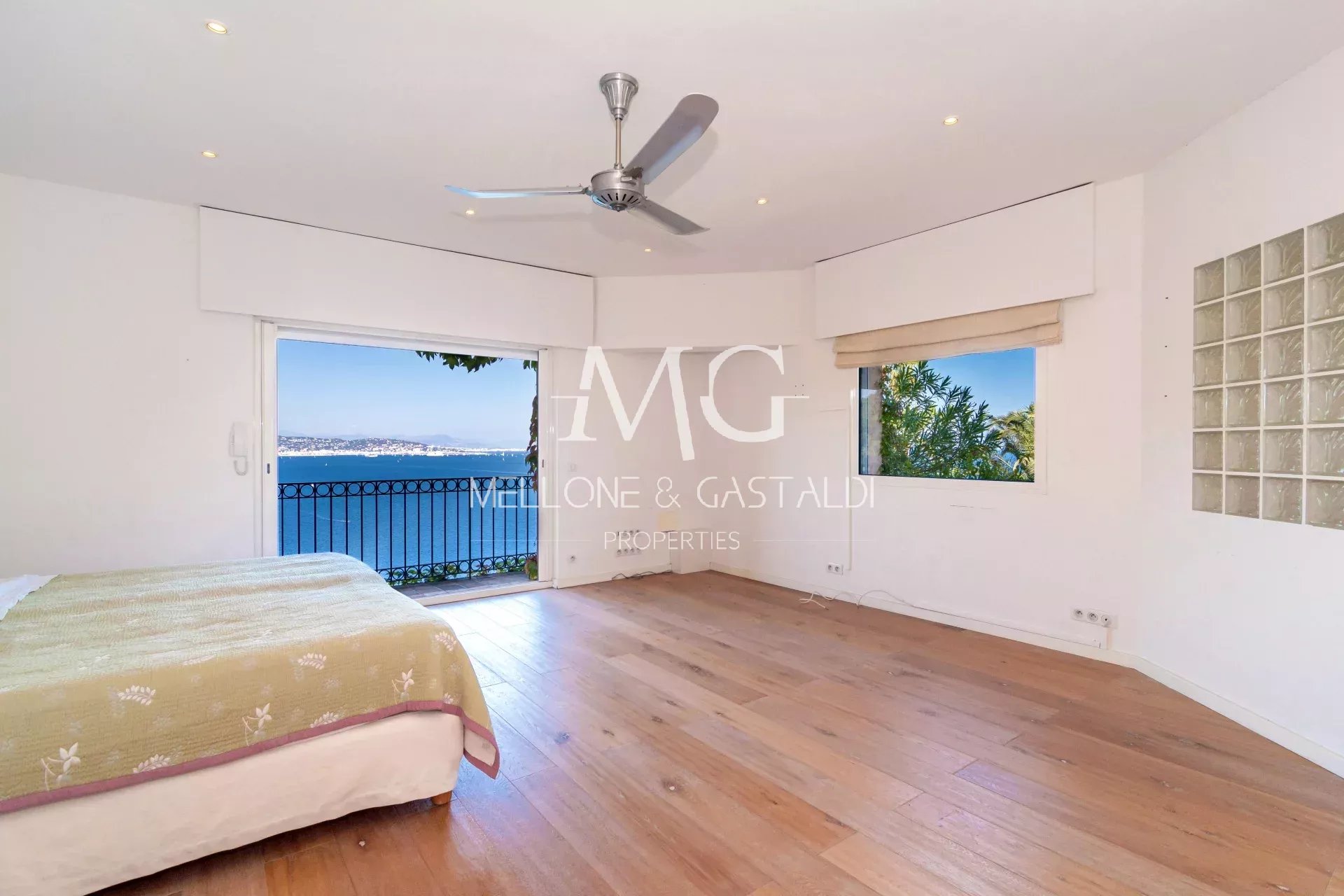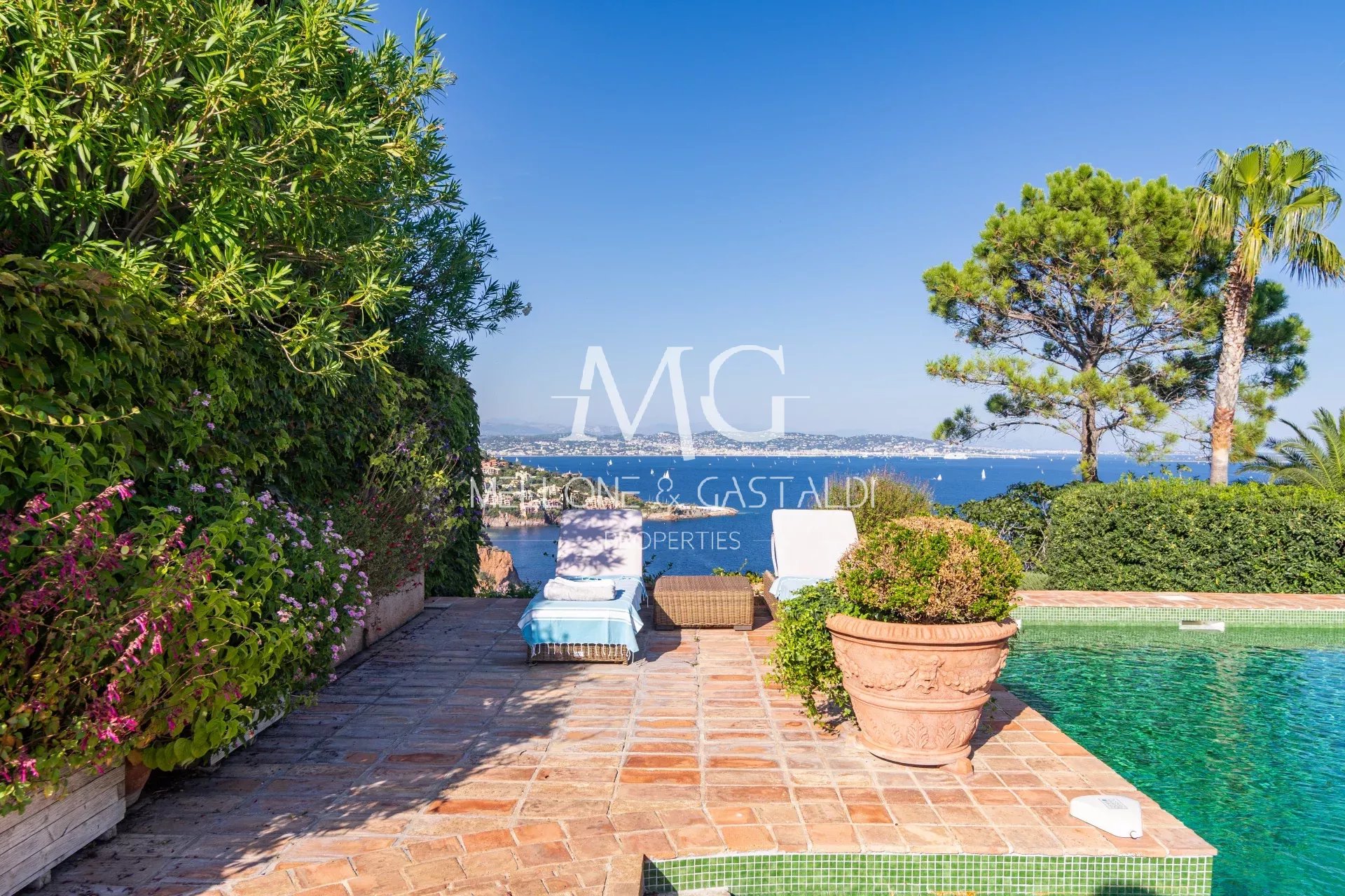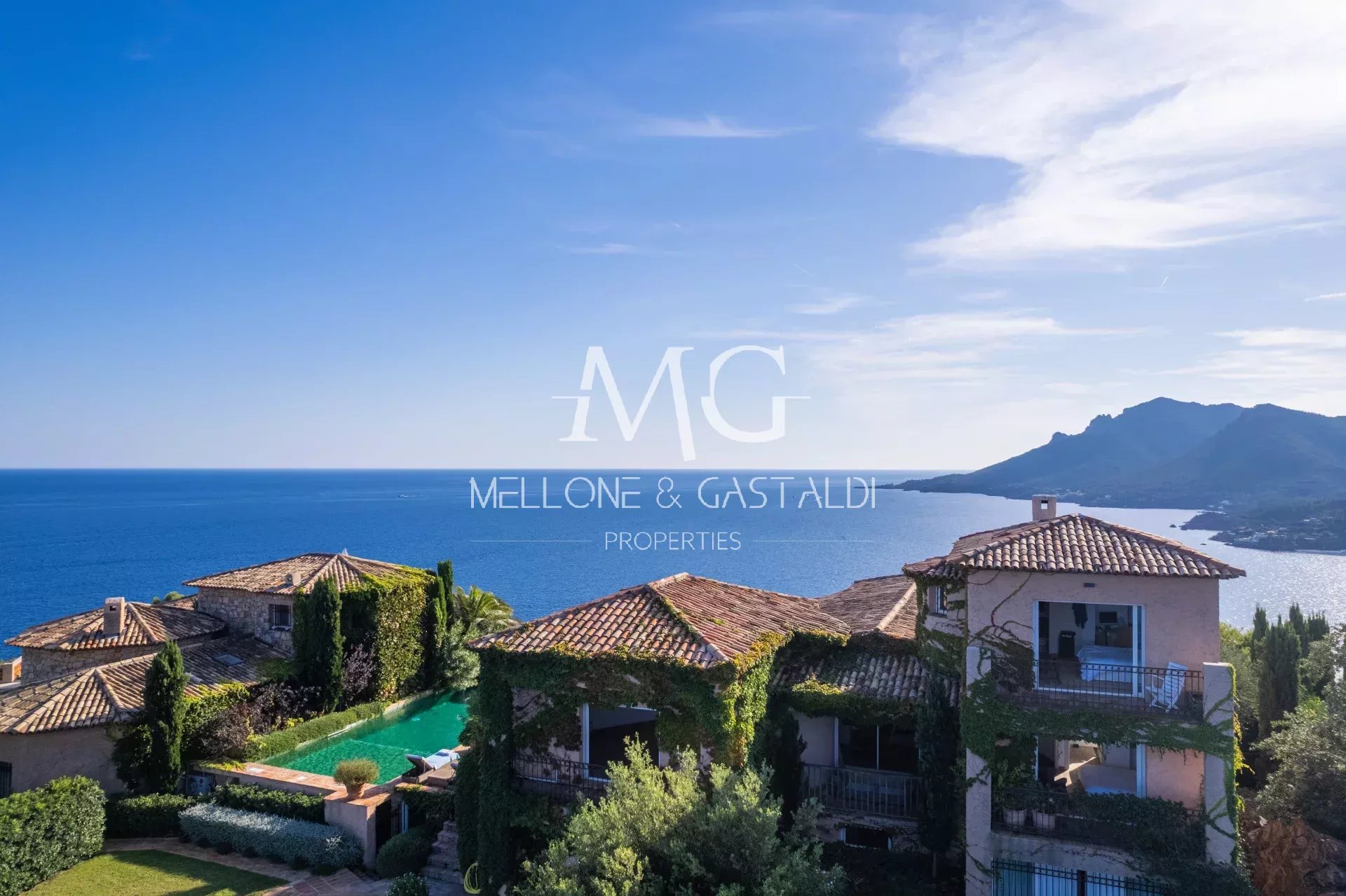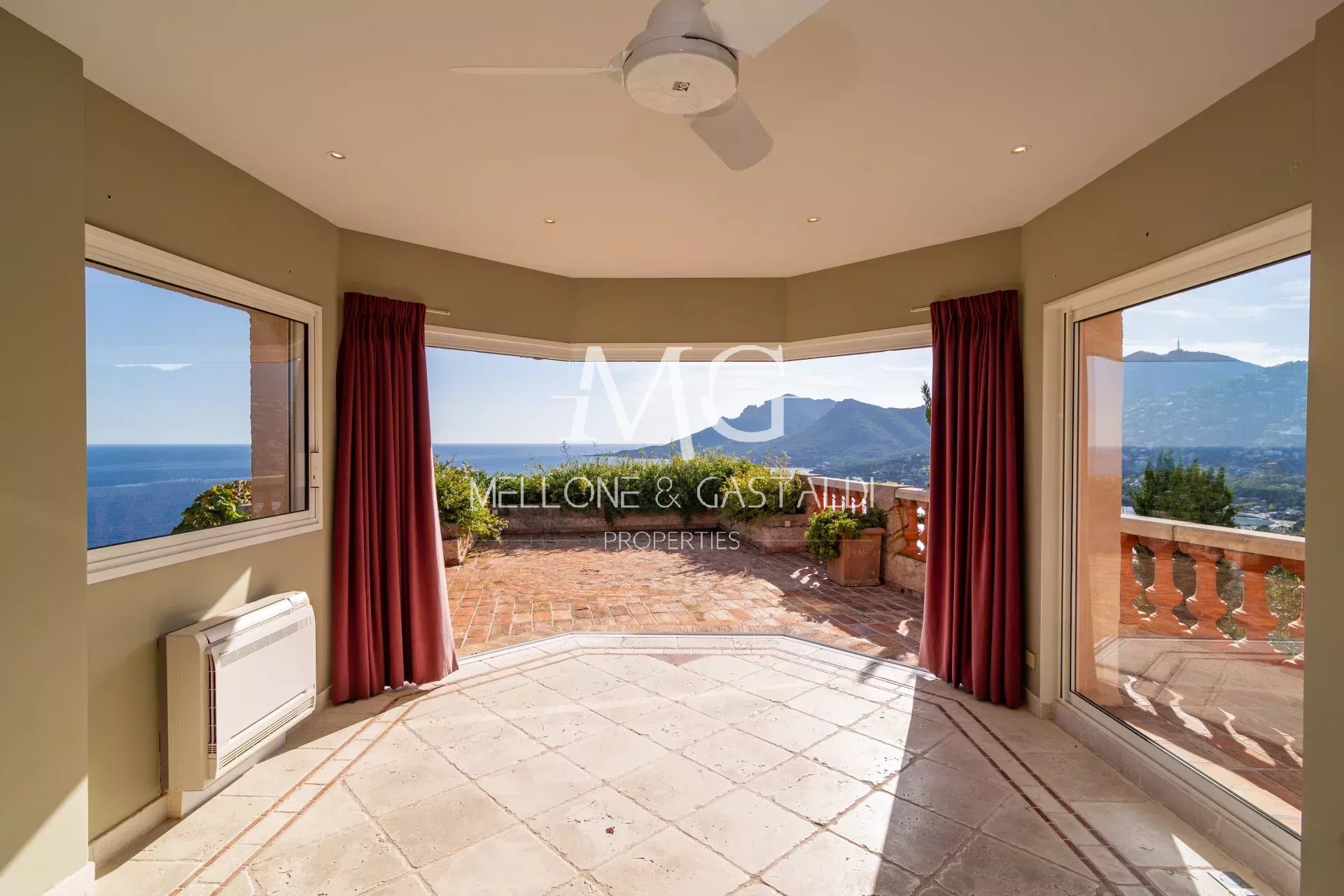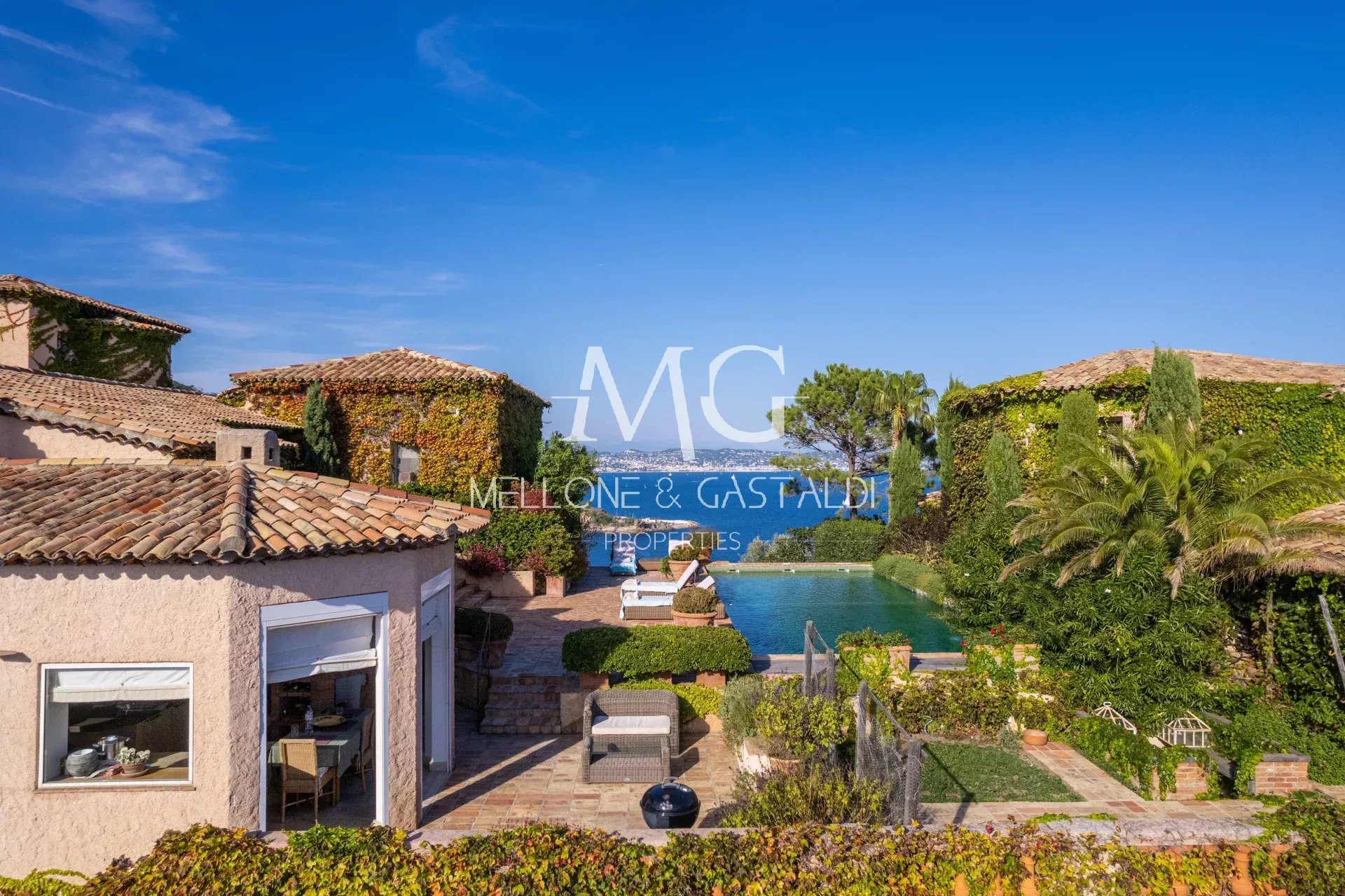 Propriété rare et exceptionnelle à 20 mins de Cannes et quelques mins de la mer, dans un cadre idyllique, magnifique villa de 430m2 édifiée sur un terrain de 3400 m² bénéficiant d'une vue imprenable et panoramique sur la Mer. La villa se compose d'un double séjour avec cheminée donnant sur une terrasse et la piscine chauffée, un espace bureau, un bar, une cuisine aménagée et équipée ainsi qu'une salle à manger ouvrant sur une grande terrasse à l'Ouest. La villa comprend 5 chambres en suite et toutes les pièces bénéficient d'une vue sur la mer. La maison de gardien comprend 2 chambres. Parking couvert pour 4 véhicules, Très rare à la vente, à visiter au plus vite,