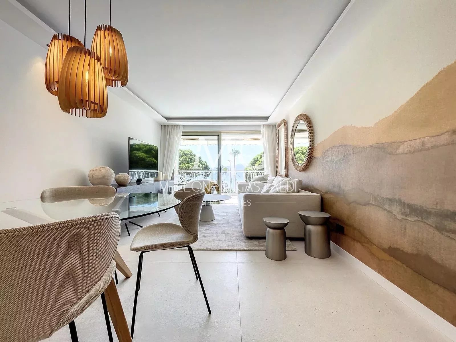 Dans le secteur très recherché et en pleine expansion du Palm Beach-Pointe croisette, au sein d'une copropriété d'excellent standing, magnifique appartement 3 pièces traversant entièrement rénové avec des matériaux contemporains haut de gamme ,belle pièce de vie composée d'une cuisine à l'américaine équipée ,séjour ouvrant sur une terrasse sud-ouest avec vue mer et Esterel. Deux chambres en suite avec douches et dressings, nombreux rangements ,agencement idéal . Produit parfait pour une résidence secondaire et/ou investissement locatif À visiter sans tarder, POSSIBILITÉ LOCATION PLACE DE PARKING