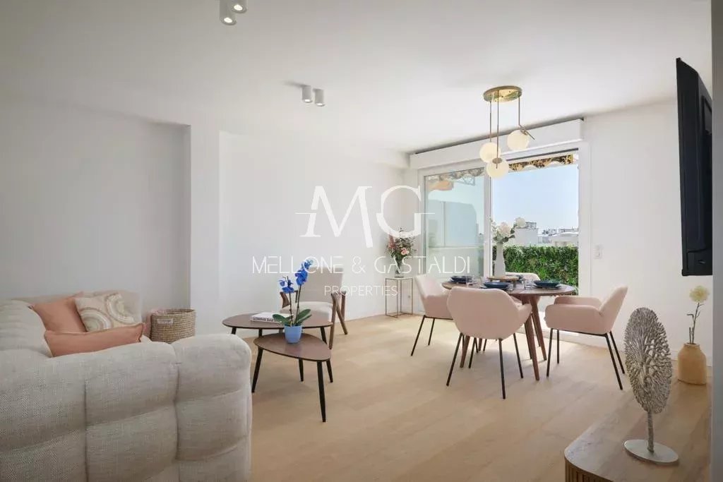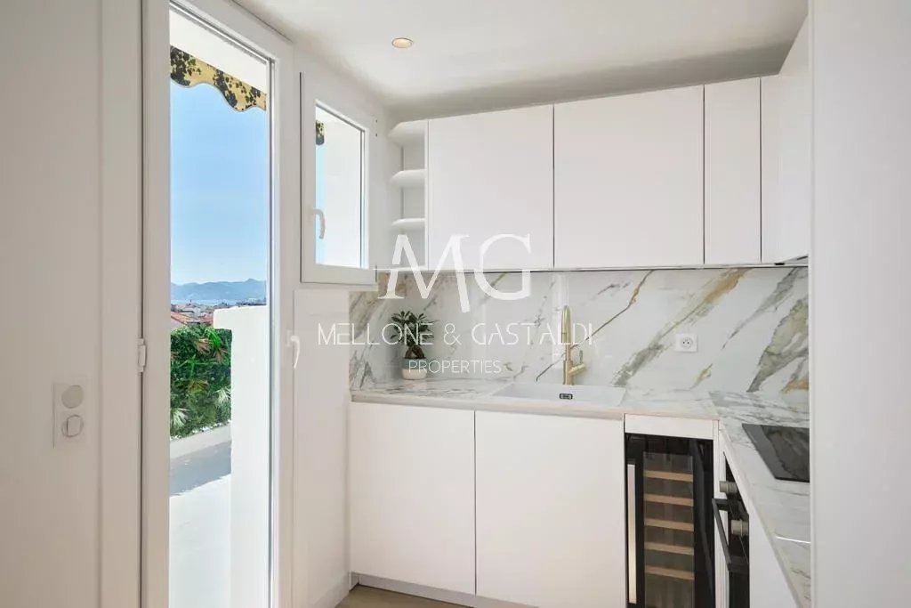 Très rare, hyper centre de Cannes | Banane, à proximité immédiate de la rue d'Antibes et de la plage, magnifique 3 pièces rénové au dernier étage de 71m2 avec terrasse de 30m2 exposée plein Sud et bénéficiant d'une belle vue Mer. Il se compose d'un hall d'entrée avec placard, d'une séjour avec cuisine équipée haut de gamme ouverte donnant sur la spacieuse terrasse de 30 m2, d'une chambre en suite avec dressing, d'un espace bureau et salle de douche, une seconde chambre en suite avec dressing, salle de bain et WC. Un WC indépendant Climatisation réversible gainée Une cave et un garage complètent ce bien rare à la vente à visiter au plus vite, Lien vers la vidéo : https://youtu.be/7C4O-1vJQwo