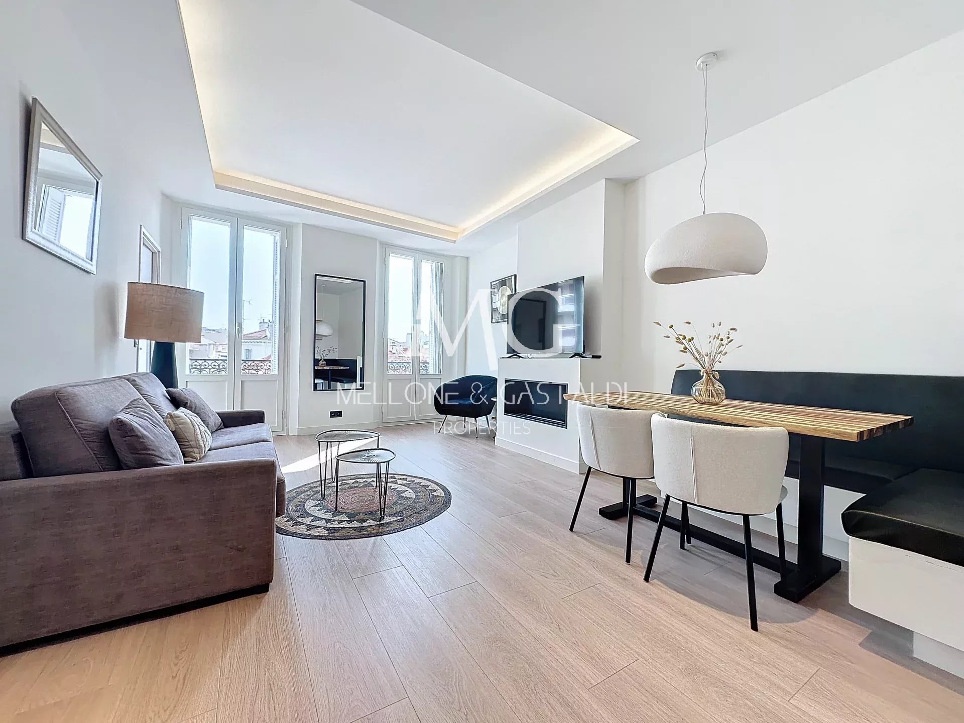 Cannes Banane | rue d'Antibes, au sein d'une résidence bourgeoise avec ascenseur, beau 3 pièces de 54m2 entièrement rénové avec des matériaux haut de gamme bénéficiant d'un balcon avec vue dégagée sur la ville. Une belle cuisine ouverte aménagée et équipée, 2 chambres et une salle d'eau. Forte rentabilité locative de part son emplacement numéro 1, à visiter au plus vite, SC