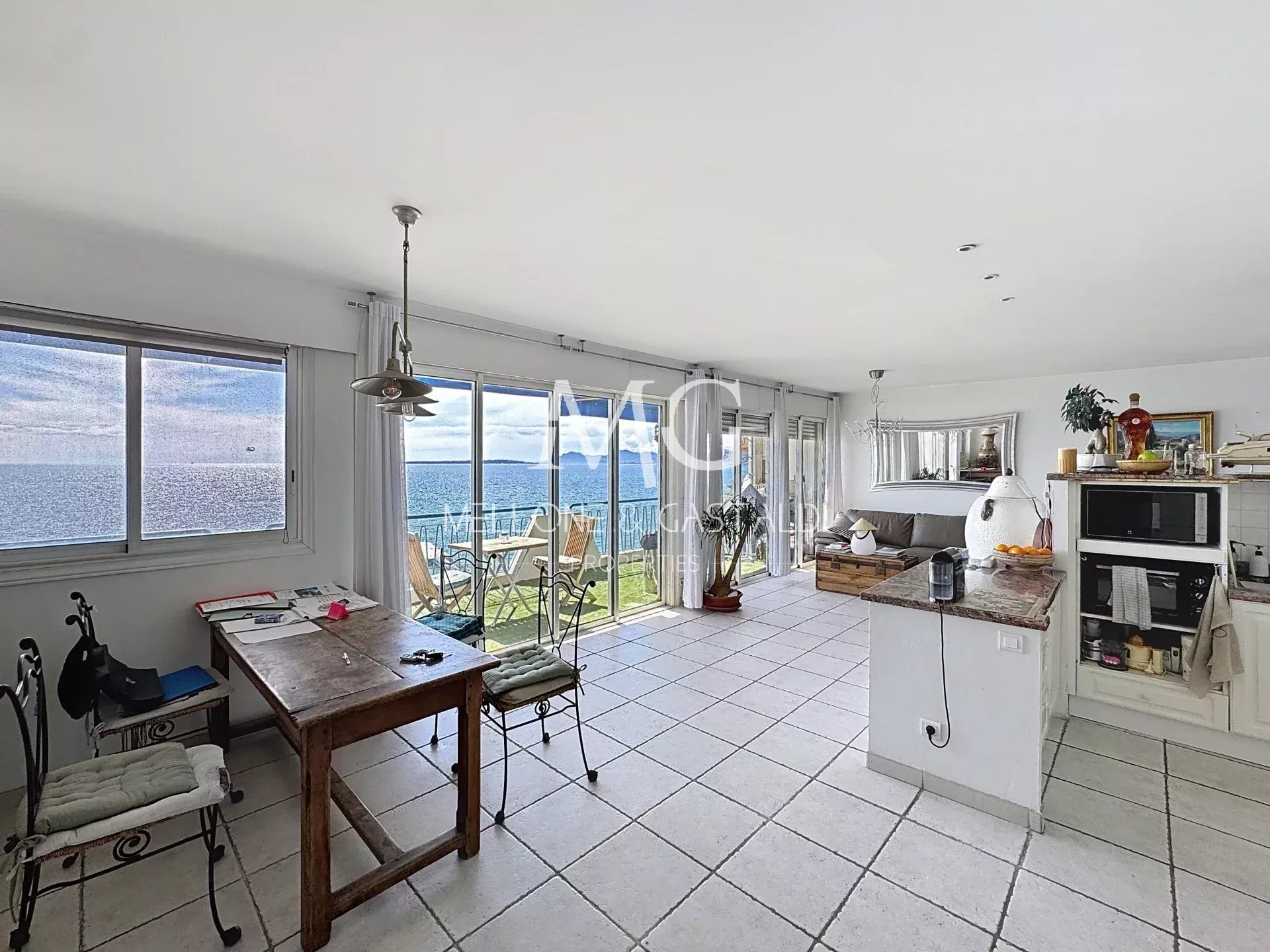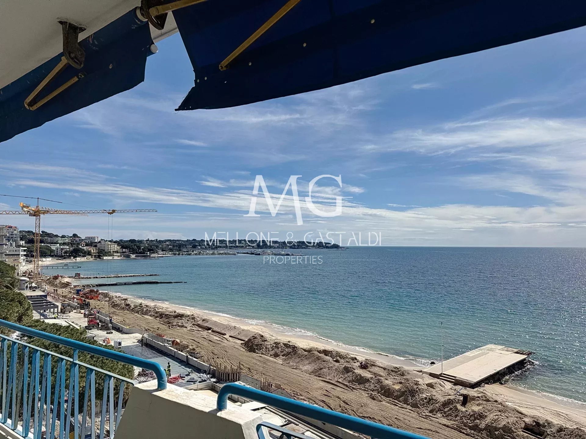 Situé en plein centre de Juan-les-Pins, en front de mer et à proximité des commerces, cet appartement 3 pièces de 89 m² (105 m² habitables) vous séduira par ses volumes généreux, son étage élevé, et surtout sa vue mer à couper le souffle Surface : 89 m² (105 m² habitables) Terrasse : 14 m², parfaite pour profiter des couchers de soleil sur la mer Spacieux séjour lumineux avec cuisine américaine Chambres : 2 grandes chambres Salles de bains : 2 salles de bains modernes Un bien rare sur le marché, idéal pour les amateurs de confort et de vues exceptionnelles
