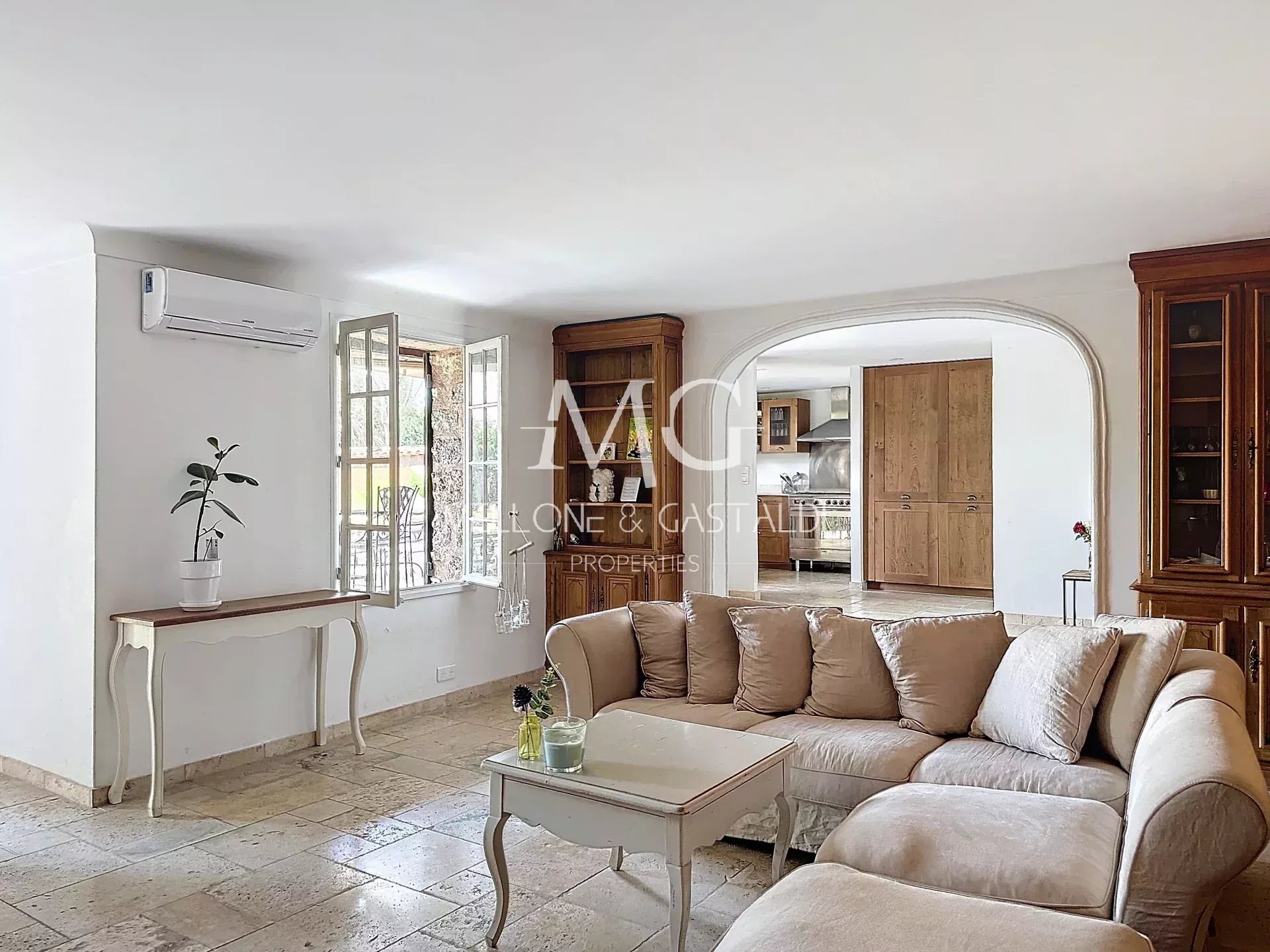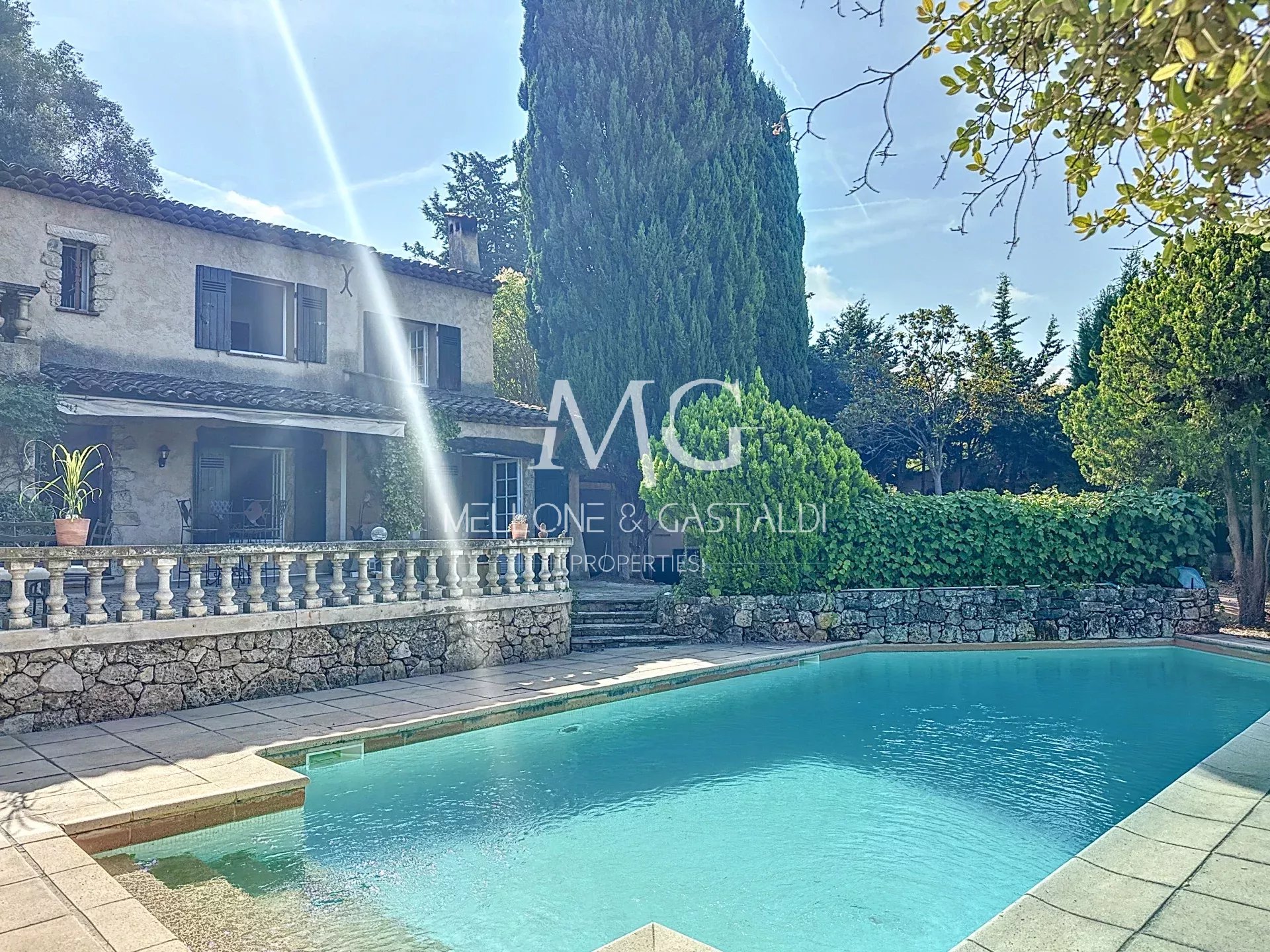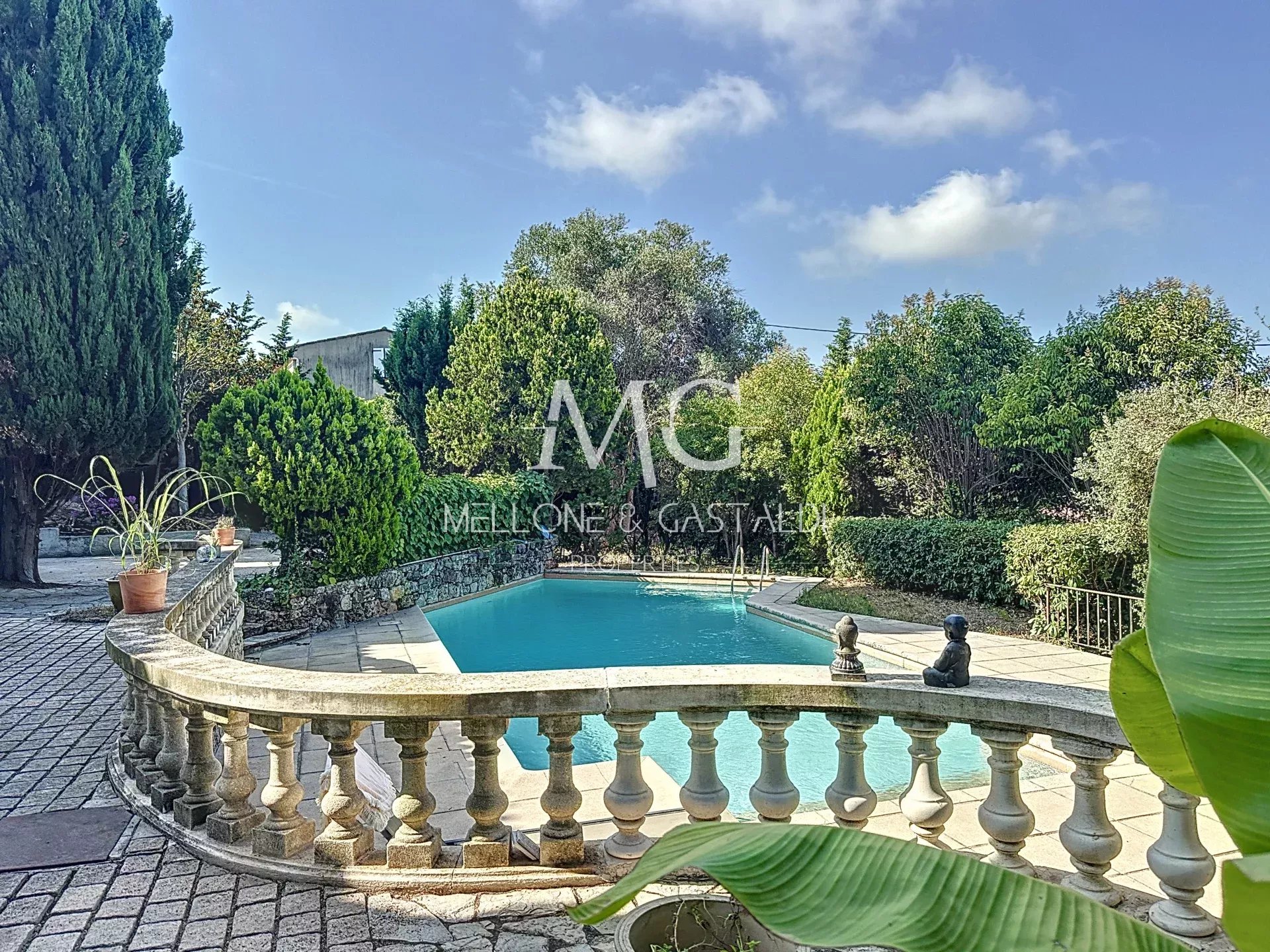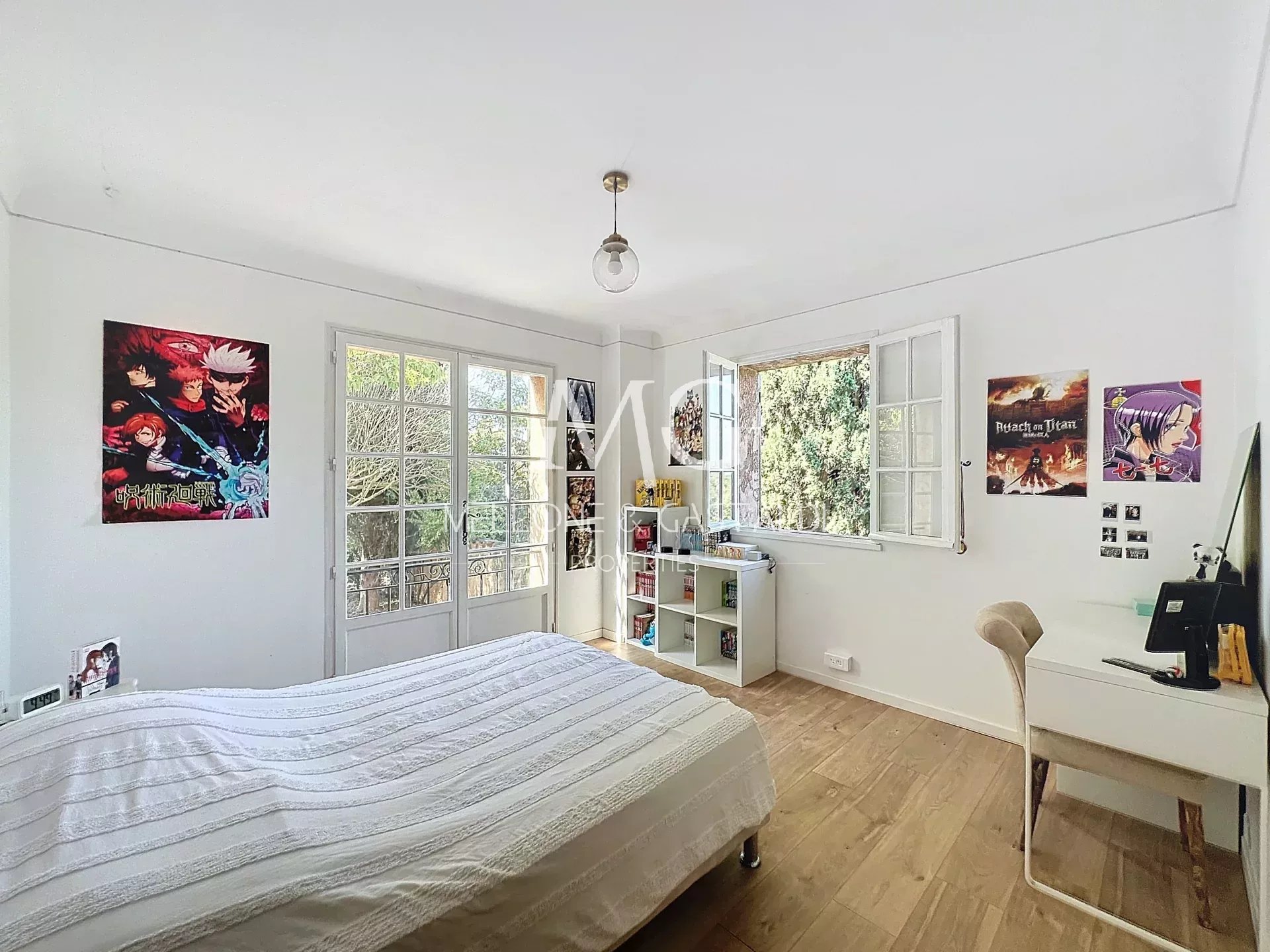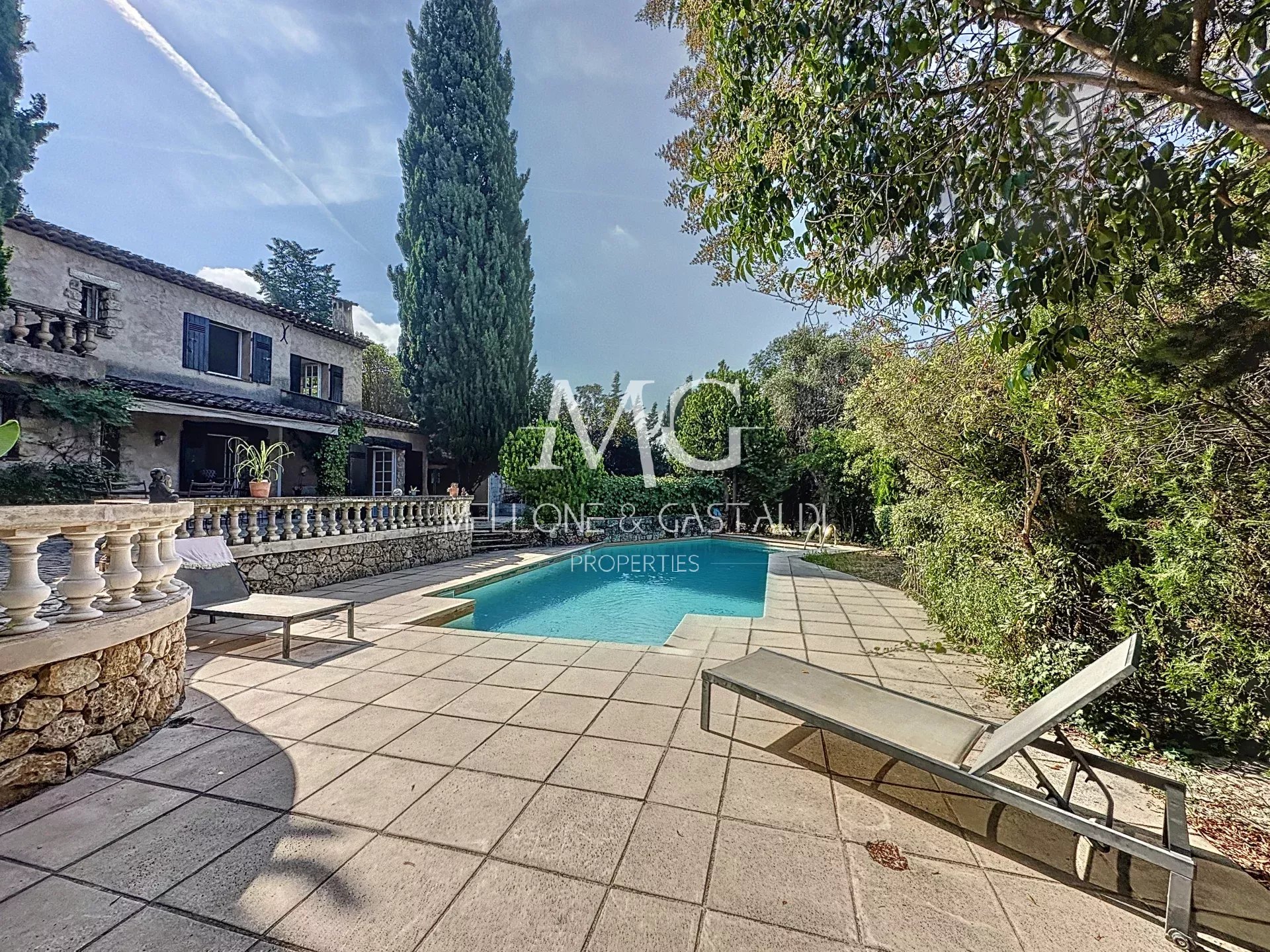 Exclusivité MG Properties Mougins (limite Cannet), maison de 220m2 édifiée sur un terrain de 1500m2 avec Piscine. Elle se compose de 6 pièces / 5 chambres / 2 salles de bains / 3 wc Exposition Sud-Ouest Vue dégagée sans vis à vis Salle de cinéma et salle de jeux Piscine, Pool House et grand jardin SO