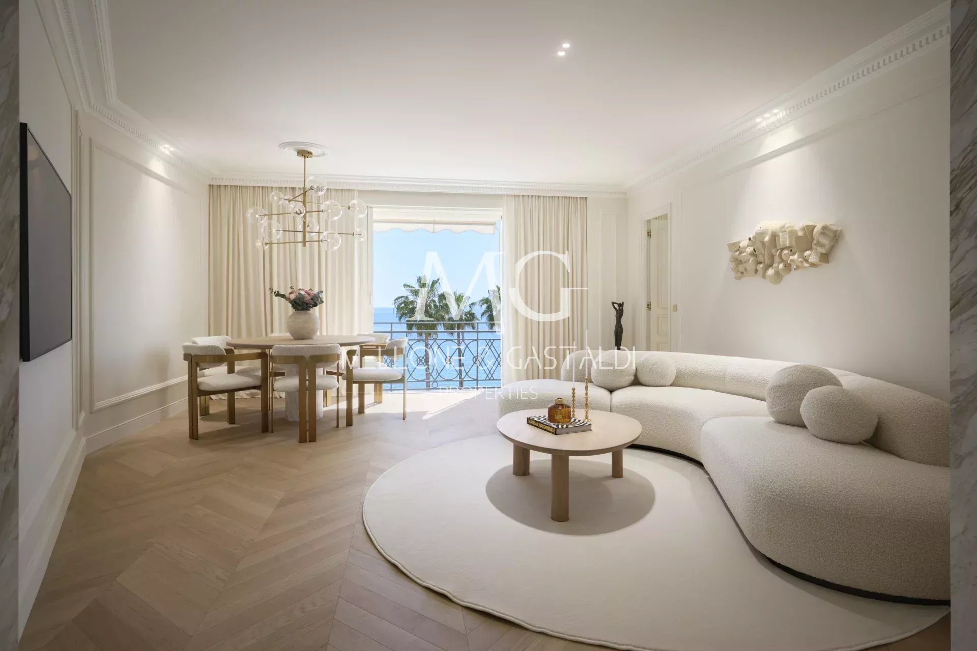 Situé sur la célèbre Croisette, au sein d’une résidence de prestige, ce somptueux appartement de 130 m² entièrement rénové vous séduira par ses prestations haut de gamme et sa vue mer à couper le souffle. En étage élevé, il offre une pièce de vie baignée de lumière avec cuisine ouverte sur un vaste séjour, le tout prolongé par une belle terrasse exposée plein sud. Côté nuit, trois suites élégantes dont une master avec salle de bains et dressing privatif garantissent confort et intimité. Un parking en sous-sol complète ce bien d’exception, rare sur le marché.