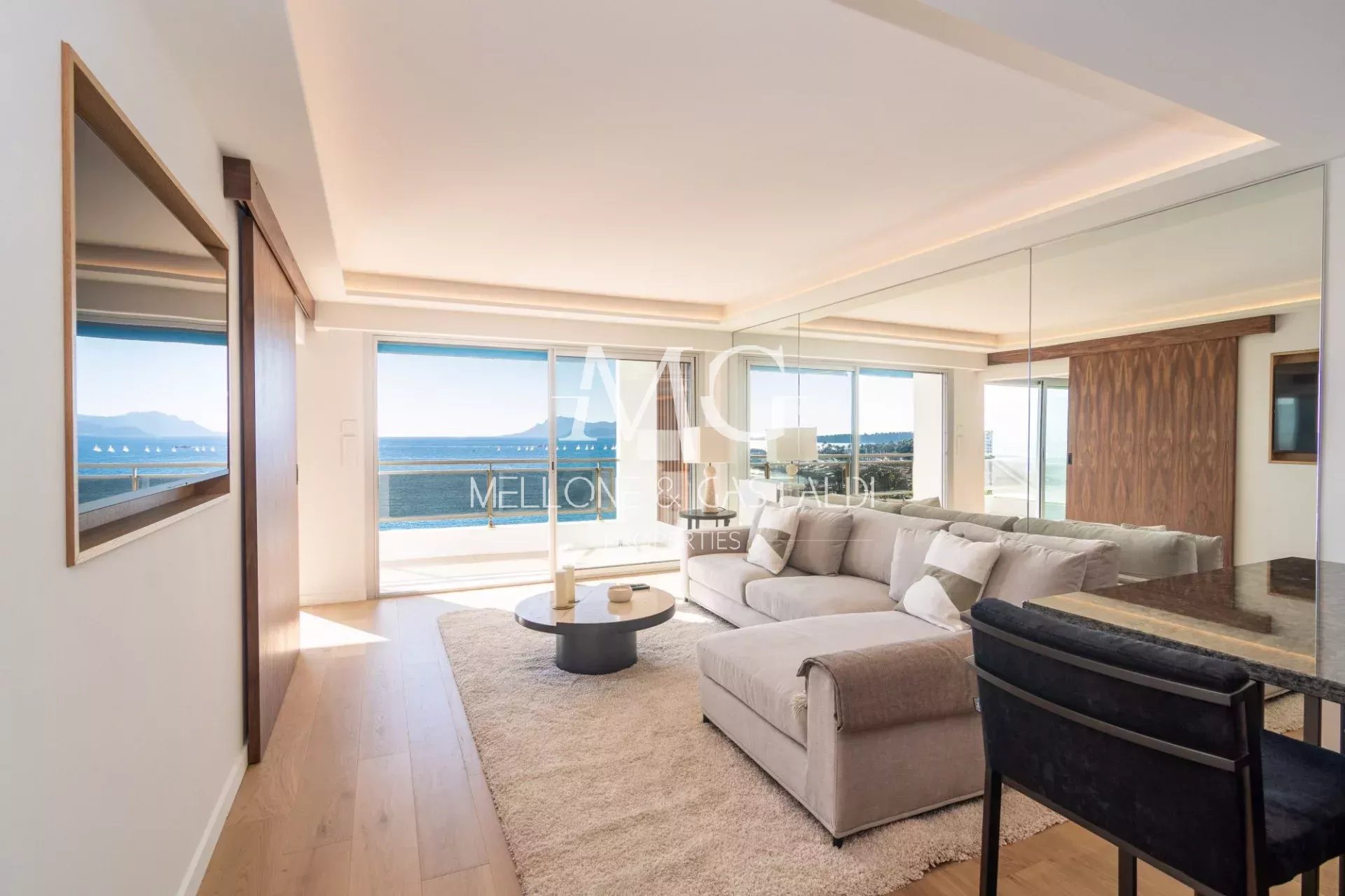 Sur le boulevard de la Croisette, face à la mer et à proximité immédiate de tous les commerces, au sein d'une copropriété de standing avec gardien et à l'avant dernier étage, très beau 3 pièces de 87m2 entièrement rénové avec grande terrasse de 15m2 bénéficiant d'une magnifique vue mer panoramique. Il se compose d'une entrée, d'un grand double séjour donnant sur la terrasse, d'une cuisine ouverte aménagée et équipée, d'une chambre de maître avec sa salle de bains et d'une seconde chambre avec sa salle de douche. 1 cave et 1 garage complètent ce bien, à voir absolument,