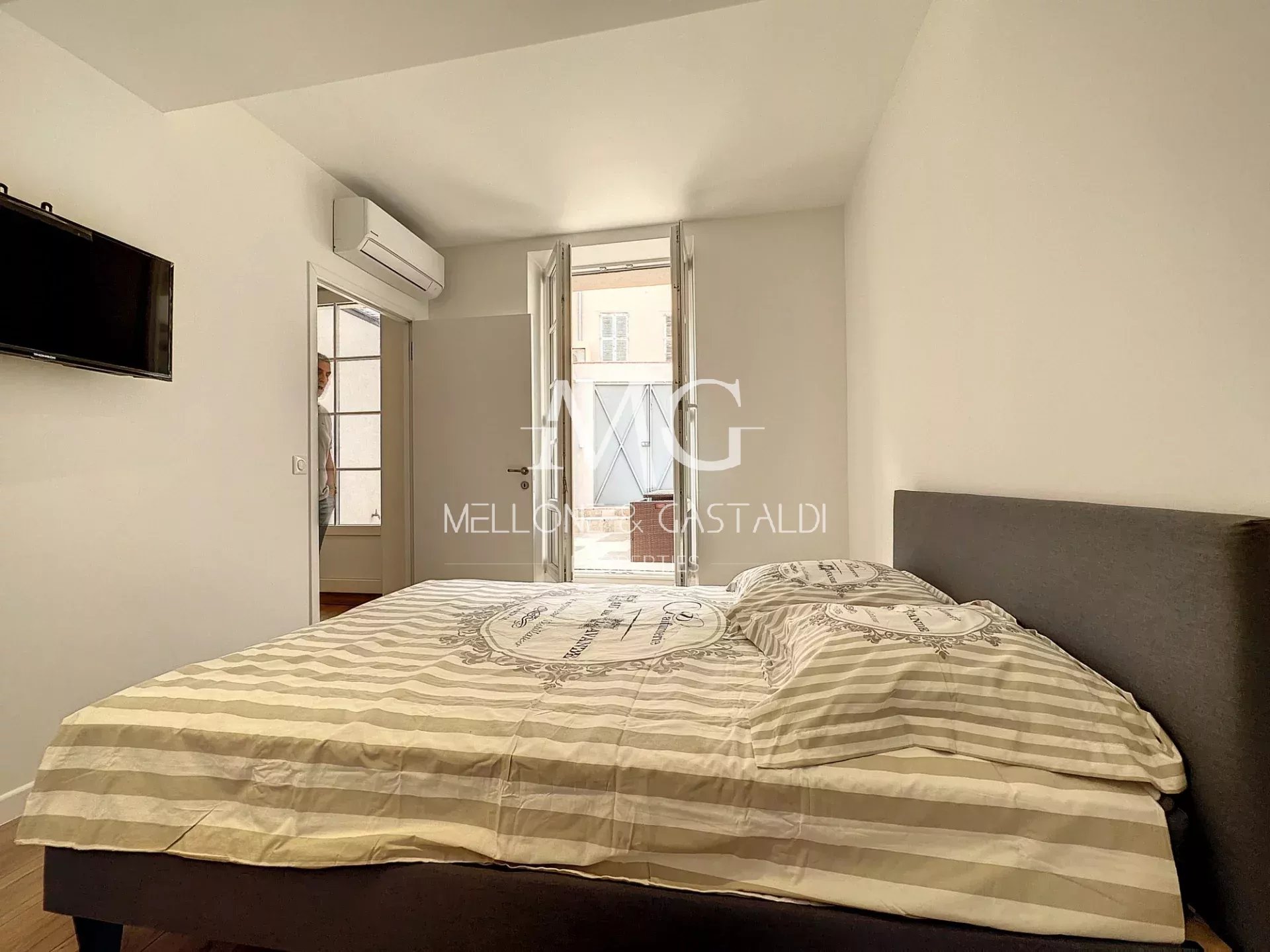 Très rare, quartier historique du Suquet, en plein centre de Cannes, à 3 mins à pied du Palais des Festivals et du Vieux Port, sublime 3 pièces de 50m2 avec terrasse / cour privée de 20m2 Il se compose d’un salon / séjour avec cuisine ouverte aménagée et équipée donnant sur la cour privé / terrasse, de 2 chambres avec dressings, d'1 salle de bains avec wc, d'1 salle de douche + 2nd wc invités. L'appartement est entièrement rénové avec goût et climatisé. Fort potentiel locatif saisonnier, très rare à la vente, à visiter sans tarder,