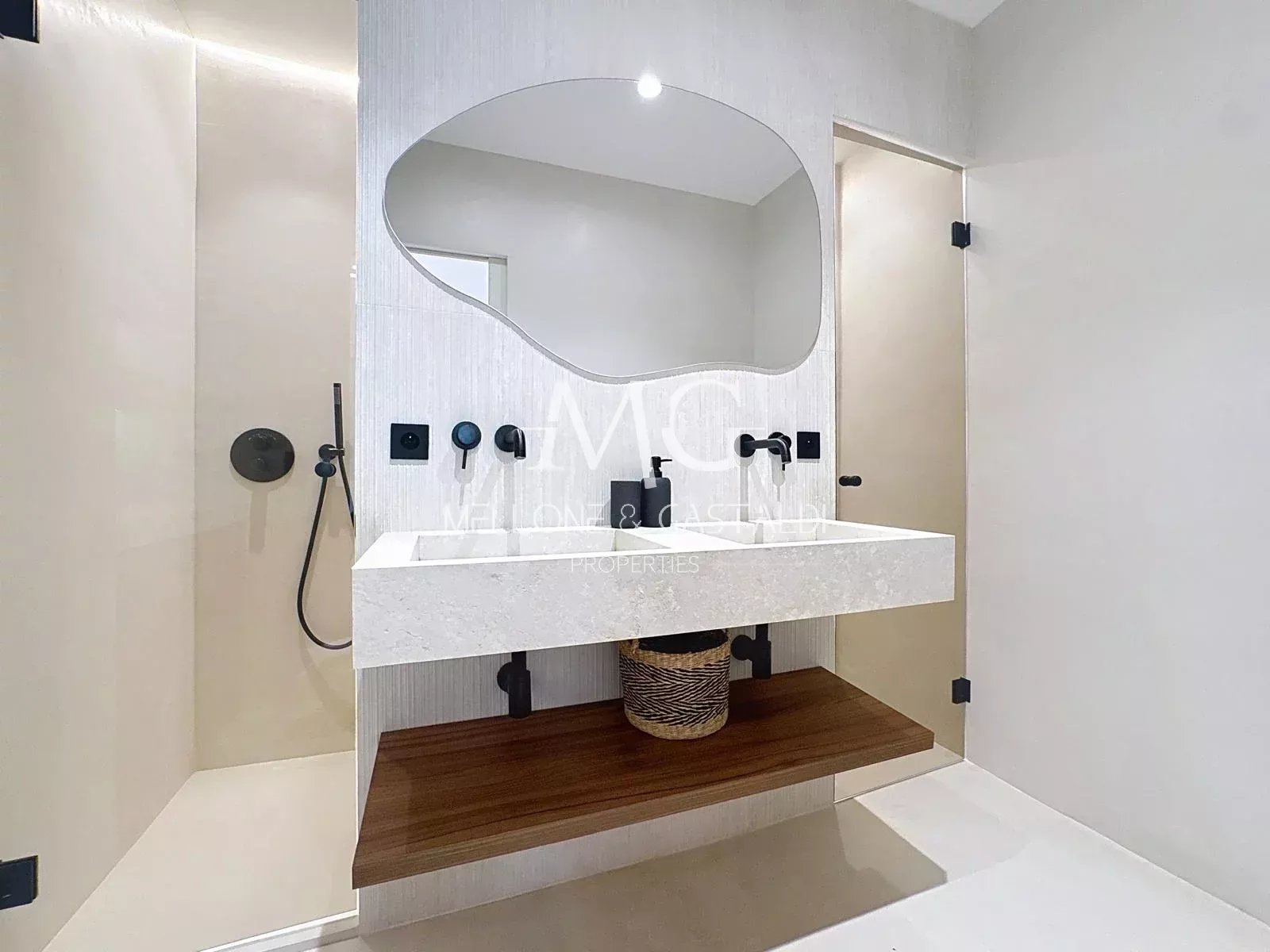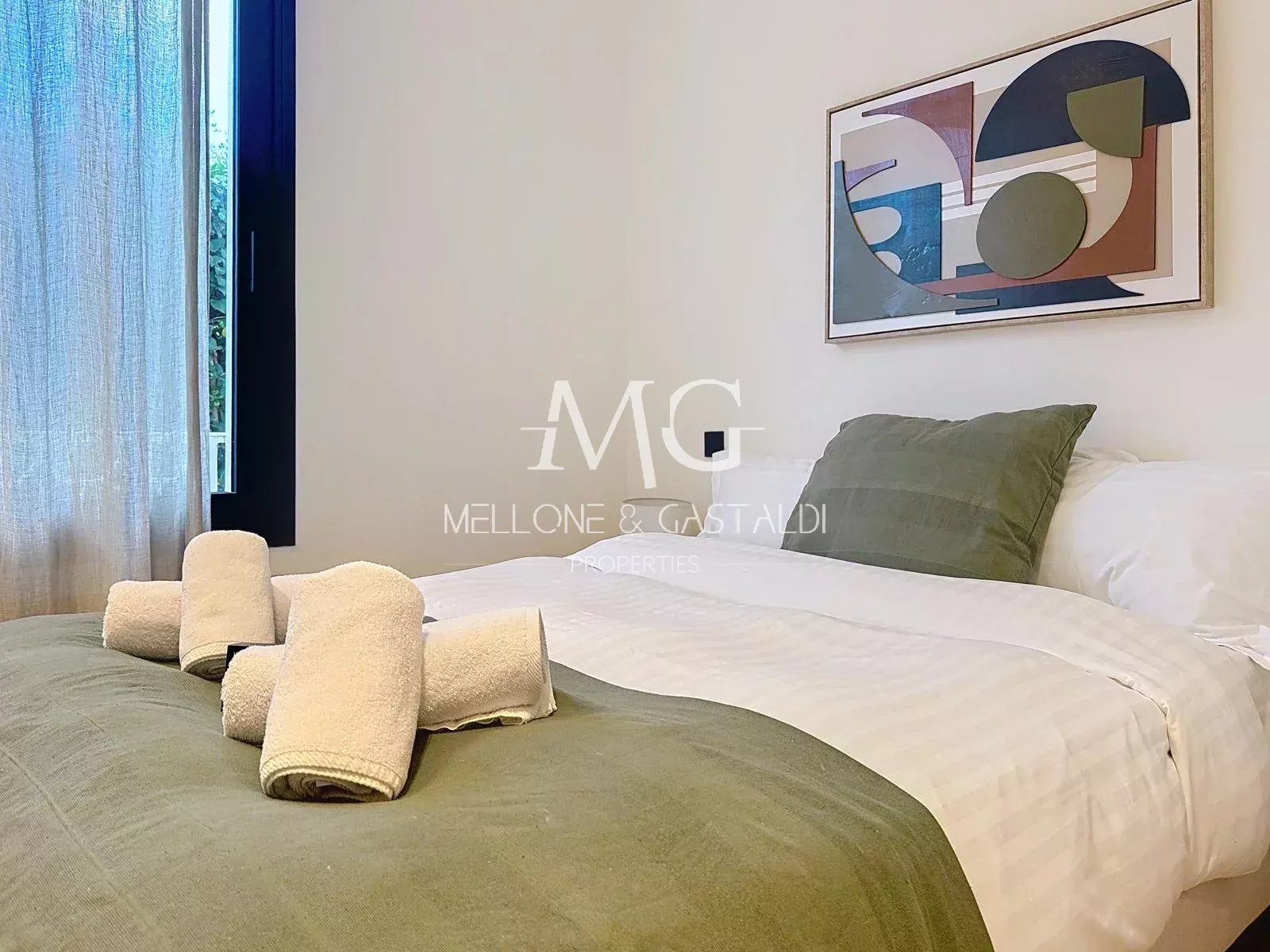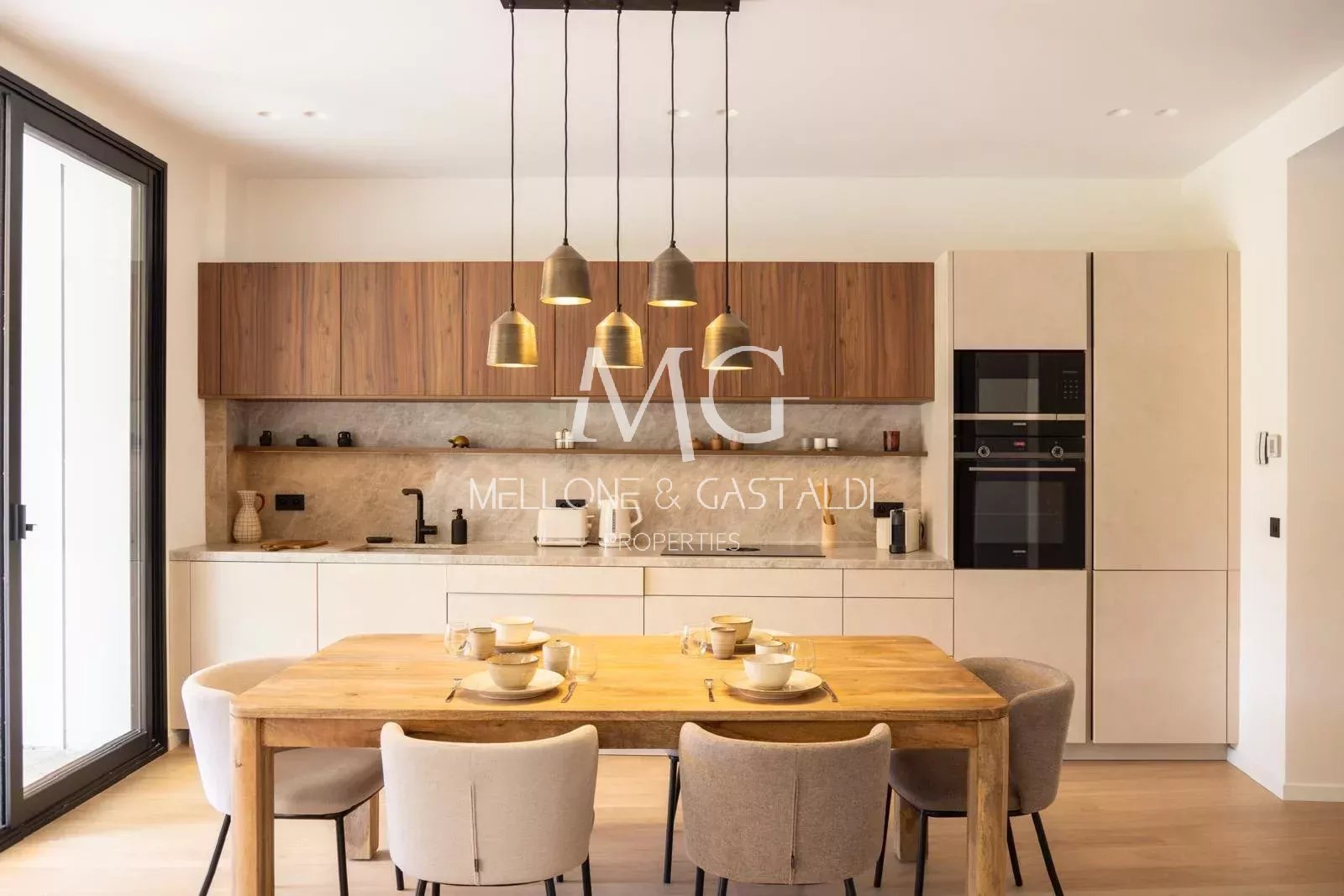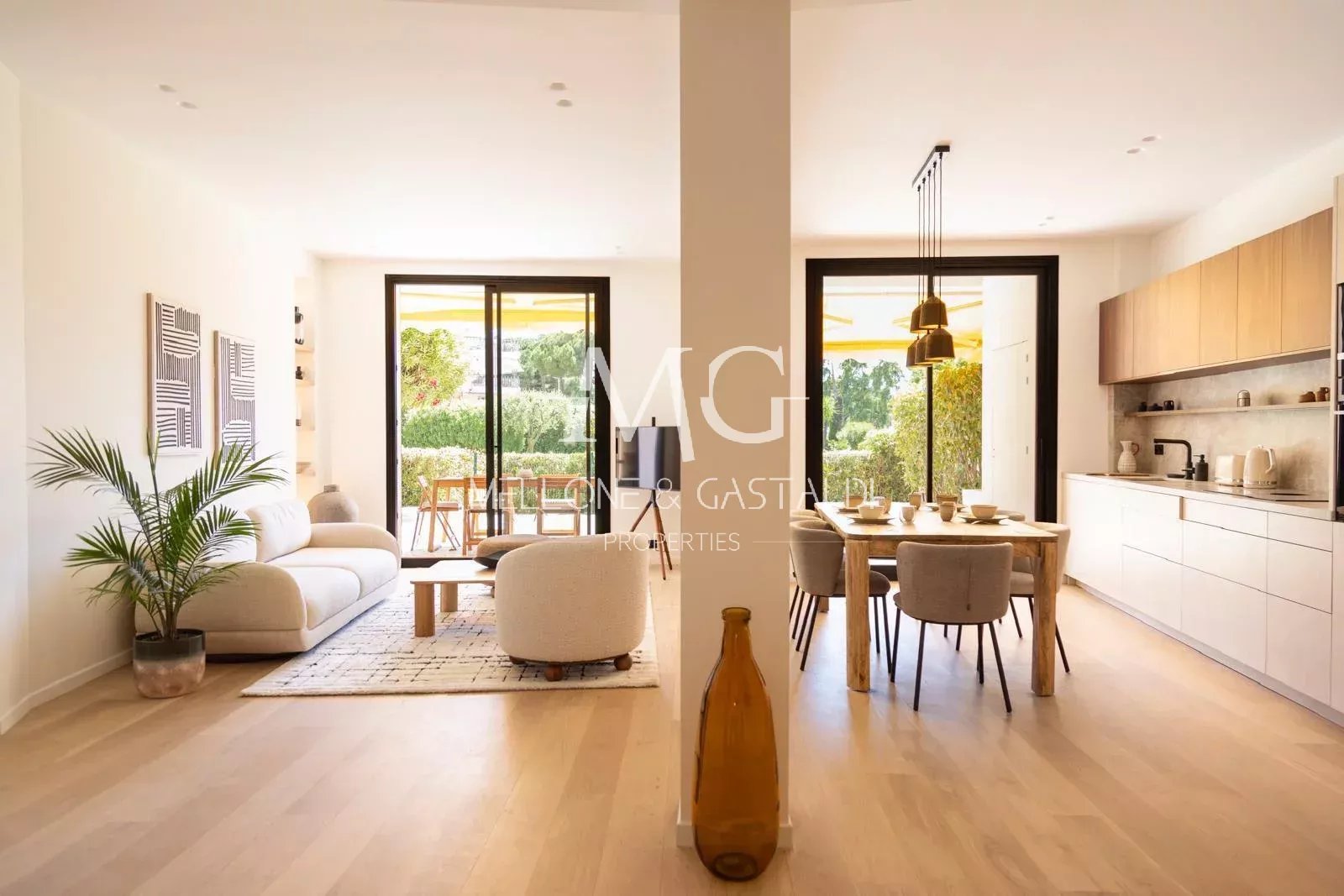 L’appartement se compose d’un vaste séjour lumineux ouvrant de plain-pied sur le jardin, d’une cuisine équipée haut de gamme, ainsi que de trois chambres en suite, dont une chambre de maître avec accès direct à l’extérieur