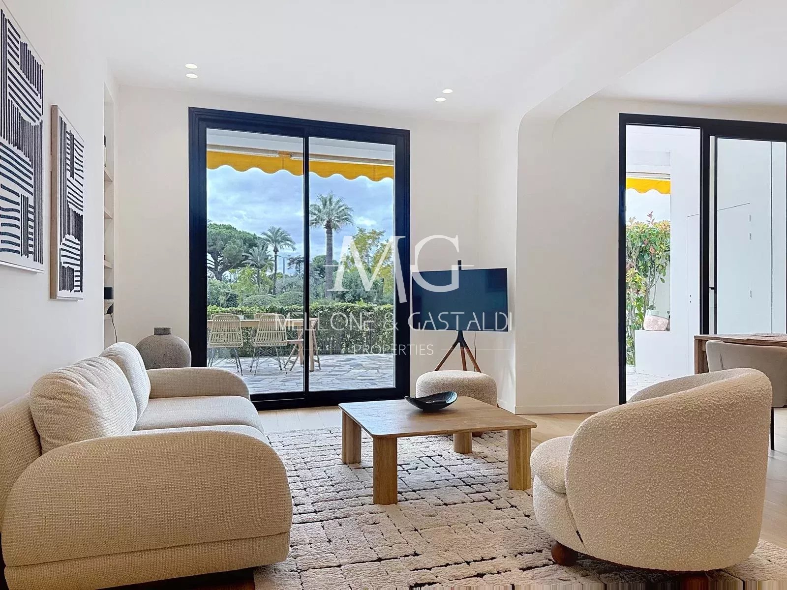 Situé sur la Croisette, face au Port Canto, cet élégant 4 pièces en rez-de-jardin offre le confort d’une véritable maison en plein cœur de Cannes.