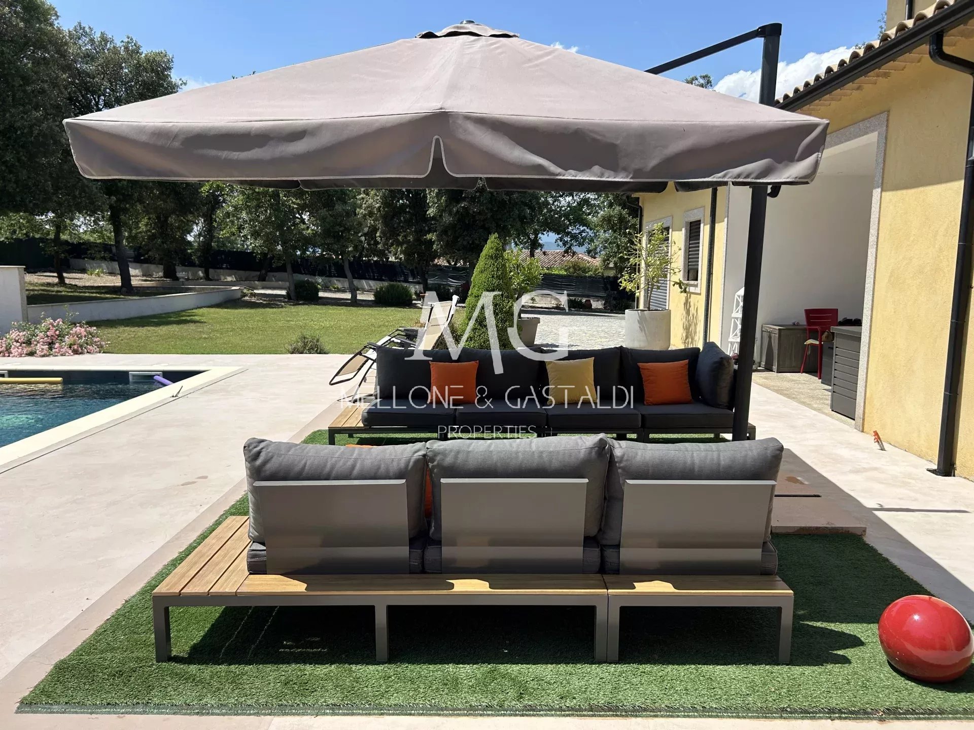 À deux pas du lac de Saint-Cassien – Villa d’exception de 257 m² avec appartement indépendant et prestations haut de gamme Nichée dans un environnement naturel préservé, à proximité immédiate du lac de Saint-Cassien et de l’accès autoroutier, cette superbe villa de 257 m² habitables séduit par ses volumes généreux, son confort moderne et son calme absolu, sans aucun vis-à-vis Au rez-de-chaussée, une belle entrée s’ouvre sur un vaste séjour baigné de lumière, agrémenté d’une cheminée, offrant un espace de vie convivial et chaleureux. La cuisine ouverte, entièrement équipée, s’intègre harmonieusement à l’ensemble, accompagnée d’une buanderie fonctionnelle. Une salle d’eau complète ce niveau À l’étage, vous découvrirez trois chambres en suite, chacune disposant de sa propre salle d’eau et d’un dressing, garantissant à chacun confort et intimité Un appartement indépendant de 50 m² vient compléter ce bien : il se compose d’un séjour, d’une cuisine équipée, d’une chambre avec dressing, d’une salle d’eau, ainsi que d’un accès à une terrasse privative Le tout est édifié sur un magnifique terrain plat de 8 500 m², paysagé et équipé d’un forage. Une piscine parfaitement intégrée au cadre naturel, de belles terrasses et des prestations haut de gamme pilotables par domotique viennent sublimer cette propriété rare