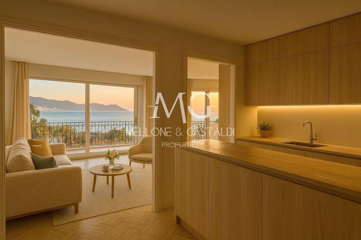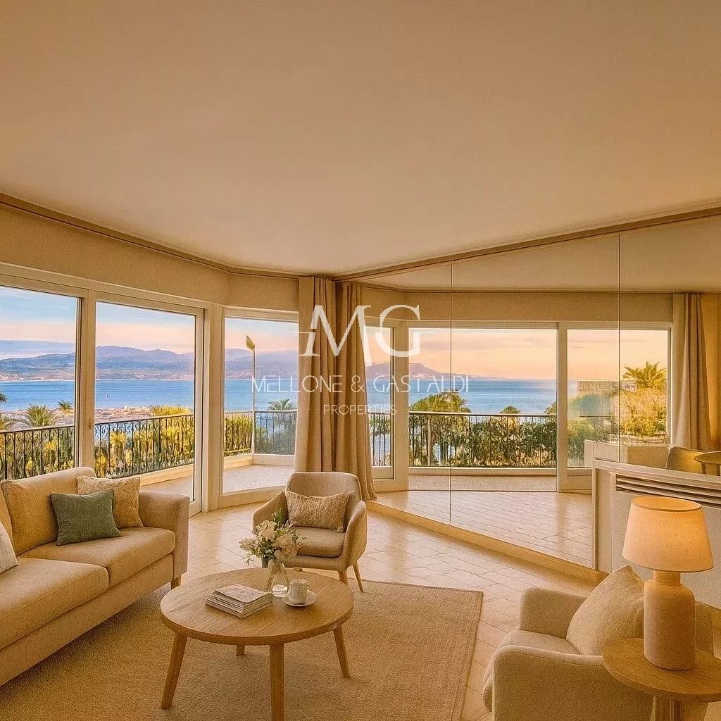 Croisette – Vue Panoramique – Exclusivité En étage élevé d’une résidence de prestige avec gardien, superbe 3 pièces de 74m2 carrez : - Terrasse face mer - 2 chambres | 2 salles de bain À deux pas des commerces et plages Une cave complète ce bien Travaux à prévoir Possibilité chambre de service en sus du prix Une opportunité rare sur la Croisette