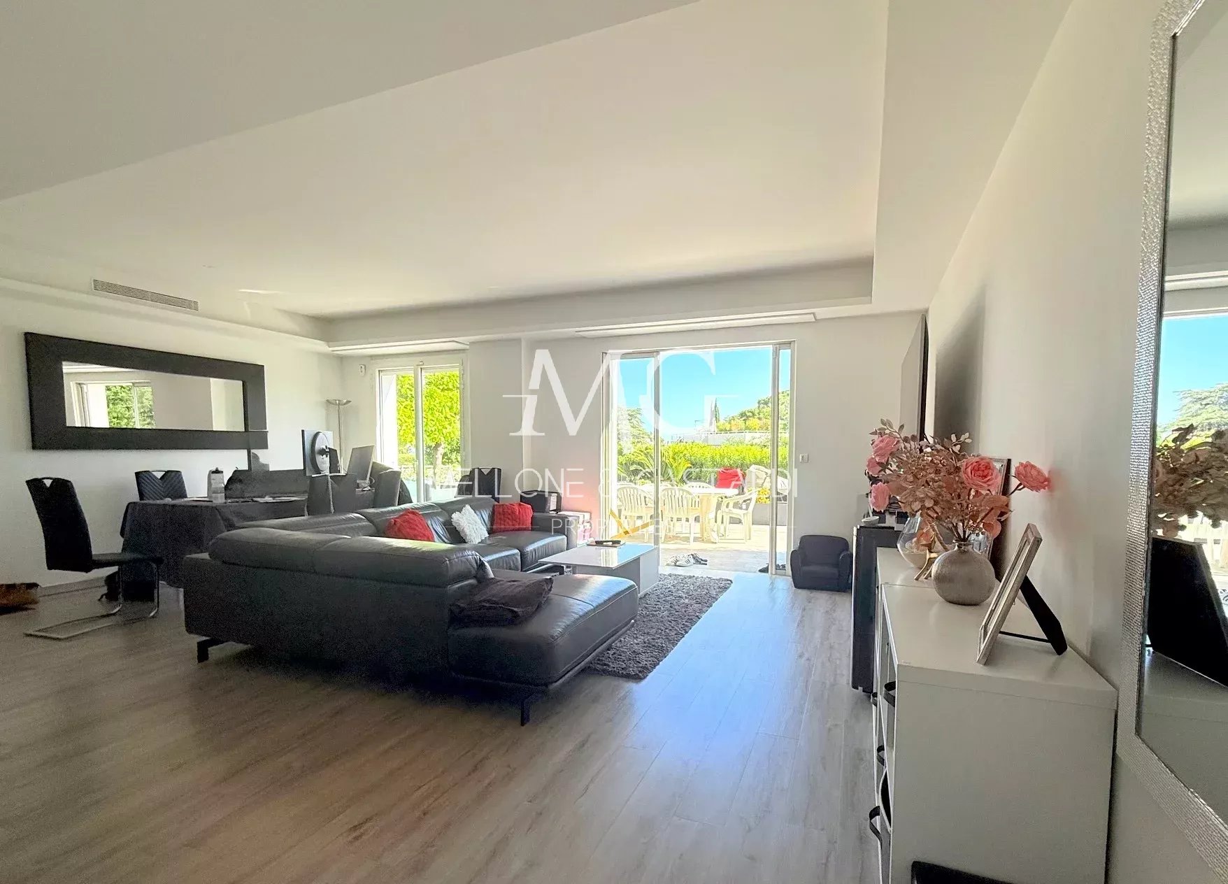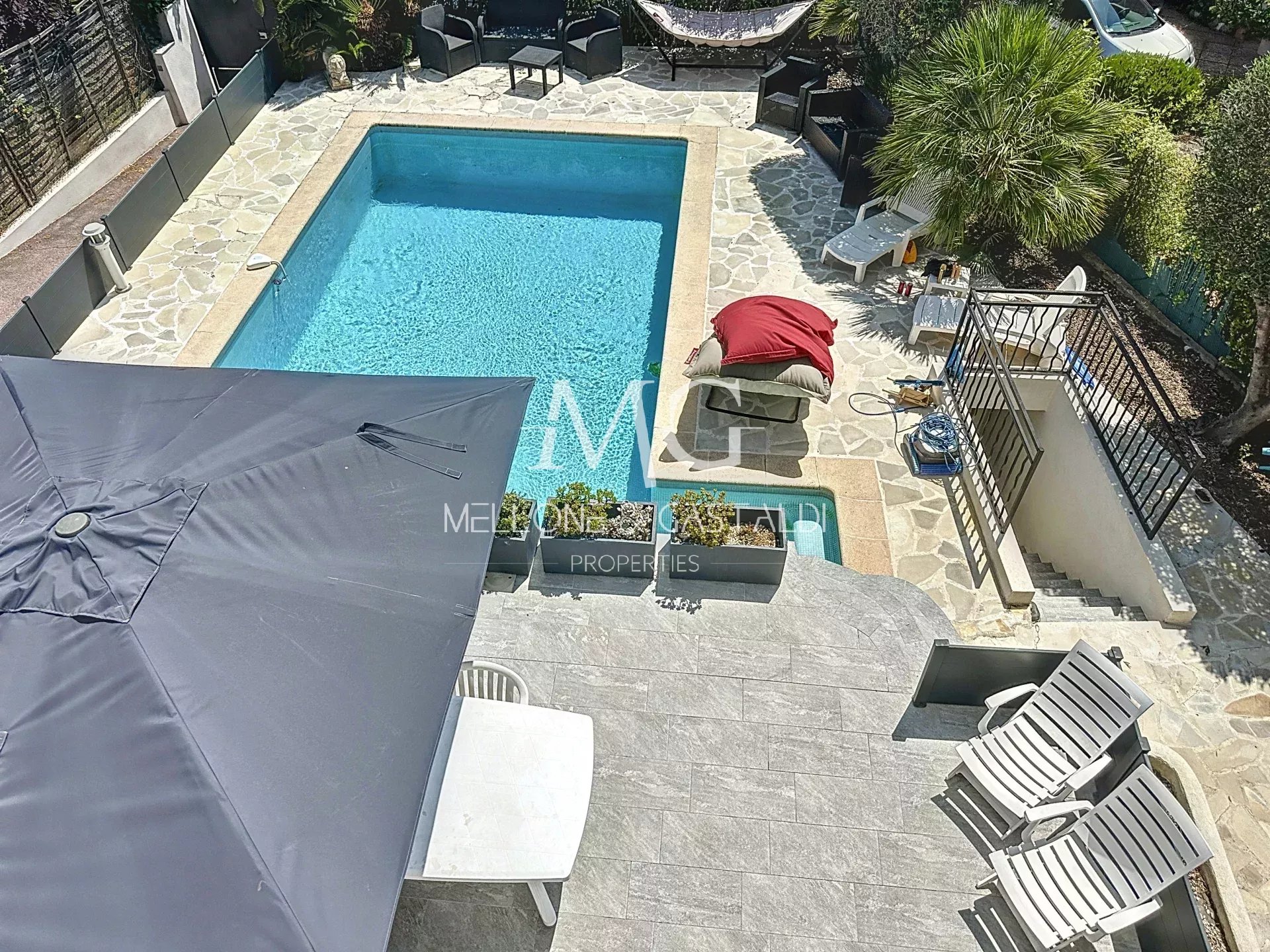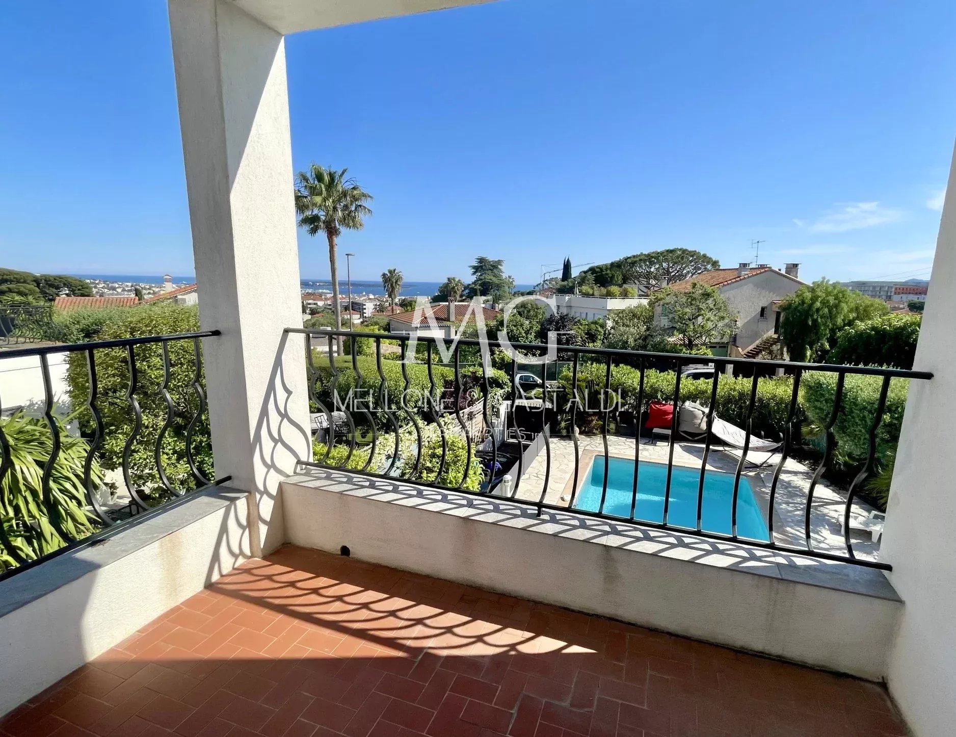 [SOUS OFFRE] Située dans le secteur très recherché du Cannet résidentiel en Haut du Petit Juas, cette villa très lumineuse bénéficie d’un emplacement privilégié en position dominante, offrant un calme absolu et une vue dégagée jusqu’à la mer et les îles de Lérins. Implantée sur un terrain de 540 m² avec piscine, cette maison familiale d’environ 140 m² se développe sur deux niveaux. Au rez-de-chaussée, vous découvrirez un vaste séjour de 40 m² baigné de lumière, ouvrant sur une terrasse exposée plein sud, une cuisine indépendante de 11 m², ainsi qu’une suite parentale de 20 m² avec dressing. Une salle de bains avec douche et WC complète ce niveau. À l’étage, trois grandes chambres de 11 m², 14 m² et 17 m² – dont deux avec balcon – viennent prolonger l’espace nuit. Une seconde salle de bains et un WC indépendant y sont également aménagés. La villa bénéficie d’un garage/atelier de 20 m², de plusieurs places de stationnement, de la climatisation gainable, de volets roulants électriques, ainsi que de fenêtres en double vitrage. La façade a été récemment ravalée. Les combles aménageables, déjà pourvus d’une dalle en béton, offrent un potentiel d’extension particulièrement intéressant. Quelques travaux de finition sont à prévoir pour sublimer ce bien à fort potentiel. VD