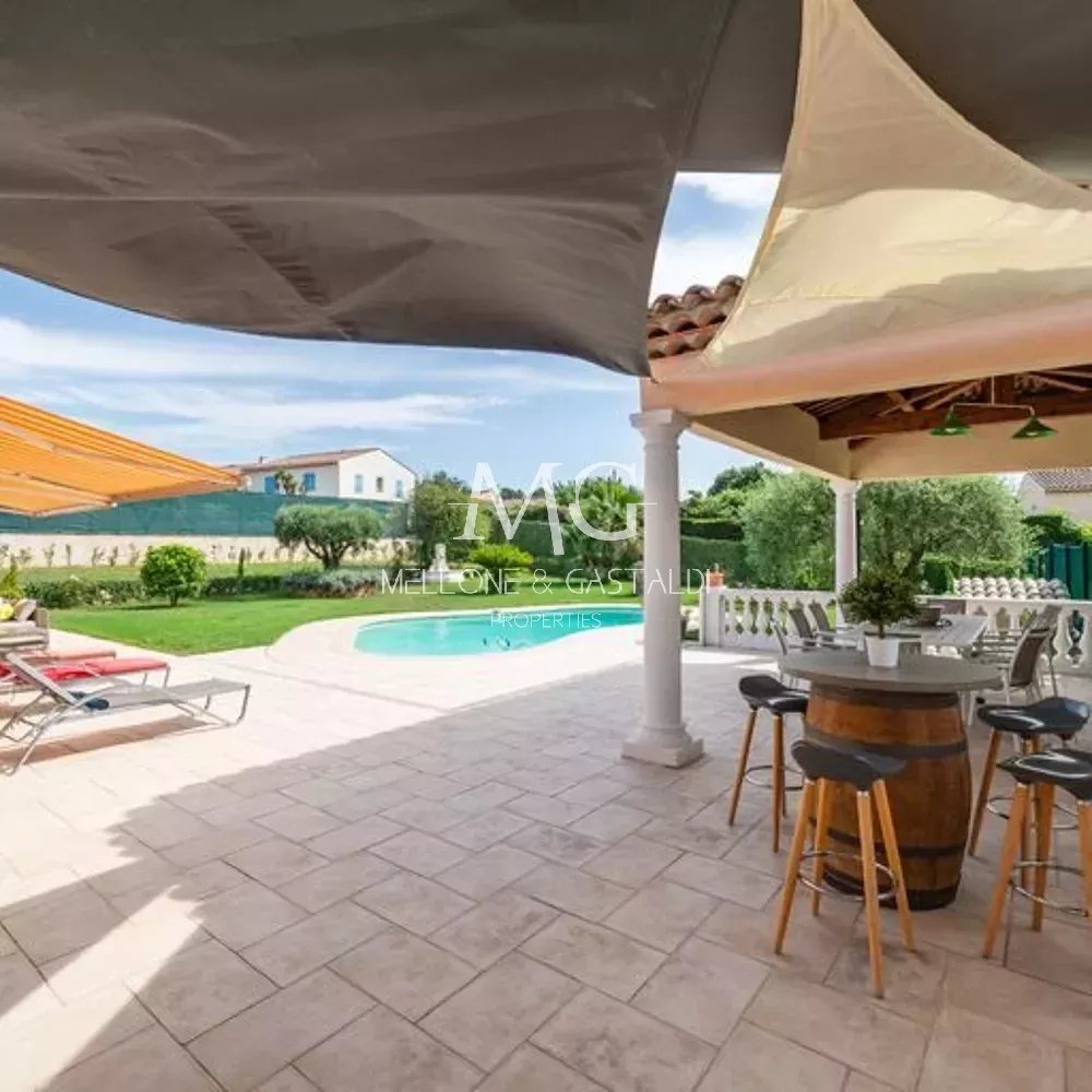 Belle propriété 270 m² + 2 pièces neuf indépendant + salle de jeu, billard, salon, bar. La villa : 4 chambres, 2 s.de bain, 3 wc. Grand salon séjour + cheminée insert. Grande Cuisine équipée + arrière cuisine. Garage de plain pieds de 100 m² pour de nombreux véhicules + stationnements en extérieur. Jardin bucolique avec éclairage et arrosage automatique, piscine, pool-house avec cuisine équipée. + Permis Construire pour extension de 118 m² pouvant être étendu à 160 m² (le radier et fondations de cette extension ont été réalisés - travaux de fondations finis). Surface loi Carrez : 270 m² Surface terrain : 3185 m² Piscine enterrée Barrière de sécurité Barbecue Mobilier de jardin Cuisine d'été Vue