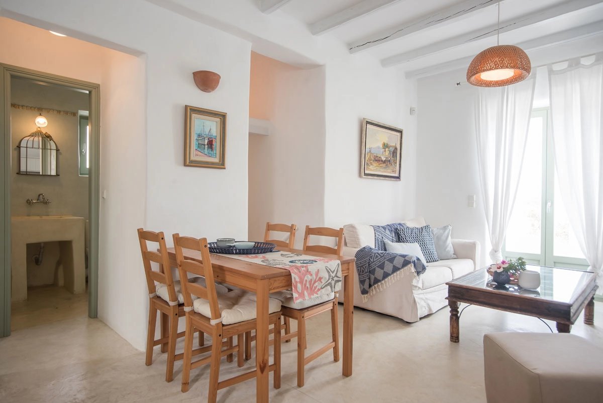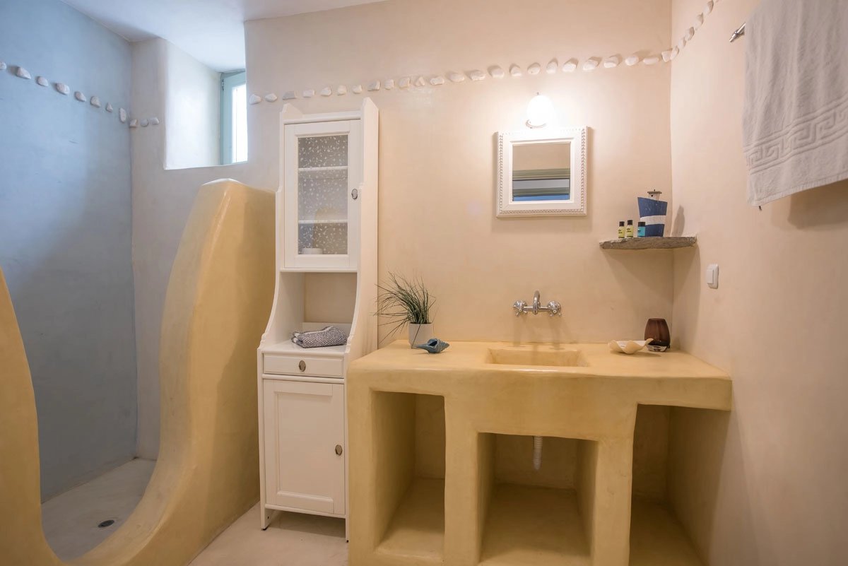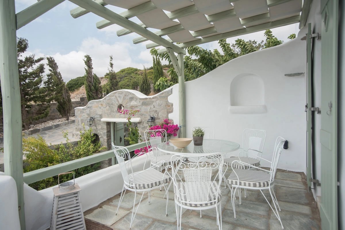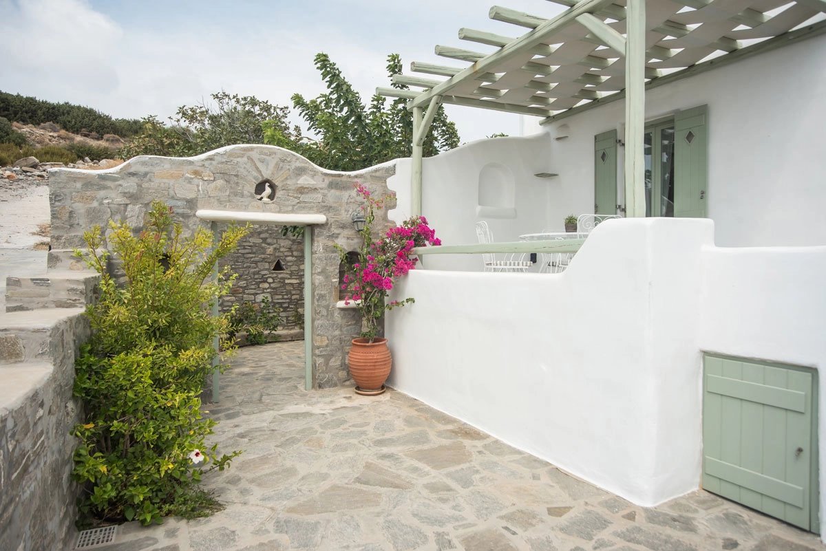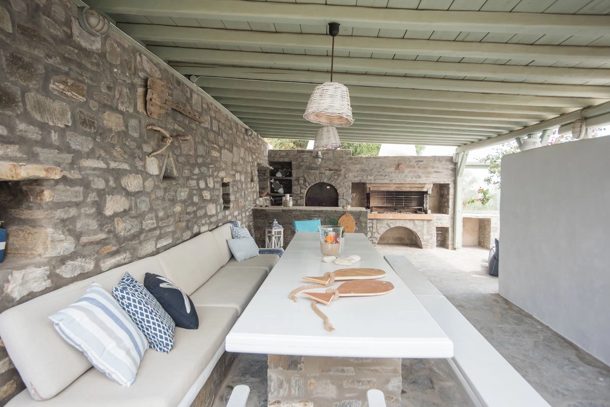 Paros - Isterni, à 2 km de Naoussa, dans un complexe de cinq maisons, sur une parcelle de 4050 m². Cette maisontte traditionnelle nouvellement construite de 135 m² se trouve sur deux niveaux avec vue sur la mer et jacuzzi. Aéré et entièrement équipé et meublé 4 chambres, 3 salles de bains, grandes terrasses, grand jacuzzi extérieur avec vue dégagée, et grande cour avec barbecue et four traditionnel intégré. Chauffage solaire, cheminée, porte de sécurité, alarme, Wi-Fi, tv avec connexion satellite, parking ouvert.