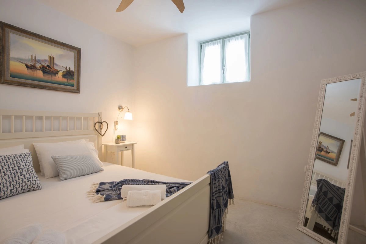 • Chambre séparée avec entrée indépendante de la cour avec un lit double, mini réfrigérateur et salle de douche/wc.