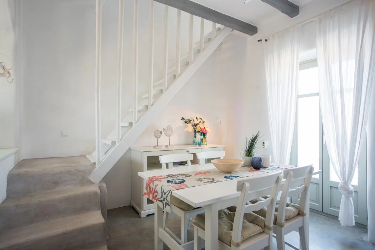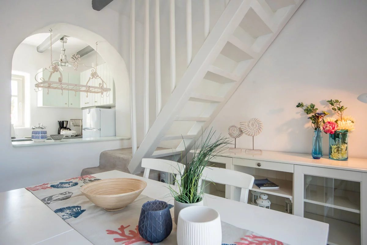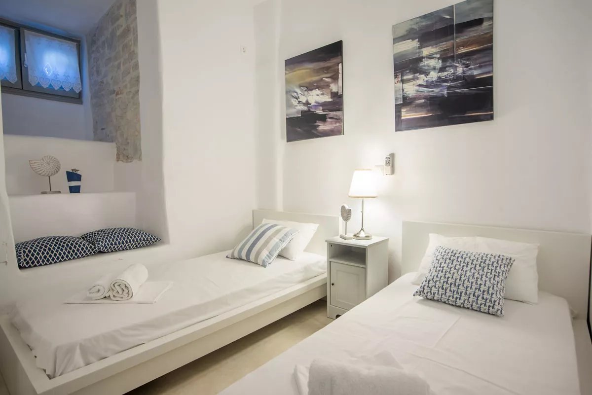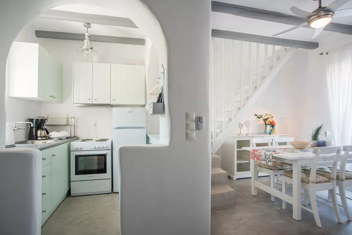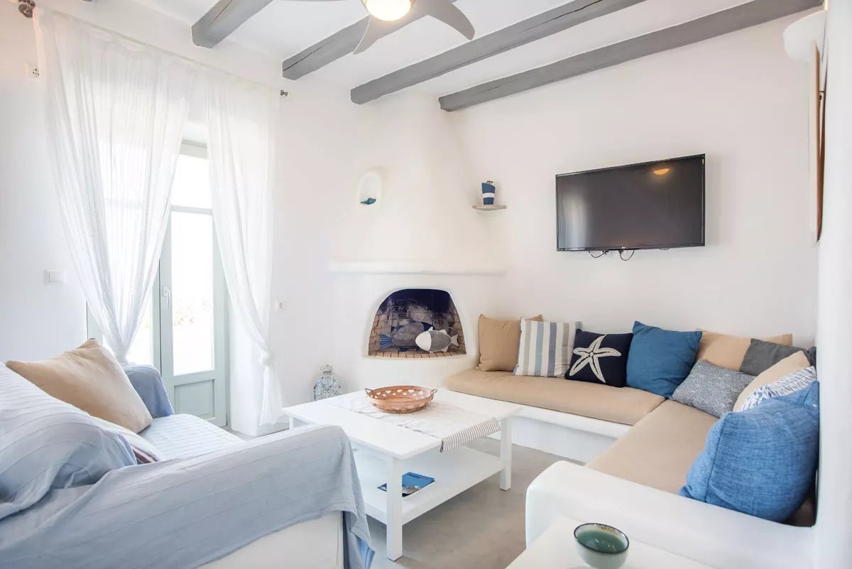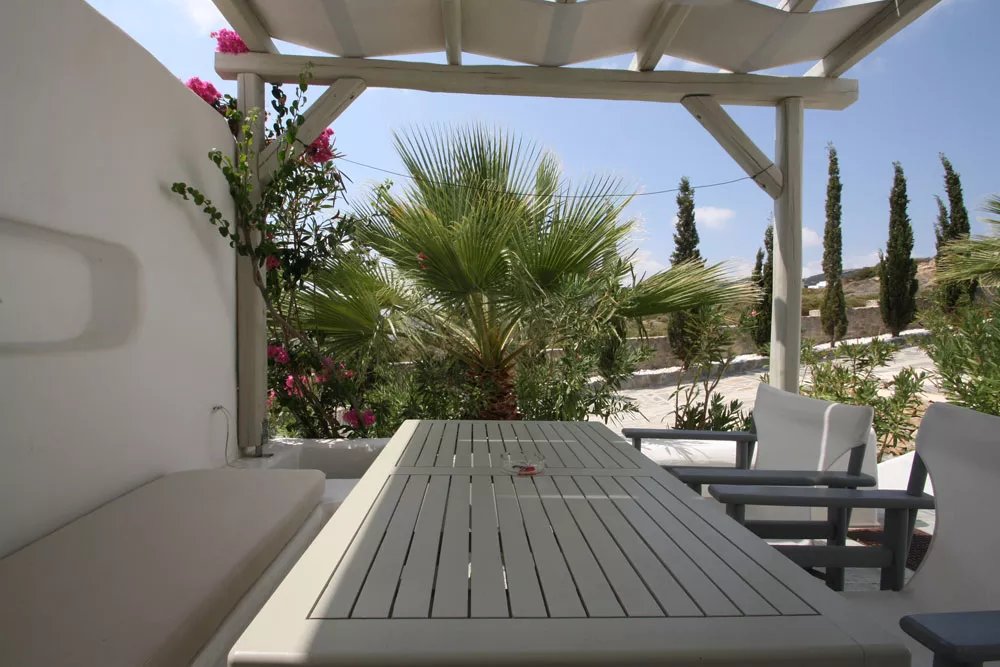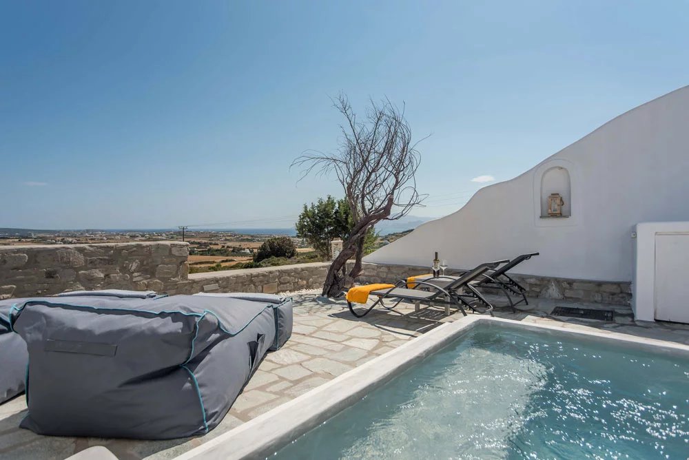 Paros - Isterni, à 2 km de Naoussa, dans un complexe de cinq maisons, sur une parcelle de 4050 m². Cette maisontte traditionnelle nouvellement construite de 115 m², sur trois niveaux avec vue sur la mer et jacuzzi. Entièrement équipée et meublée disposant de 3 chambres, 3 salles de bains, grandes terrasses, grand jacuzzi extérieur avec vue dégagée. Chauffage solaire, cheminée, alarme, Wi-Fi, tv avec connexion satellite, parking ouvert.