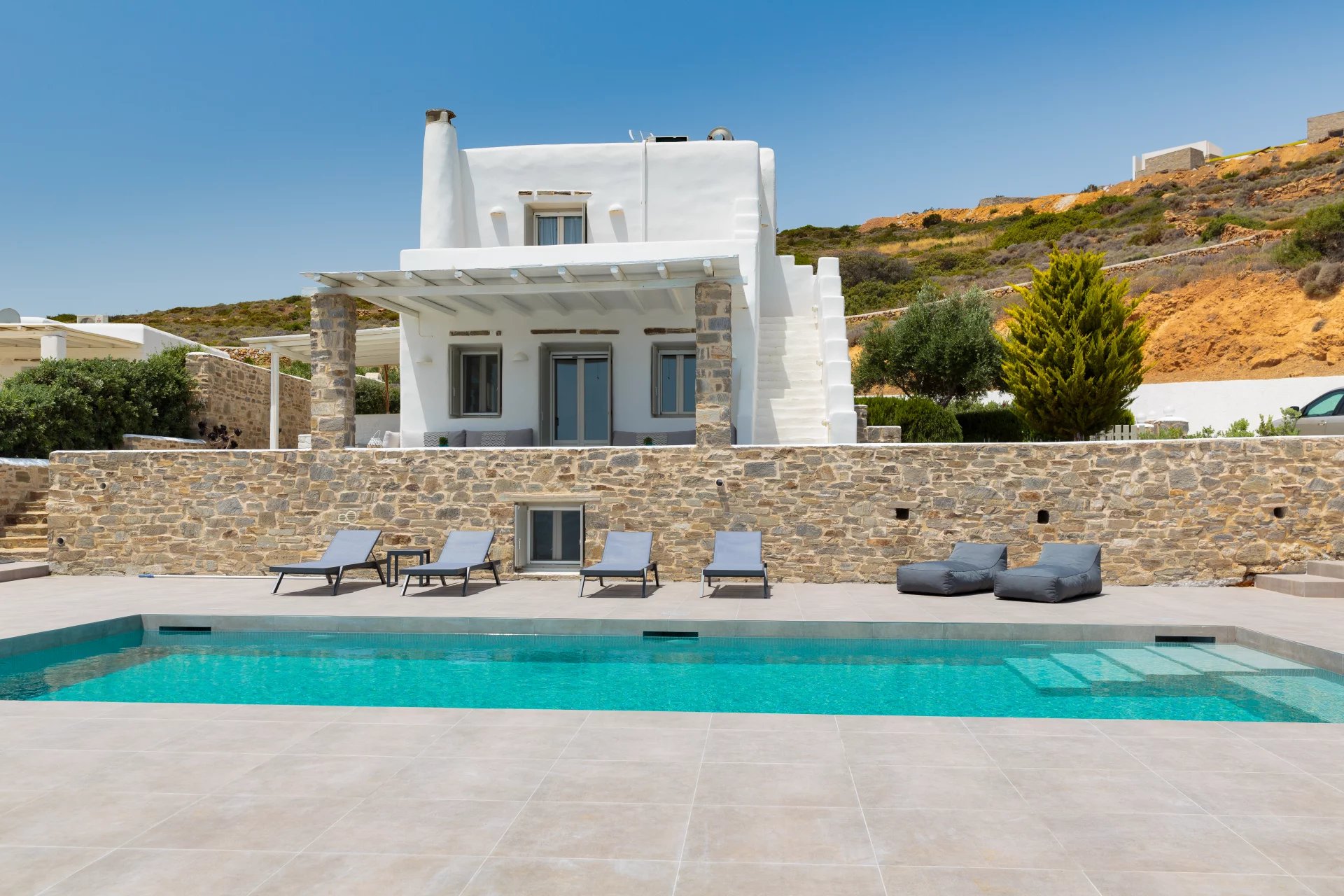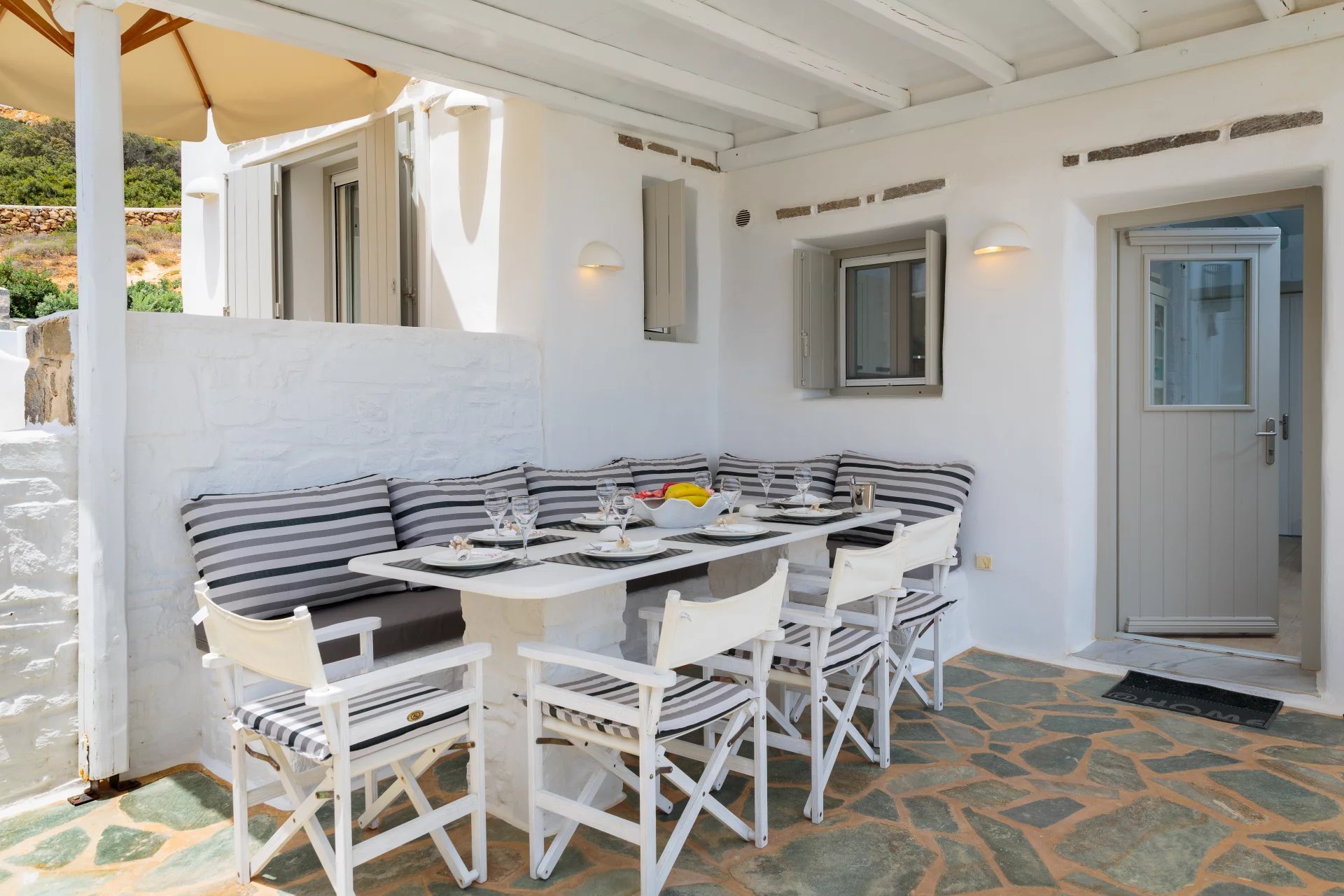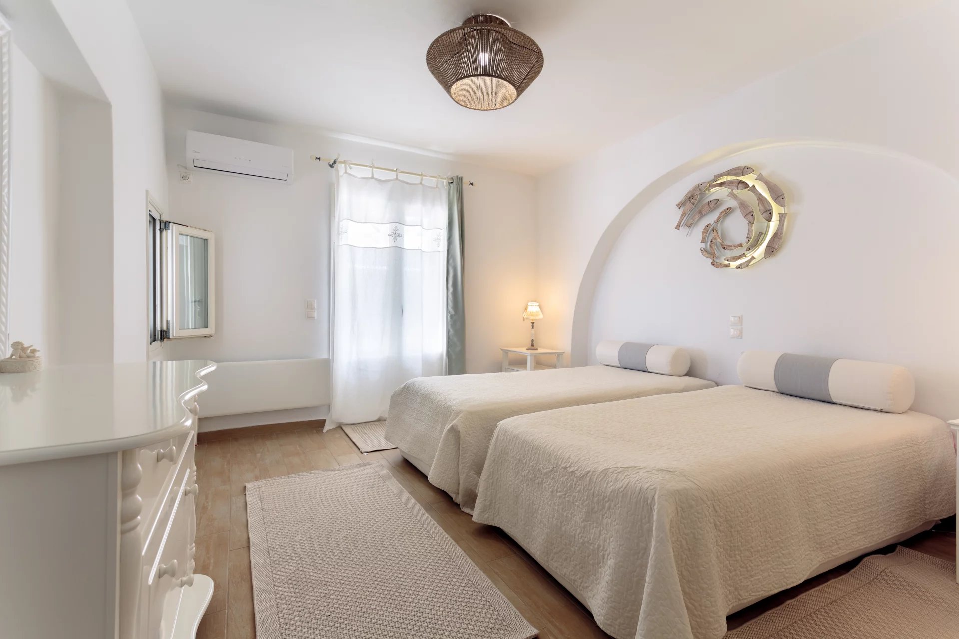 NAOUSSA - Belle maison, parfaitement entretenue, avec piscine. Très bien située, dans un environnement calme, à 2km des plages, des petites tavernes et des commerces du village de Naoussa, la maison se compose au rez-de-chaussée d'un séjour avec cuisine équipée, une chambre triple et une salle de douche/wc.