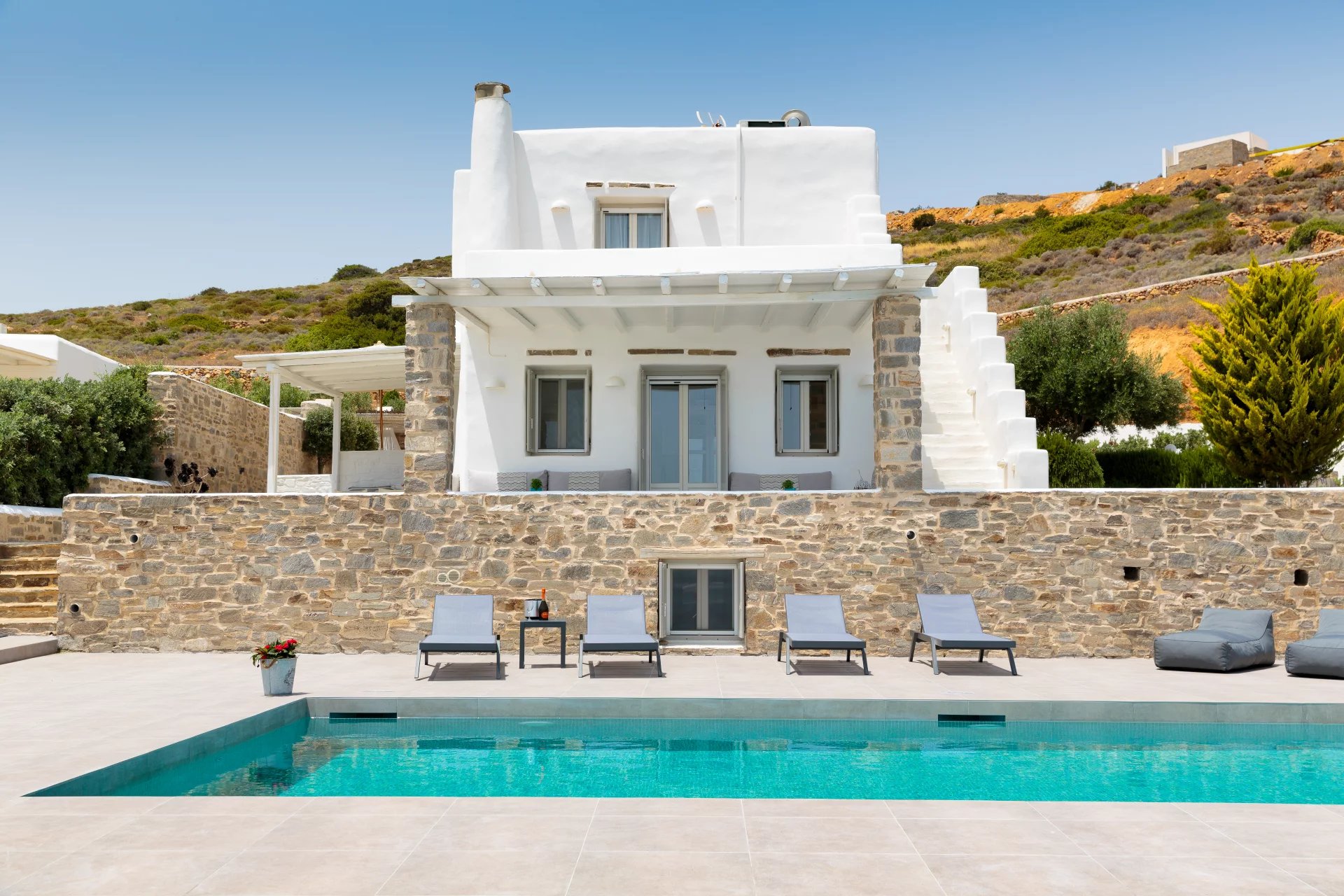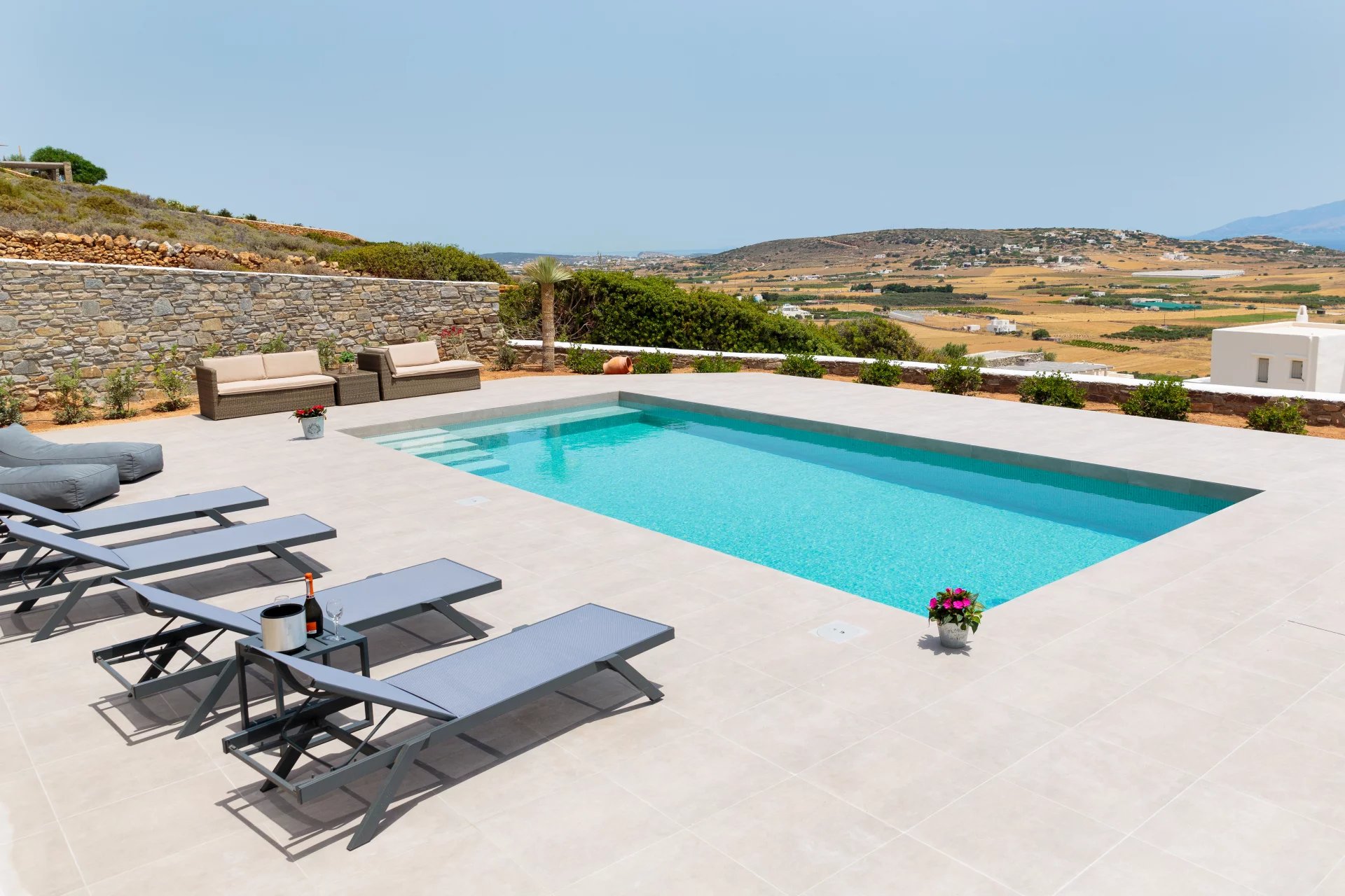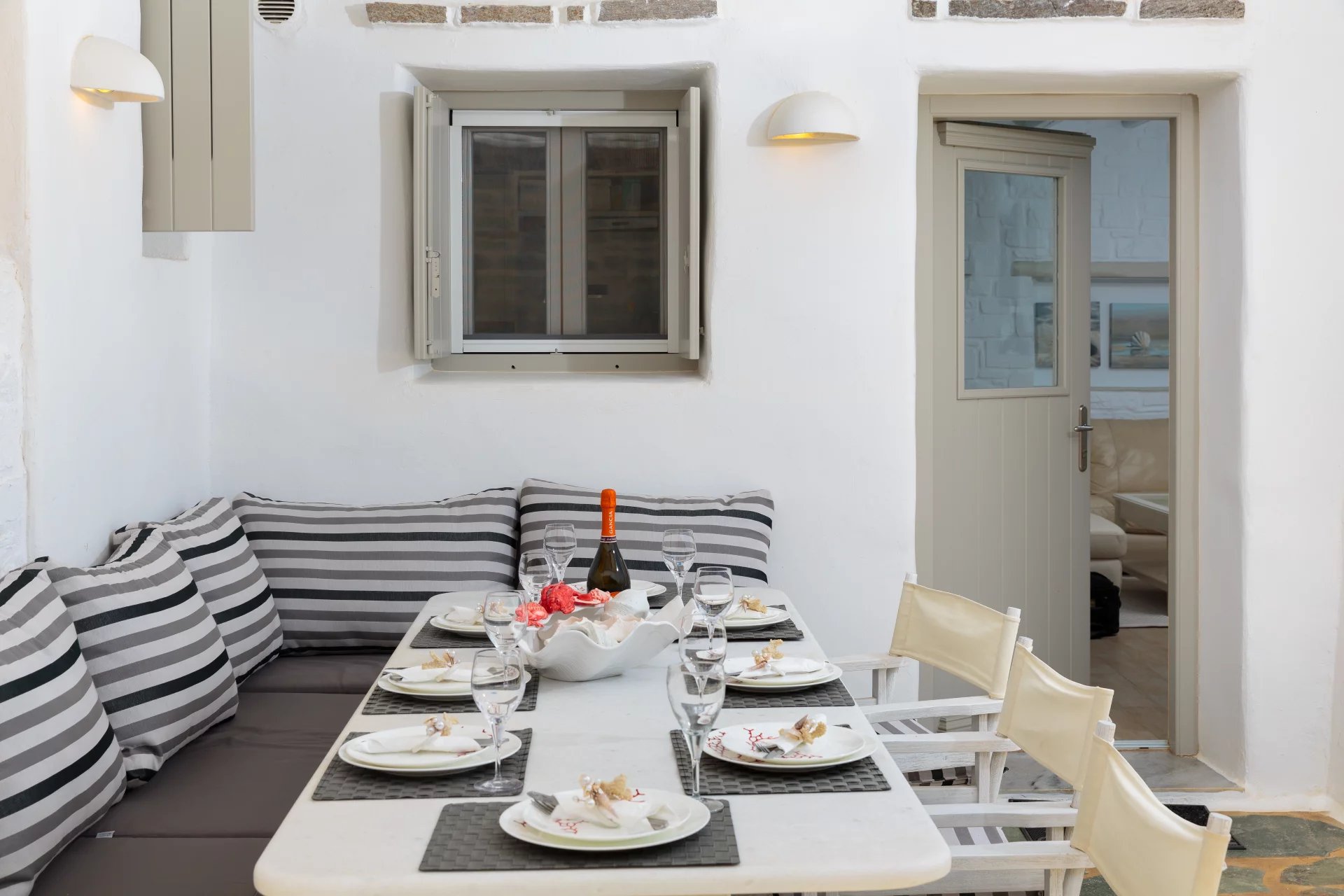 NAOUSSA - Belle maison, parfaitement entretenue, avec piscine. Très bien située, dans un environnement calme, à 2km des plages, des petites tavernes et des commerces du village de Naoussa, la maison se compose au rez-de-chaussée d'un séjour avec cuisine équipée, une chambre triple et une salle de douche/wc.