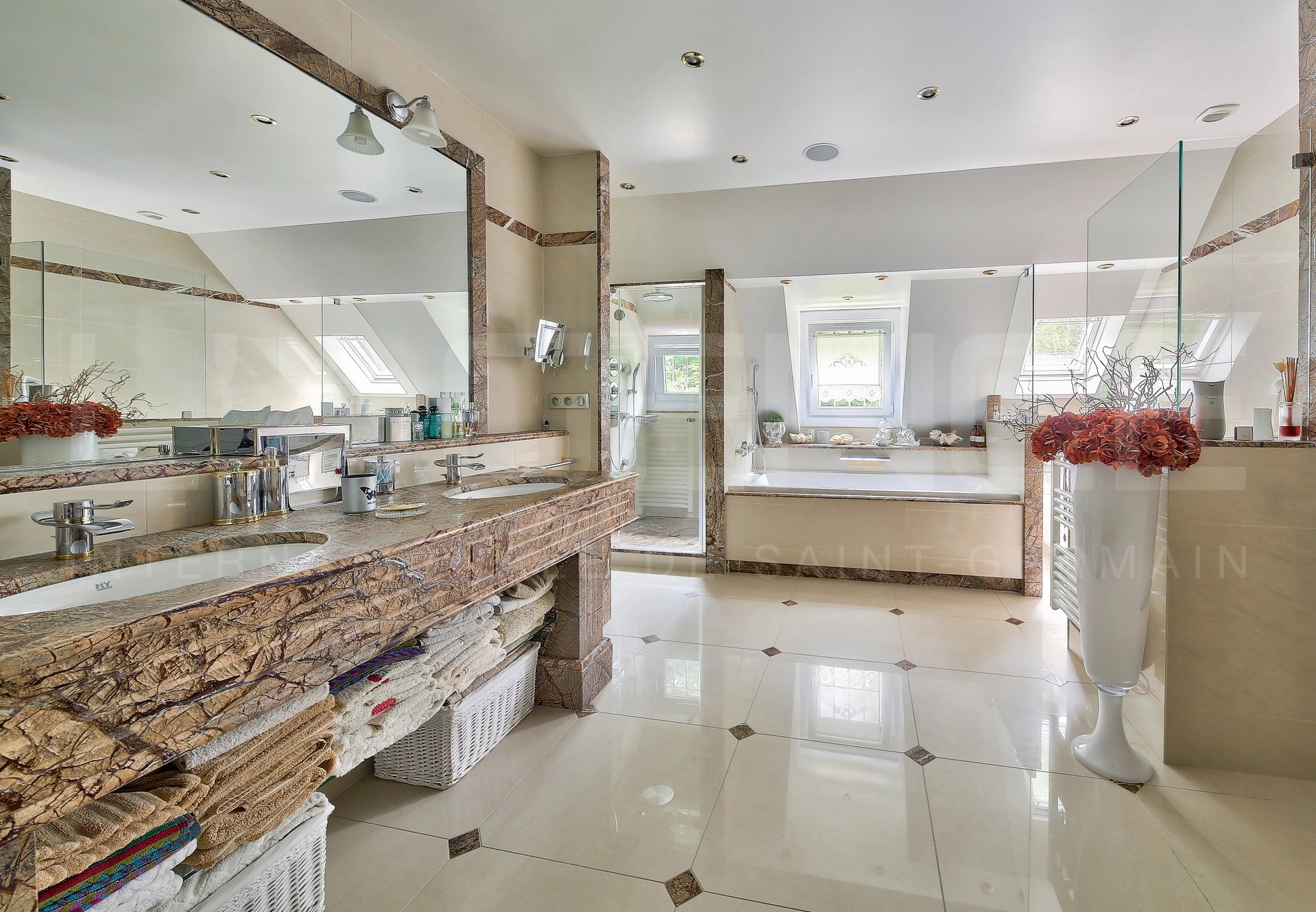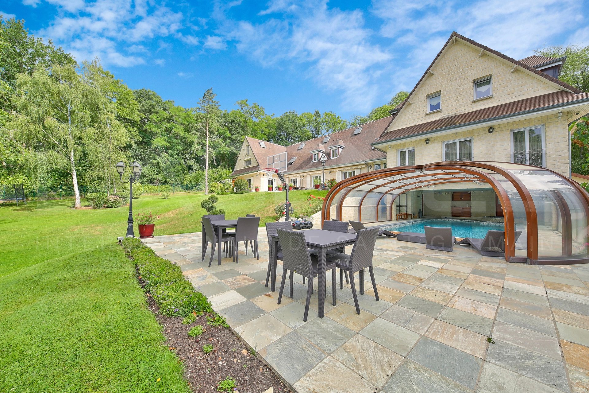 Idéalement située à Crespières, à seulement 35 minutes de Paris et à proximité d'écoles prestigieuses (comme le Lycée International de St Germain en Laye ou l'American School of Paris à Saint-Cloud), cette élégante propriété d'exception de 600 m² offre à ses résidents une qualité de vie exceptionnelle, alliant tranquillité, intimité et fonctionnalité.