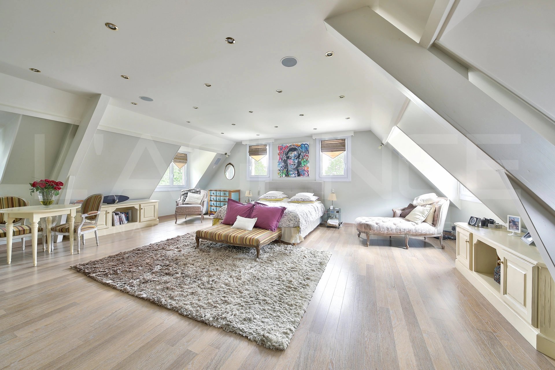 Un espace au grenier a été aménagé de belle manière avec des éléments faits sur mesure et de grande qualité, il comprend également 2 salles d’eau supplémentaires avec wc.